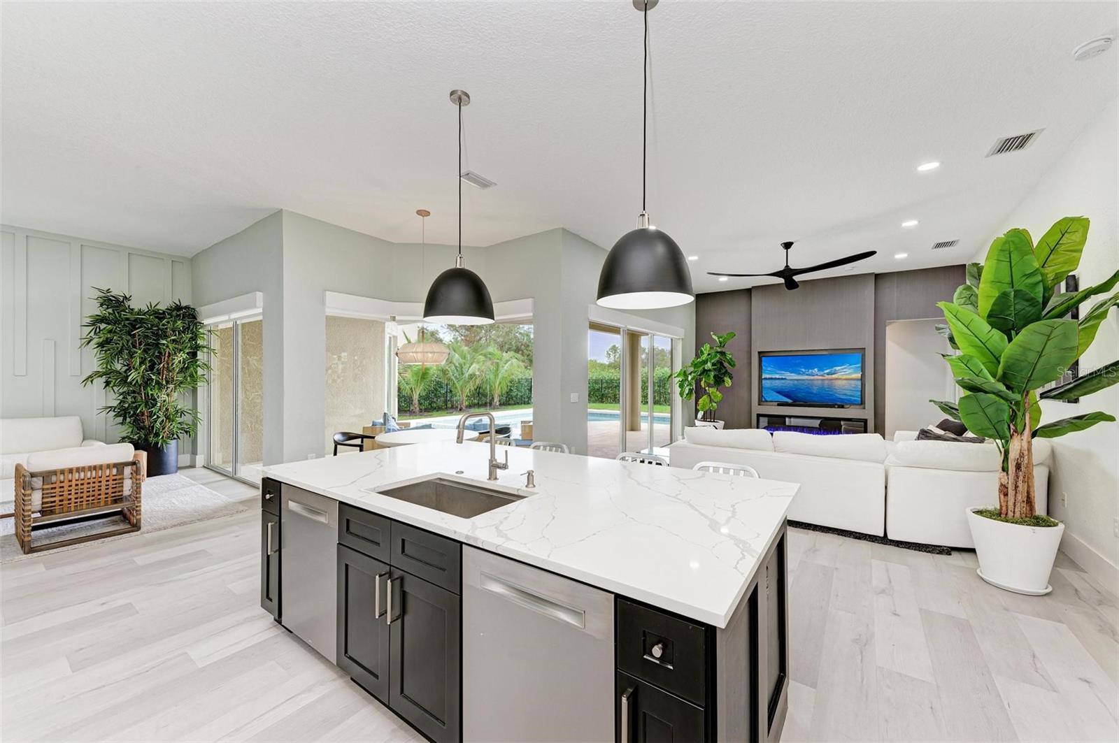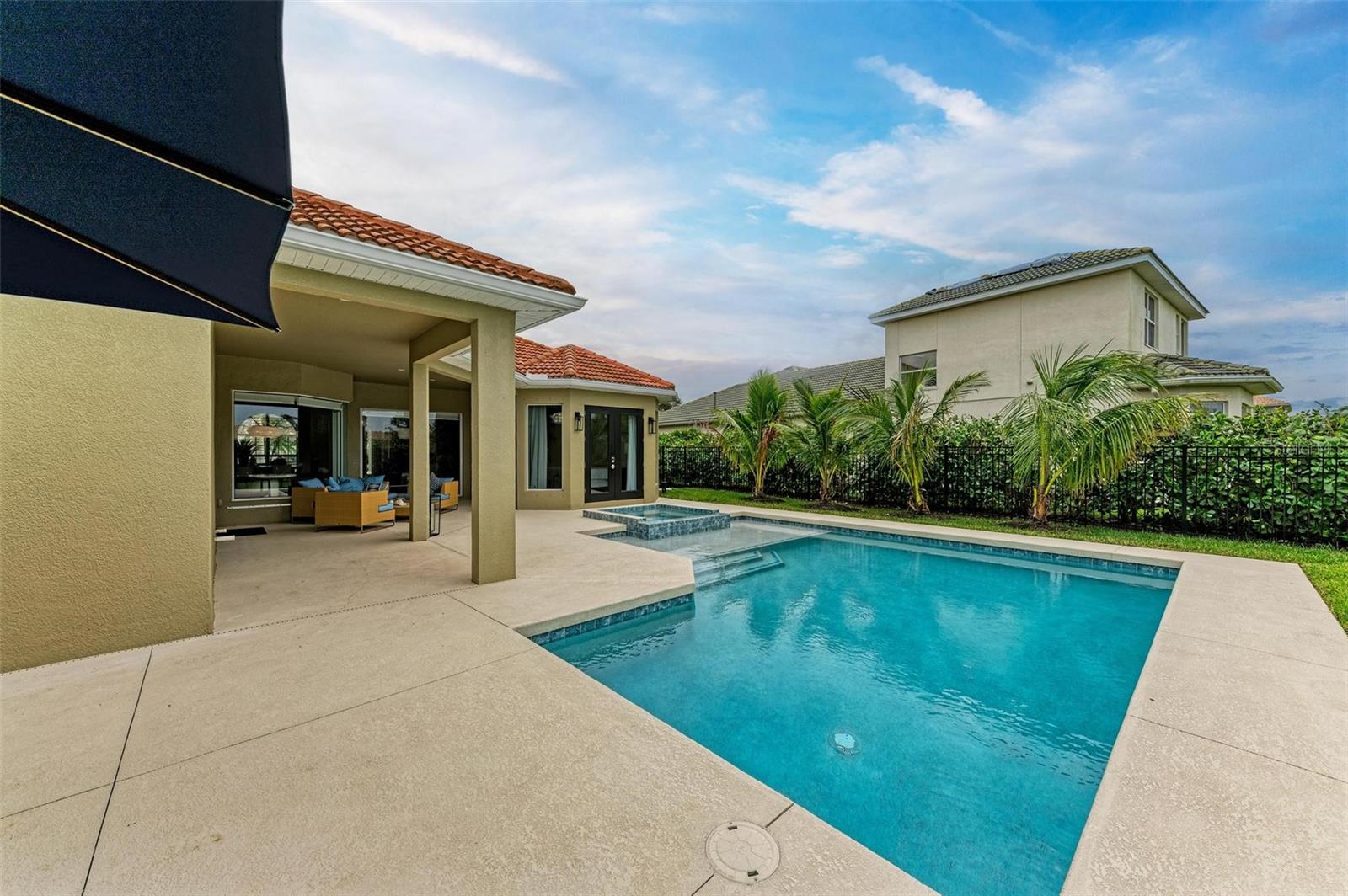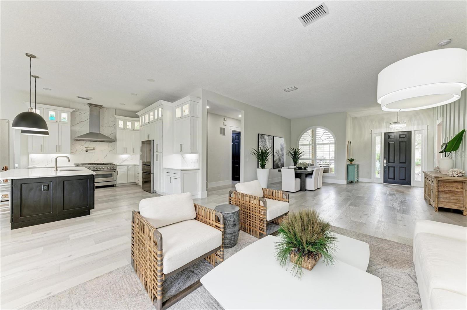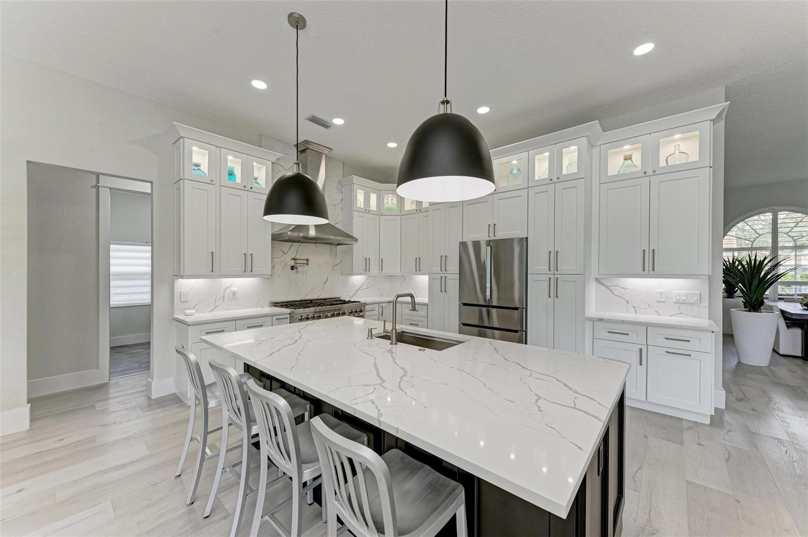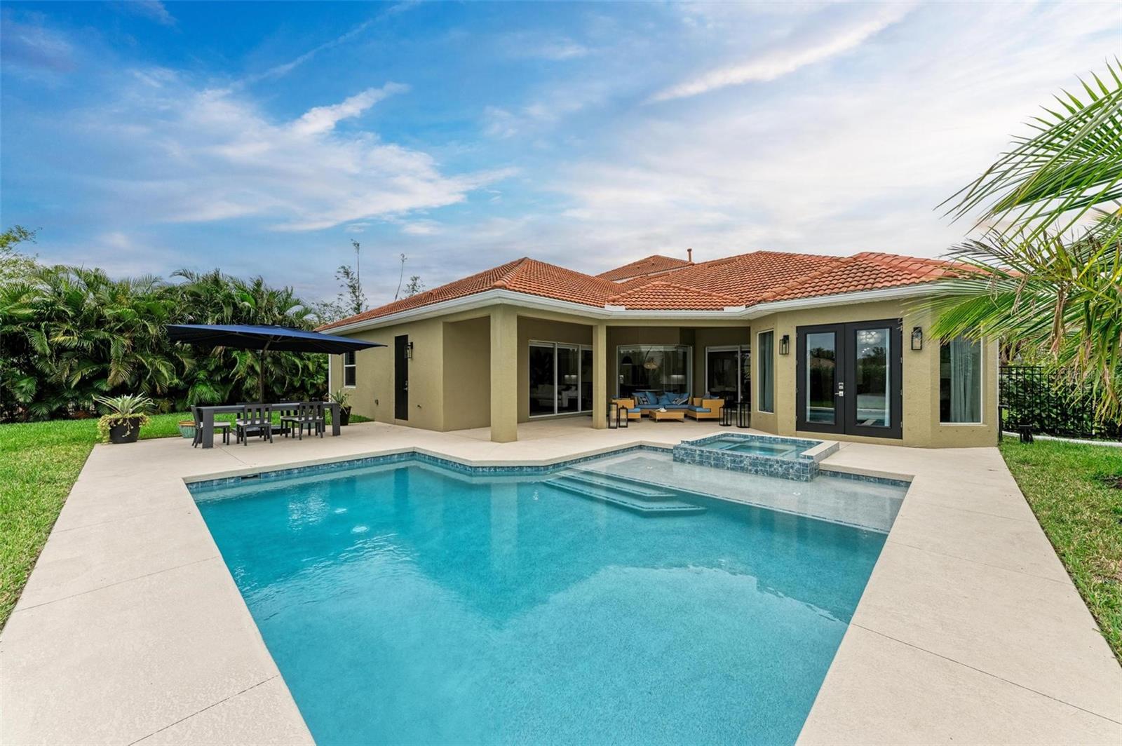 This beautifully updated home in the highly sought-after community of Greyhawk Landing was renovated in 2022 and offers a completely upgraded layout with an open-concept floor plan, perfect for entertaining. The living and dining areas seamlessly flow together, offering ample natural light and a perfect space for family gatherings or entertaining guests. The heart of this home is the fully updated kitchen featuring a large island with two dishwashers, a professional-grade Zline 48" range and hood, and a convenient pot filler. Custom soft close cabinetry, high-end countertops, and sleek finishes complete the perfect culinary space. All four bathrooms in the home have been thoughtfully updated with new tile and glass shower enclosures. Two of the bathrooms have Restoration Hardware cabinets with Hansgroe fixtures and the primary bathroom has custom cabinetry with Restoration Hardware fixtures and a stunning updated shower, giving each space a spa-like feel. The previously open upstairs loft space has been completely transformed to include a full bedroom and bathroom, making it the perfect guest suite or private retreat. Additionally, the loft features a bar area with a beverage fridge, perfect for relaxing or entertaining. Enjoy outdoor entertaining around the pool and hot tub completed in 2023 by DuWet Pools. The patio are has been expanded and the back yard is fully fenced with a 5 ft aluminum fence surrounded by lush foliage for privacy. For peace of mind 2 new HVAC units and a new water heater were installed in 2022 as well. Greyhawk Landing is a 24 hour guard gated community with miles of walking trails, an may amenities including two clubhouses and pools, a waterslide, fitness center, tennis, pickleball, basketball and plenty of greenspace for ejnoying outdoor activities. The community is also convieniently located just outside of the LWR area making it an easy commute to downtown Lakewood Ranch, Waterside, UTC, St. Petersburg< Bradenton, Sarasota as well as our beautiful Gulf beaches. There is something for everyone!