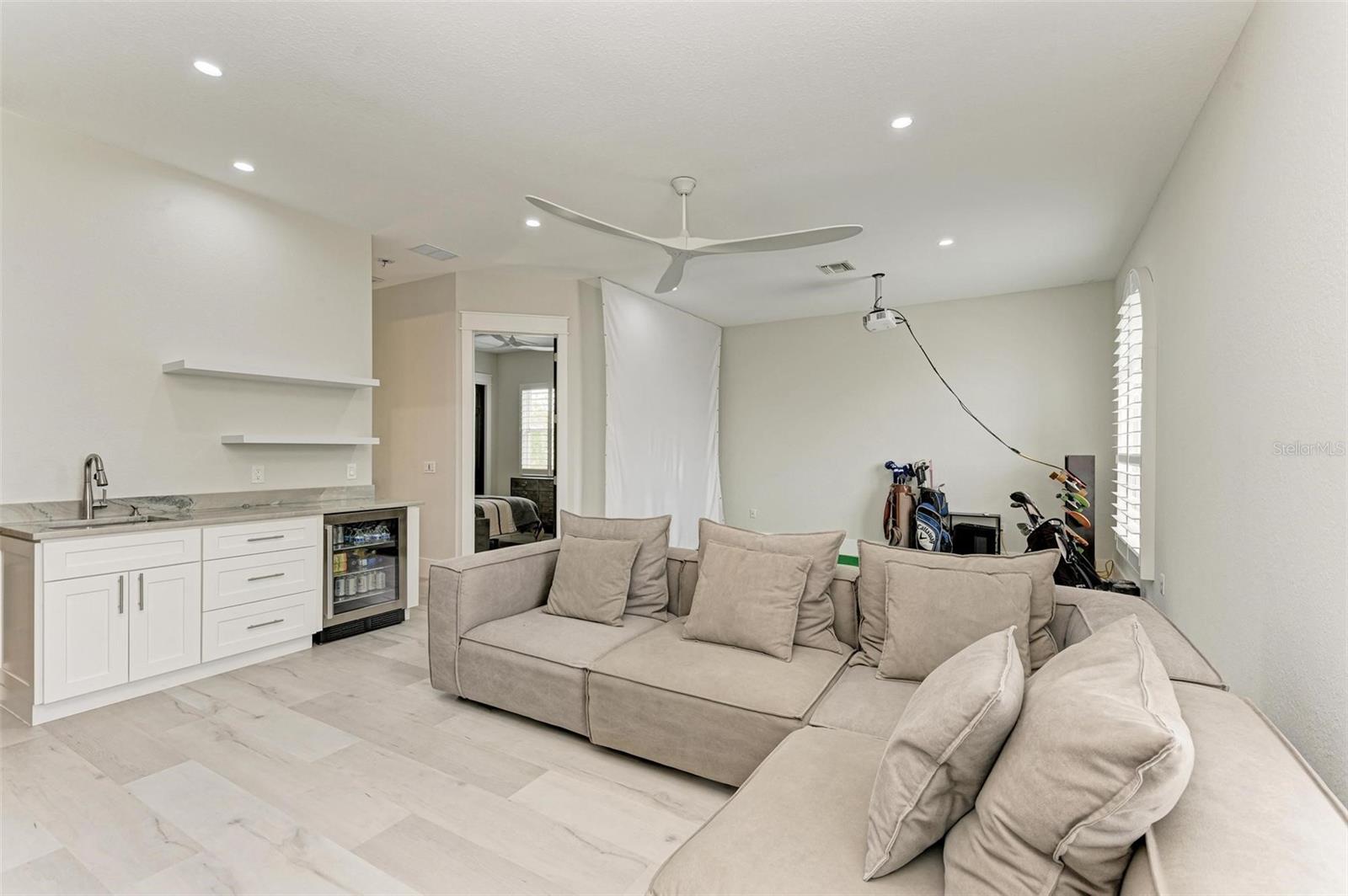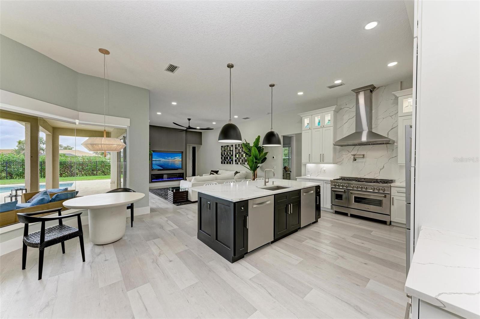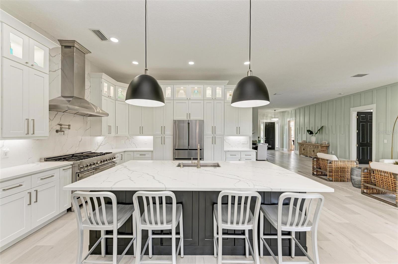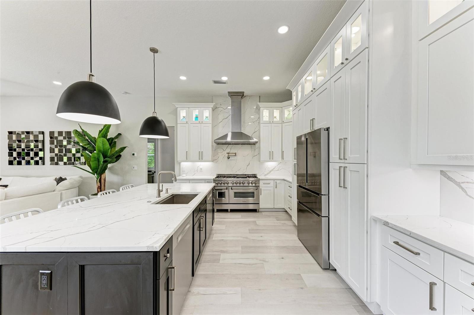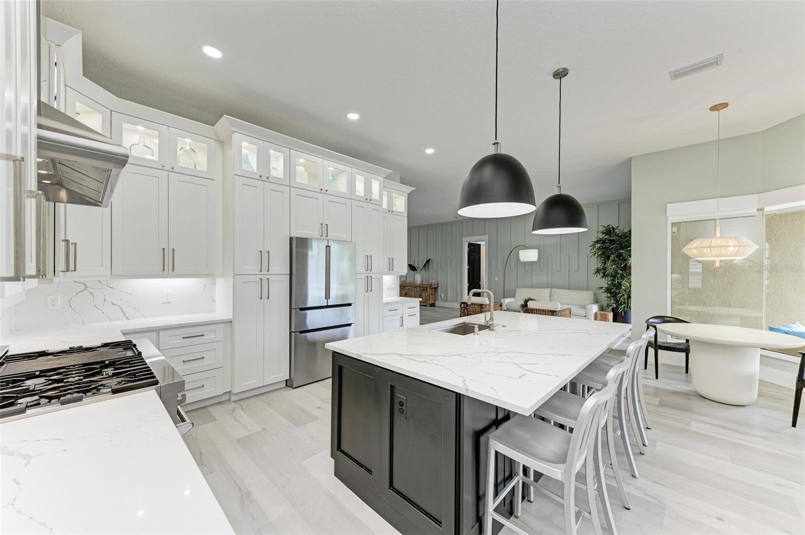 This beautifully updated home in the highly sought-after community of Greyhawk Landing was renovated in 2022 and offers a completely upgraded layout with an open-concept floor plan, perfect for entertaining. The living and dining areas seamlessly flow together, offering ample natural light and a perfect space for family gatherings or entertaining guests. The heart of this home is the fully updated kitchen featuring a large island with two dishwashers, a professional-grade Zline 48" range and hood, and a convenient pot filler. Custom soft close cabinetry, high-end countertops, and sleek finishes complete the perfect culinary space. All four bathrooms in the home have been thoughtfully updated with new tile and glass shower enclosures. Two of the bathrooms have Restoration Hardware cabinets with Hansgroe fixtures and the primary bathroom has custom cabinetry with Restoration Hardware fixtures and a stunning updated shower, giving each space a spa-like feel. The previously open upstairs loft space has been completely transformed to include a full bedroom and bathroom, making it the perfect guest suite or private retreat. Additionally, the loft features a bar area with a beverage fridge, perfect for relaxing or entertaining. Enjoy outdoor entertaining around the pool and hot tub completed in 2023 by DuWet Pools. The patio are has been expanded and the back yard is fully fenced with a 5 ft aluminum fence surrounded by lush foliage for privacy. For peace of mind 2 new HVAC units and a new water heater were installed in 2022 as well. Greyhawk Landing is a 24 hour guard gated community with miles of walking trails, an may amenities including two clubhouses and pools, a waterslide, fitness center, tennis, pickleball, basketball and plenty of greenspace for ejnoying outdoor activities. The community is also convieniently located just outside of the LWR area making it an easy commute to downtown Lakewood Ranch, Waterside, UTC, St. Petersburg< Bradenton, Sarasota as well as our beautiful Gulf beaches. There is something for everyone!