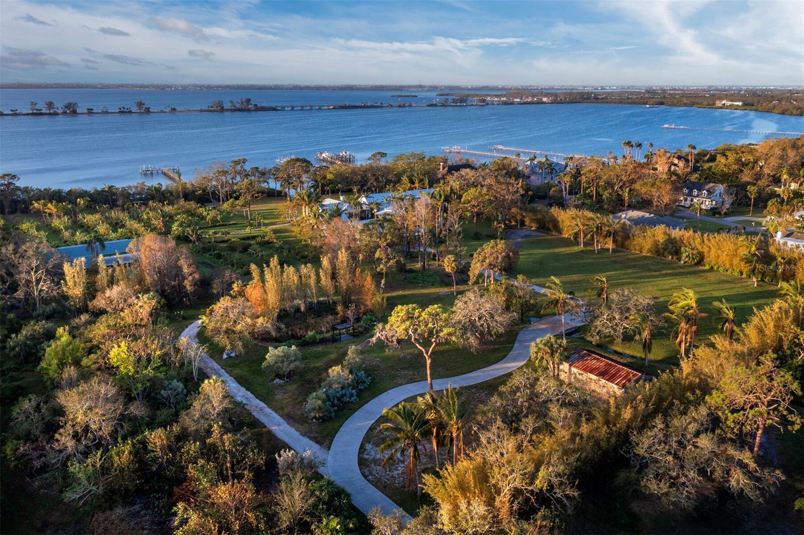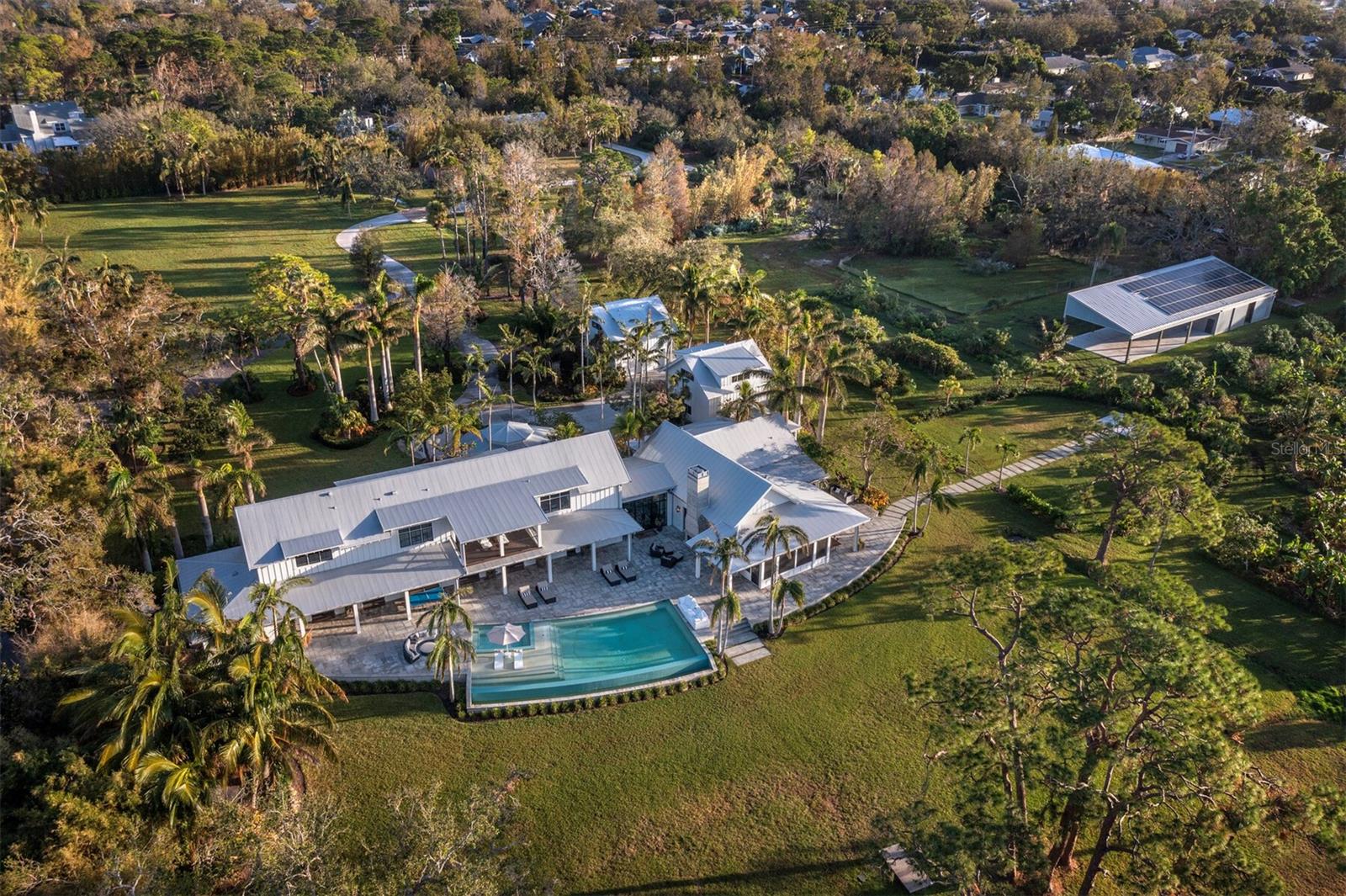 Welcome to Jubilee Estate, a luxurious waterfront sanctuary unlike any other. Ideally positioned on 11.2 pristine acres along the shores of Palma Sola Bay, this extraordinary 11.2 -acre estate, currently operating as a boutique hotel and wedding venue, boasts an impressive 8,400 SF main residence with 655 feet of pristine bay frontage. Featuring eight bedrooms, each with a private bath, along with two guest cottages, the estate comfortably accommodates up to 20 guests. Designed by renowned architect Jerry Sparkman of Sweet Sparkman Architecture & Interiors, Jubilee showcases exquisite design and amenities that cater to the most discerning tastes. The estate features a resort-style infinity pool with lounge seating, perfect for relaxation and entertainment. The gourmet kitchen, complete with a food prep area and scullery, is a chef's dream, ideal for both family meals and large-scale events. The primary bedroom suite is a true retreat, boasting a reading room, walk-in dressing room, and a private balcony that offers stunning views of the surrounding landscape. Superb craftsmanship is reflected in the hand-honed beamed ceilings, and hand-selected natural materials such as bluestone flooring, soapstone, and marble counters add to the estate's luxurious feel while creating a harmonious blend of natural beauty and modern elegance. Every detail of Jubilee has been meticulously crafted to ensure the highest standards of quality and aesthetics, from the custom finishes to the thoughtfully designed spaces. The property's design maximizes its breathtaking views of Palma Sola Bay, creating an unparalleled living experience that celebrates the beauty of its natural setting. Jubilee presents a once-in-a-lifetime opportunity to own a unique piece of paradise for sportsmen and car collectors. Whether envisioned as a private residence, a continuation of its current use as a boutique hotel, or an exclusive event venue, this property offers limitless potential for those who appreciate the perfect blend of natural beauty and refined luxury. Here, every day feels like a vacation in your own private resort.