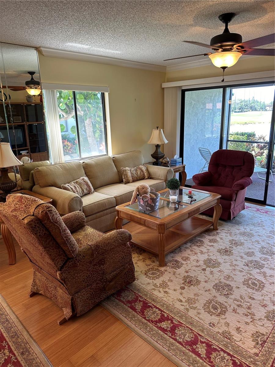 Feel the breeze as you enter this desirable first floor condo in Valencia Gardens III. Take advantage of both the front and back screened lanai as you enjoy the views of the water feature and golf course as well as the beautiful sunsets at night. As you enter the main living area, take note of the Bamboo flooring and open concept full of natural light. This turnkey furnished unit is ready for your immediate occupancy after closing. Take advantage of the community amenities including a covered carport and updated community pool and spa. Both bedrooms are en-suite allowing for privacy for owners and guests alike. Have no worries about space, as the unit has expansive closet space within the unit, both bedrooms have walk in closets as well as additional storage in the hallways. Schedule your private showing today!