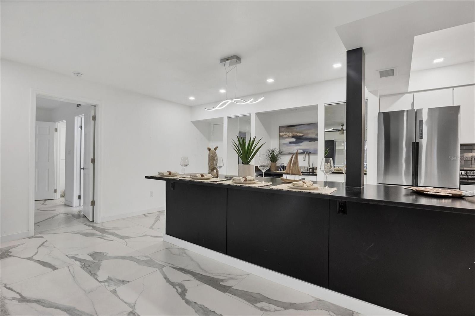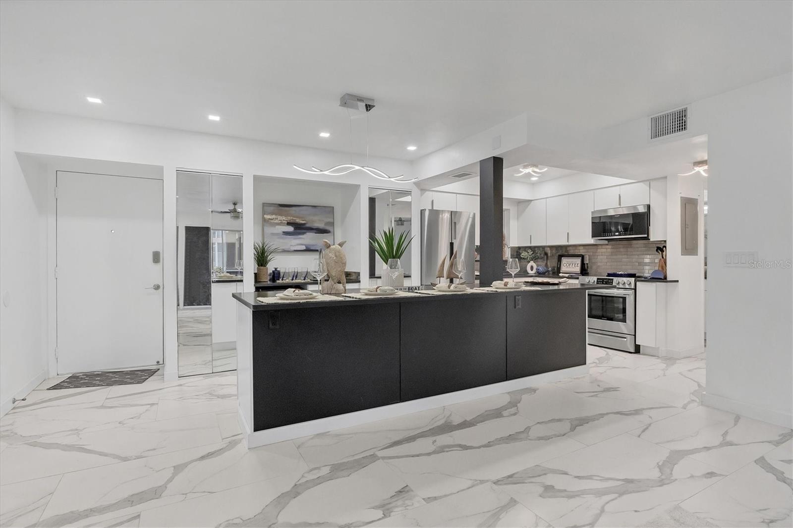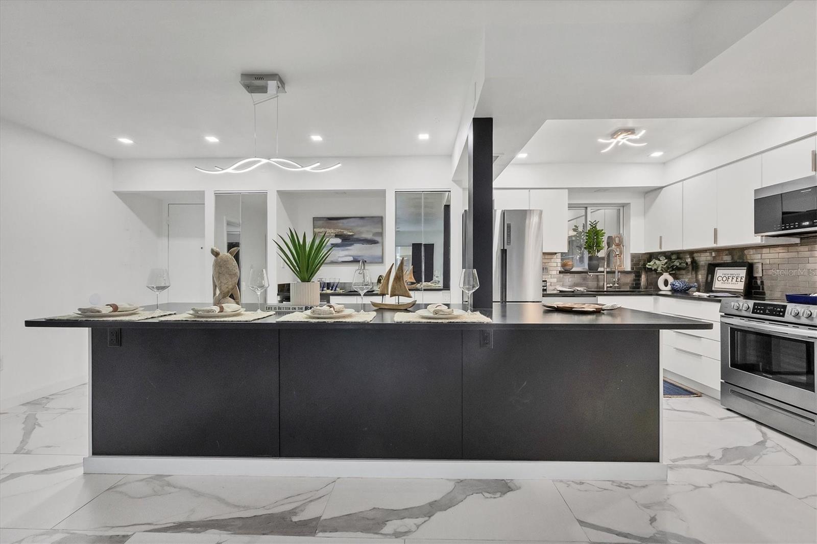 BOATERS must see! You will not find a better value in Manatee or Sarasota County to dock your boat right outside your condo. Assigned dock space for $2 a foot per month. Wow! Completely modernized and remodeled waterfront condo unit with direct access, no bridges, to Sarasota Bay and the ICW. The owner has spared no expense. Kitchen & both bathrooms were remodeled down to the studs, plumbing replaced, electrical panel moved to create an expansive island for entertaining your friends & family. Stunning 24"x 48" high end porcelain tile throughout. New hot water heater in 2021 & new hvac in 2019. A short canal ride takes you to the wide-open Sarasota Bay. You can see the Sarasota Ringling bridge when approaching the bay. A short 10–15-minute boat ride south will have you at lunch at handful of some of the best waterfront restaurants in Sarasota like Marina Jacks, the Salty Dog, Dry Dock etc... Take a beautiful, leisurely boat ride north and you can spend the afternoon basking in the sun and exploring the clear, turquoise waters at the famous sandbar, Jewfish Key, with your family & friends. Once you have had enough sun, keep heading north up the ICW to Cortez for live music and a late lunch at the Swordfish Grill or Cortez Kitchen. Do you want the freshest seafood in town? The Starfish grill in Cortez (right next door to the commercial fishing boats that supply all the local restaurants) is the best in town! Bridge Street in Bradenton Beach is also a hugely popular boater's favorite. Bridge Street Pier area is a quaint old Florida feel with great bar and restaurant hopping, live music, shopping, ice cream, and waterfront pier for a stroll and some fishing. Bridge Street is just a 20-25 minute boat ride from this centrally located condo. More of a fisherman? Exit the channel at Sarabay Coves Condominium, and head north 10 minutes to New Pass into the Gulf of Mexico or South 15 minutes to Longboat Pass into the Gulf! These condos truly have the best, centralized access to Sarasota and Manatee County's boating waters! HOA fees include internet, cable, water, sewer, trash, pool, jacuzzi, clubhouse, tennis courts, building insurance, flood insurance, liability insurance for the common areas and HOA, and a property management company. Call Tina Seaman for a showing of this gorgeous condo. I would be happy to show you the boating waters! Please note, pictures of amenities are prior to the storm damage of the pool, clubhouse and tennis courts. The community has signed contracts and are on wait lists to restore the amenities. Listing agent is on the HOA board and can answer any questions. Condo itself did not sustain any storm or flood damage. Are you an avid boater? Sarabay Coves is the place to be! Truly the best boating location and waters in the two-county area.