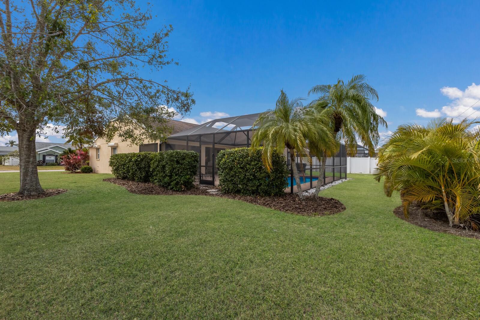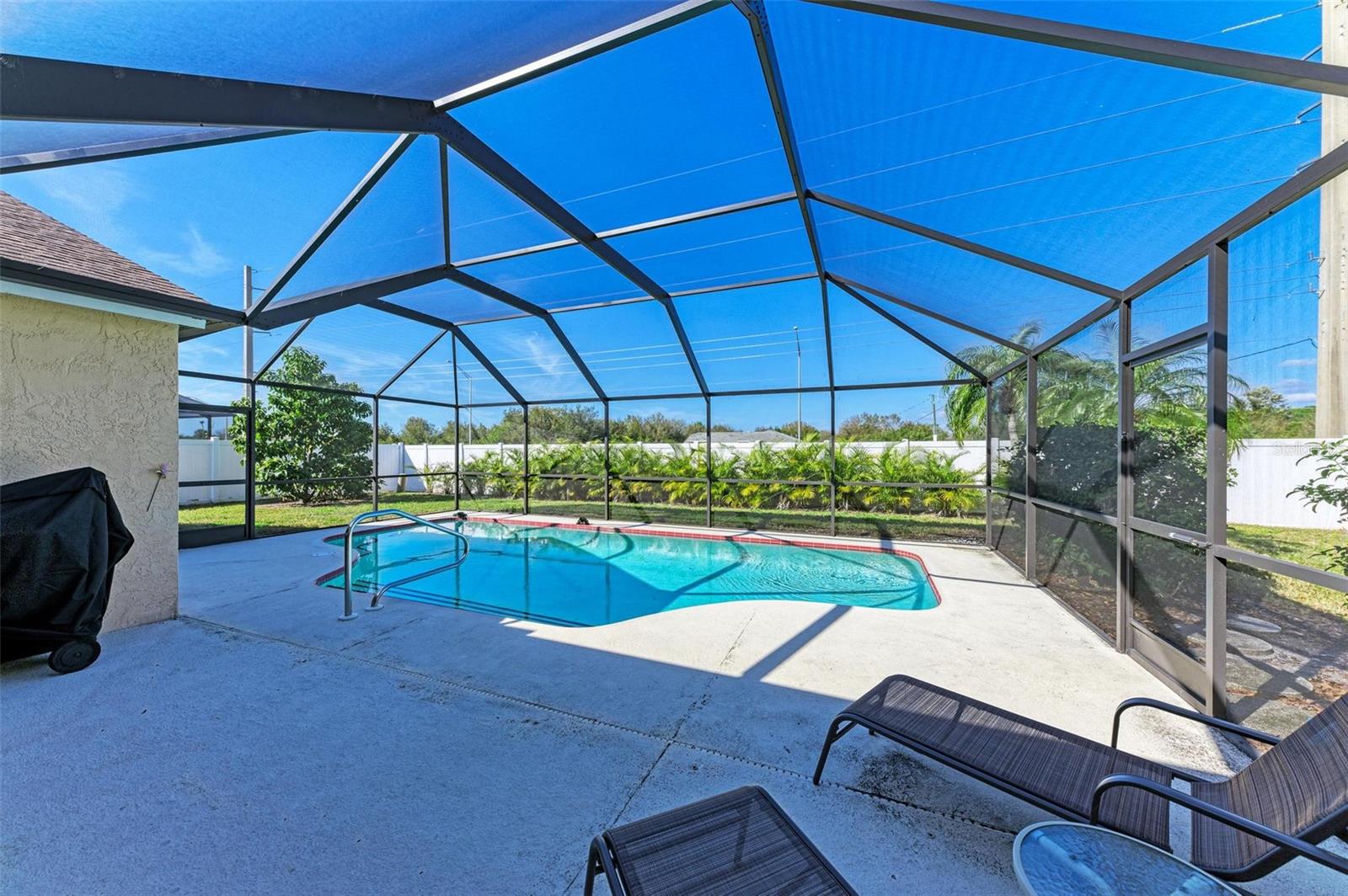 Completely unscathed from this hurricane season's storms and nestled in the prestigious Fairfax subdivision on the East side of Bradenton, FL, immerse yourself in the ultimate Florida living experience within this meticulously appointed and beautifully maintained home. Enjoy the perfect blend of luxury, comfort, and convenience in this exceptional property that offers a lifestyle of relaxation and sophistication. Located just a short drive away from the pristine beaches of the Gulf of Mexico and the charming Anna Maria Island, you'll have easy access to sun, sand, and Gulf of Mexico. Within a 6-mile radius of the property, you'll find the scenic Bradenton Riverwalk, offering tranquil walking and biking paths for outdoor enthusiasts. Additionally, the renowned Peridia Golf & Country Club, known for its beautiful courses and amenities, is just a stone's throw away, inviting you to experience the best of Florida living. Situated on a premium corner homesite, this meticulously maintained and thoughtfully updated POOL home is a true gem. Boasting 3 bedrooms, 2 bathrooms, a convenient laundry room, a spacious formal living room, and a cozy family room, this residence offers over 1500 sqft of living space. The lush tropical landscaping and a 2-car garage enhance the curb appeal and functionality of the property, providing you with all the essentials for a comfortable and luxurious lifestyle. As you step into the screened-in foyer, you'll be captivated by the stunning wall of stackable glass sliders and vaulted ceilings that lead to your very own private pool and outdoor living space. The heart of the home, the kitchen, is a chef's dream, featuring elegant granite countertops, rich espresso cabinetry, and top-of-the-line black stainless steel, fingerprint-resistant, Samsung Smart appliances. The kitchen seamlessly flows into the expansive family room, filled with natural light and additional sliding glass doors that open up to the inviting sparkling pool. The primary suite bedroom and en-suite bathroom offer a serene sanctuary on one side of the home, providing privacy and comfort. The two guest bedrooms are strategically located on the opposite side, ensuring a peaceful retreat for family or visitors. The owner's suite features large sliding doors that offer picturesque views of the shimmering heated pool and the lush outdoor oasis, creating a tranquil and relaxing ambiance. For added security and peace of mind, the home is equipped with metal hurricane shutters on every window, providing protection during inclement weather. The heated pool also comes equipped with a child safety screen and solar cover. Recent upgrades include a new vanity and toilet (2021), a fully renovated kitchen (2019) with all-new appliances (June 2022), fresh interior paint (March 2022), a rescreened and painted pool (2021), a painted pool deck (2021), a new HVAC system (2018), new AC Condenser Coil (2025), a new water heater (2021), updated fixtures and ceiling fans (2019), a laundry room wash tub (2021), and fresh exterior paint (2016).