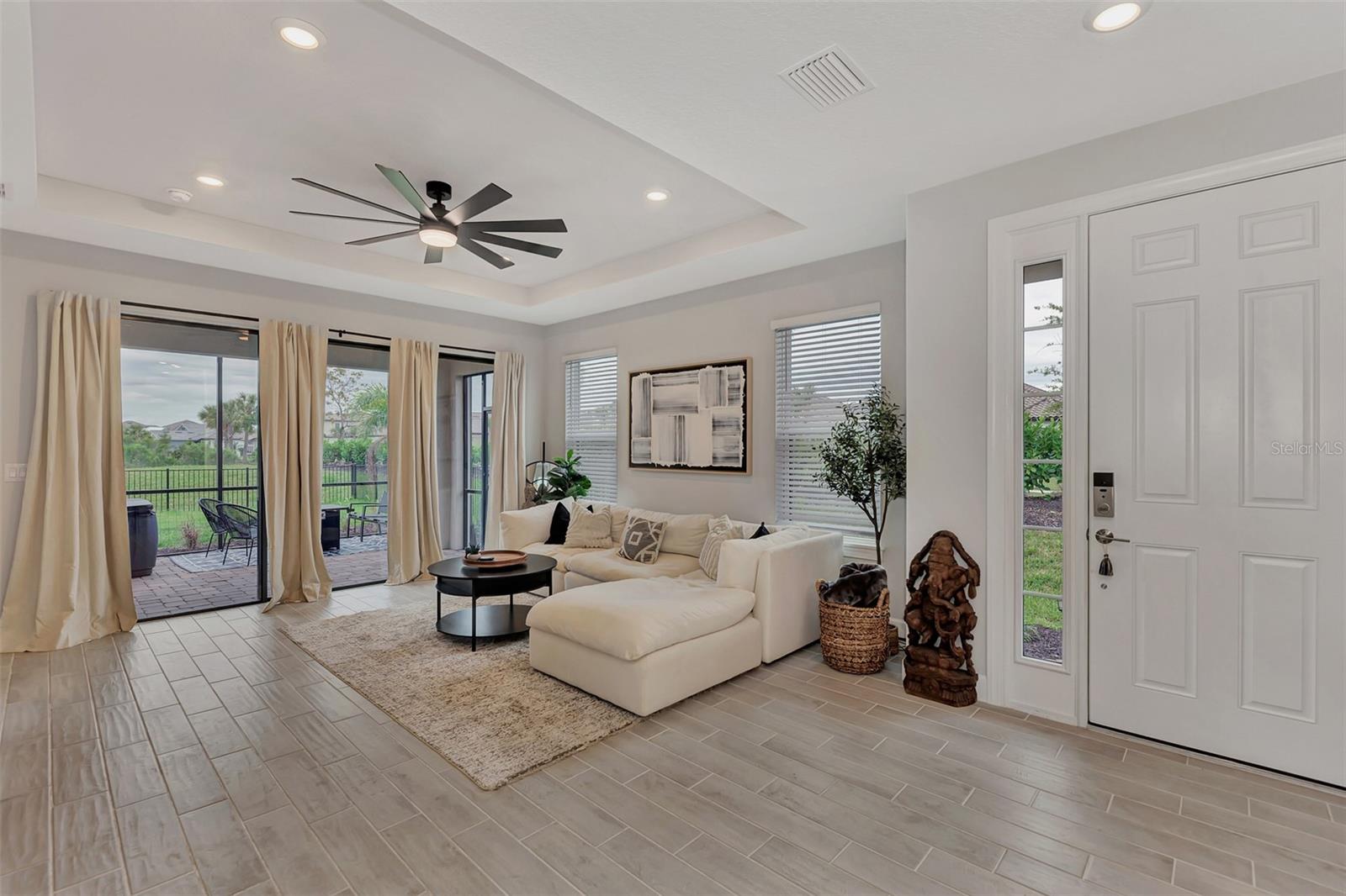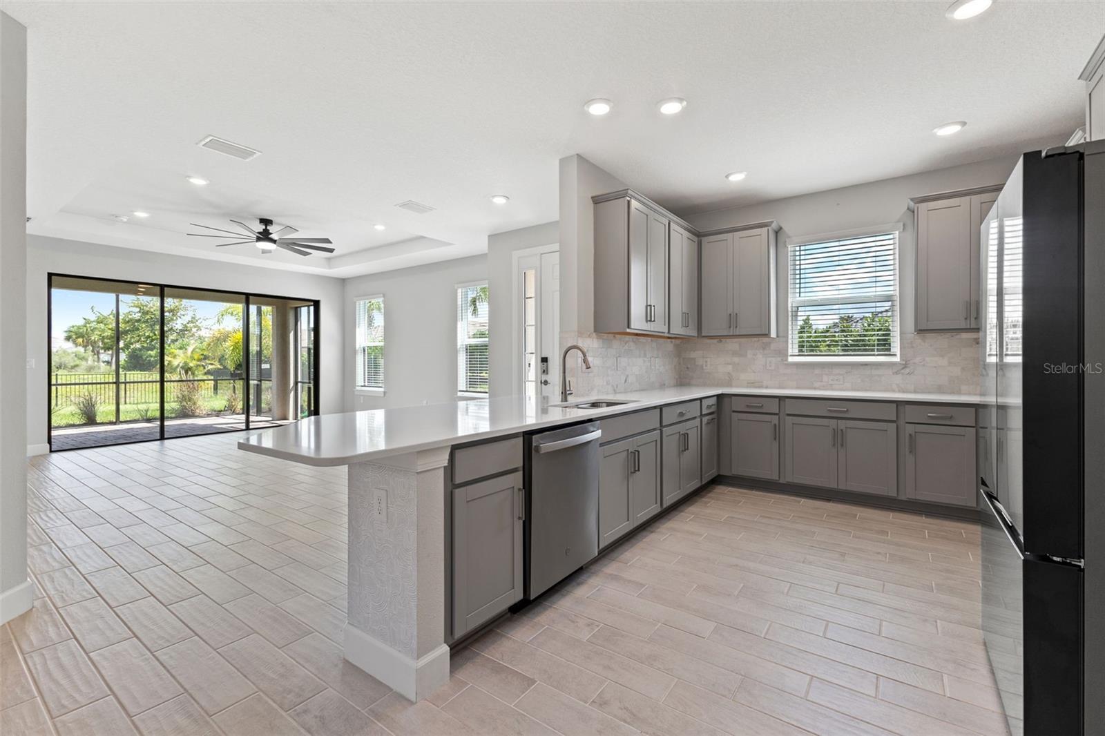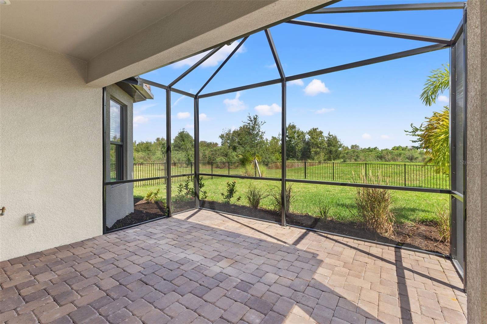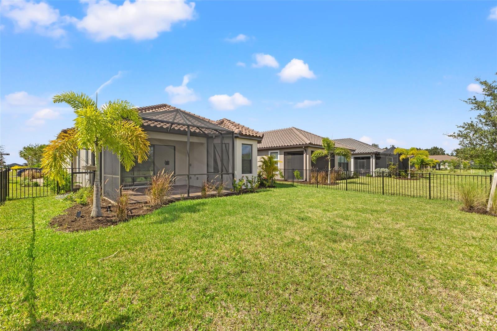 One or more photo(s) has been virtually staged. Only PRESERVE LOT GOLF DEEDED Roma for sale, fenced yard and ample space for a pool and spa with pre-plumbed outdoor kitchen and extended lanai. Seller is offering to build out outdoor kitchen cabinets and replace carpet with luxury vinyl flooring and buyers request. With 1,488 homes, including 850 golf-deeded properties, Azario becomes your exclusive golf course once the HOA is transferred. Plus, this lot is just a short walk from all amenities and the golf pro shop, making it the ideal home for you! Discover your own personal paradise at Esplanade at Azario! Whether you're a snowbird seeking a winter oasis or a couple in search of a whole new lifestyle, this open-concept single family home, Roma model is the perfect destination. Boasting just under 1700 square feet of living space, 2 bedrooms, 2 bathrooms, a den, and a 2-car garage, this home offers a luxurious and comfortable living experience. The extended lanai along with the pre- plumbed outdoor kitchen make for a entertaining area. Being situated on a preserve it is not only private but it is one of the rare properties that was allowed to be fenced, perfect for pets. Step into the kitchen and be delighted by the quartz countertops, 42-inch cabinets, upgraded stainless-steel appliances, a stunning designer backsplash and 8ft doors throughout the house. . The spacious living room features a tray ceiling and a sliding glass door that opens up to the extended screened-in lanai. Throughout the home, you'll find designer ceramic tile flooring, ensuring a stylish and low-maintenance living environment. The elegant master suite at the back of the home is a true retreat, complete with a tray ceiling, large windows, an en suite bathroom with double sinks, quartz countertops, a walk-in shower, and a spacious walk-in closet. The secondary bedroom at the front of the home also features an attached full bathroom with quartz countertops and a walk-in closet. For added privacy, the den comes with pocket doors. Imagine starting your day by sipping tea or coffee in the enclosed lanai, surrounded by manicured gardens, or taking a quick golf cart ride to the Toasted Café for gourmet coffee, breakfast delights, or health-conscious smoothies. The community offers a range of amenities, including an infinity pool, covered veranda, hot tub, cabanas, towel service, and a fully stocked Caribbean-like Bahama Bar. or those who love staying active, Azario features 16 pickleball courts, 6 tennis courts, 4 bocce courts, a vitality park, dog parks, and a full golf course. Additionally, a culinary center with a full indoor bar and gourmet restaurant, providing the perfect setting for wine tastings, special dinners, and social gatherings. If you prefer a more laid-back experience, a satellite pool overlooking a lake is just a short stroll or golf cart ride away. This smaller pool area offers a peaceful retreat where you can barbecue, relax, and enjoy the pool in a more private setting. For ultimate relaxation and self-care, a full salon and spa, as well as a 24/7 gym with classes and workout rooms, are available within the community. This can be your everyday life at Esplanade at Azario. Don't miss the opportunity to schedule your showing and experience the luxury and leisure that this community has to offer!