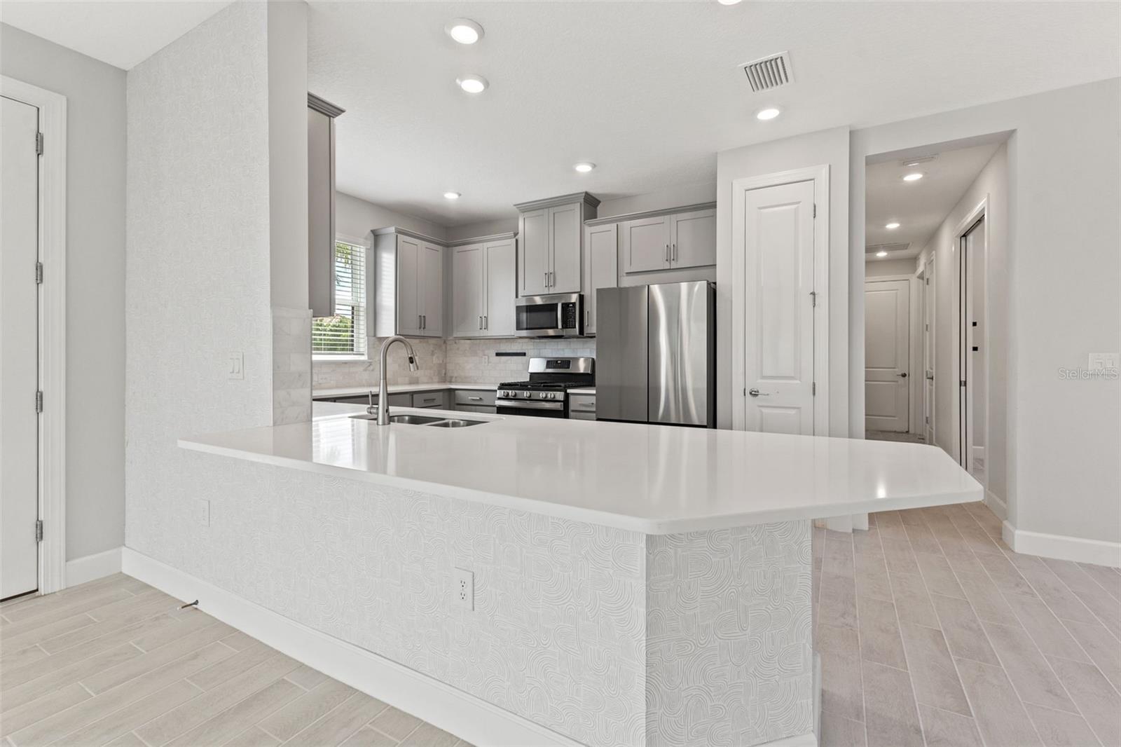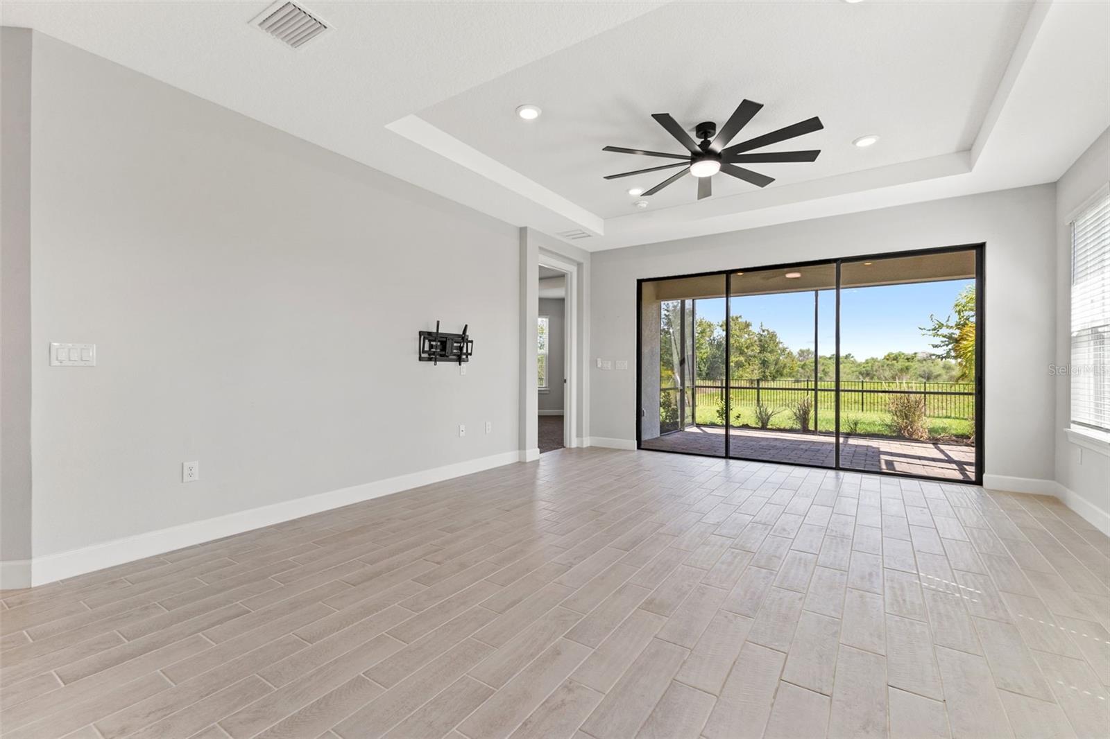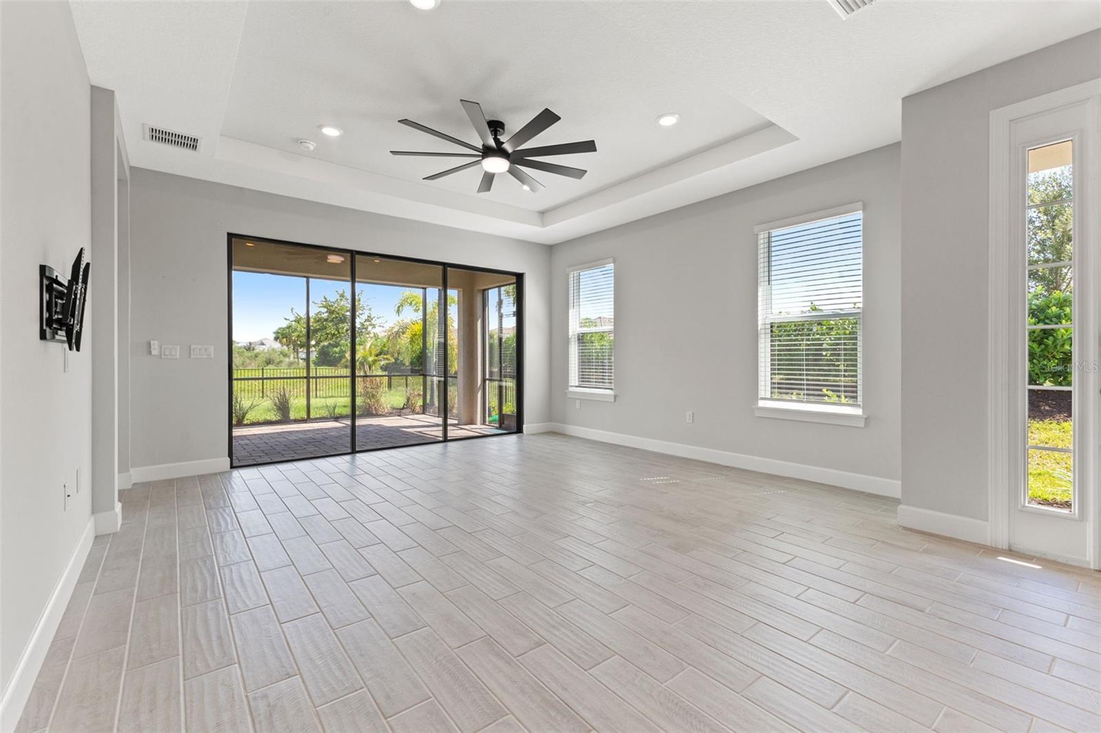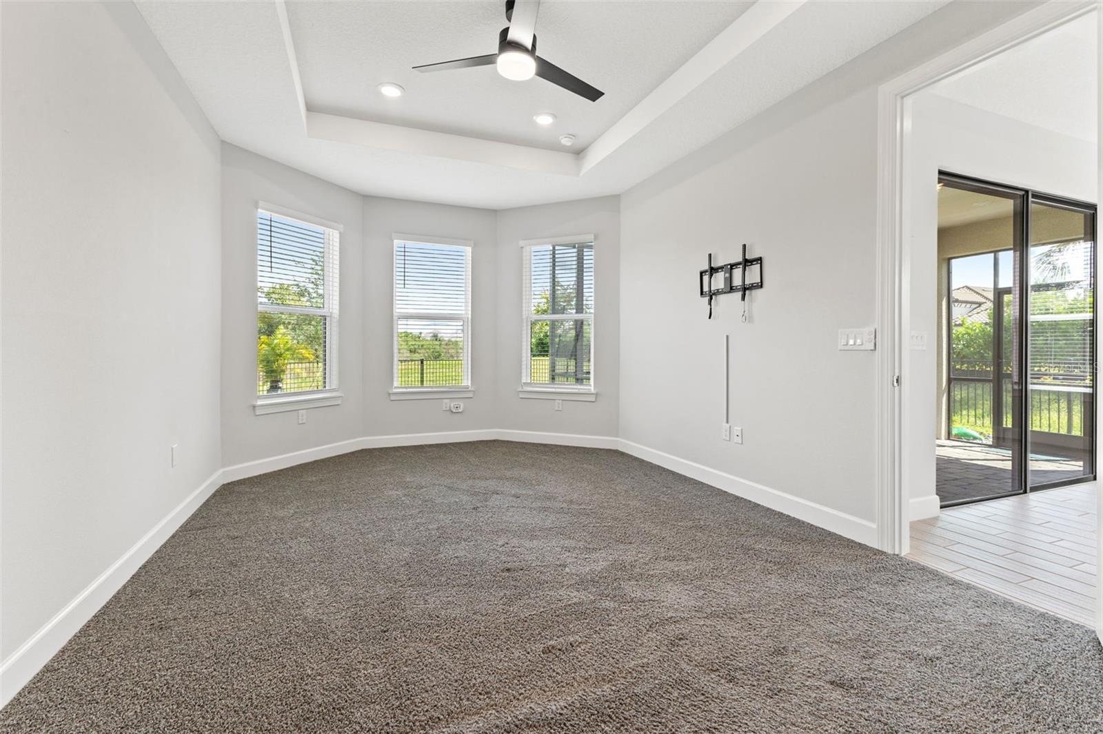 One or more photo(s) has been virtually staged. Only PRESERVE LOT GOLF DEEDED Roma for sale, fenced yard and ample space for a pool and spa with pre-plumbed outdoor kitchen and extended lanai. Seller is offering to build out outdoor kitchen cabinets and replace carpet with luxury vinyl flooring and buyers request. With 1,488 homes, including 850 golf-deeded properties, Azario becomes your exclusive golf course once the HOA is transferred. Plus, this lot is just a short walk from all amenities and the golf pro shop, making it the ideal home for you! Discover your own personal paradise at Esplanade at Azario! Whether you're a snowbird seeking a winter oasis or a couple in search of a whole new lifestyle, this open-concept single family home, Roma model is the perfect destination. Boasting just under 1700 square feet of living space, 2 bedrooms, 2 bathrooms, a den, and a 2-car garage, this home offers a luxurious and comfortable living experience. The extended lanai along with the pre- plumbed outdoor kitchen make for a entertaining area. Being situated on a preserve it is not only private but it is one of the rare properties that was allowed to be fenced, perfect for pets. Step into the kitchen and be delighted by the quartz countertops, 42-inch cabinets, upgraded stainless-steel appliances, a stunning designer backsplash and 8ft doors throughout the house. . The spacious living room features a tray ceiling and a sliding glass door that opens up to the extended screened-in lanai. Throughout the home, you'll find designer ceramic tile flooring, ensuring a stylish and low-maintenance living environment. The elegant master suite at the back of the home is a true retreat, complete with a tray ceiling, large windows, an en suite bathroom with double sinks, quartz countertops, a walk-in shower, and a spacious walk-in closet. The secondary bedroom at the front of the home also features an attached full bathroom with quartz countertops and a walk-in closet. For added privacy, the den comes with pocket doors. Imagine starting your day by sipping tea or coffee in the enclosed lanai, surrounded by manicured gardens, or taking a quick golf cart ride to the Toasted Café for gourmet coffee, breakfast delights, or health-conscious smoothies. The community offers a range of amenities, including an infinity pool, covered veranda, hot tub, cabanas, towel service, and a fully stocked Caribbean-like Bahama Bar. or those who love staying active, Azario features 16 pickleball courts, 6 tennis courts, 4 bocce courts, a vitality park, dog parks, and a full golf course. Additionally, a culinary center with a full indoor bar and gourmet restaurant, providing the perfect setting for wine tastings, special dinners, and social gatherings. If you prefer a more laid-back experience, a satellite pool overlooking a lake is just a short stroll or golf cart ride away. This smaller pool area offers a peaceful retreat where you can barbecue, relax, and enjoy the pool in a more private setting. For ultimate relaxation and self-care, a full salon and spa, as well as a 24/7 gym with classes and workout rooms, are available within the community. This can be your everyday life at Esplanade at Azario. Don't miss the opportunity to schedule your showing and experience the luxury and leisure that this community has to offer!