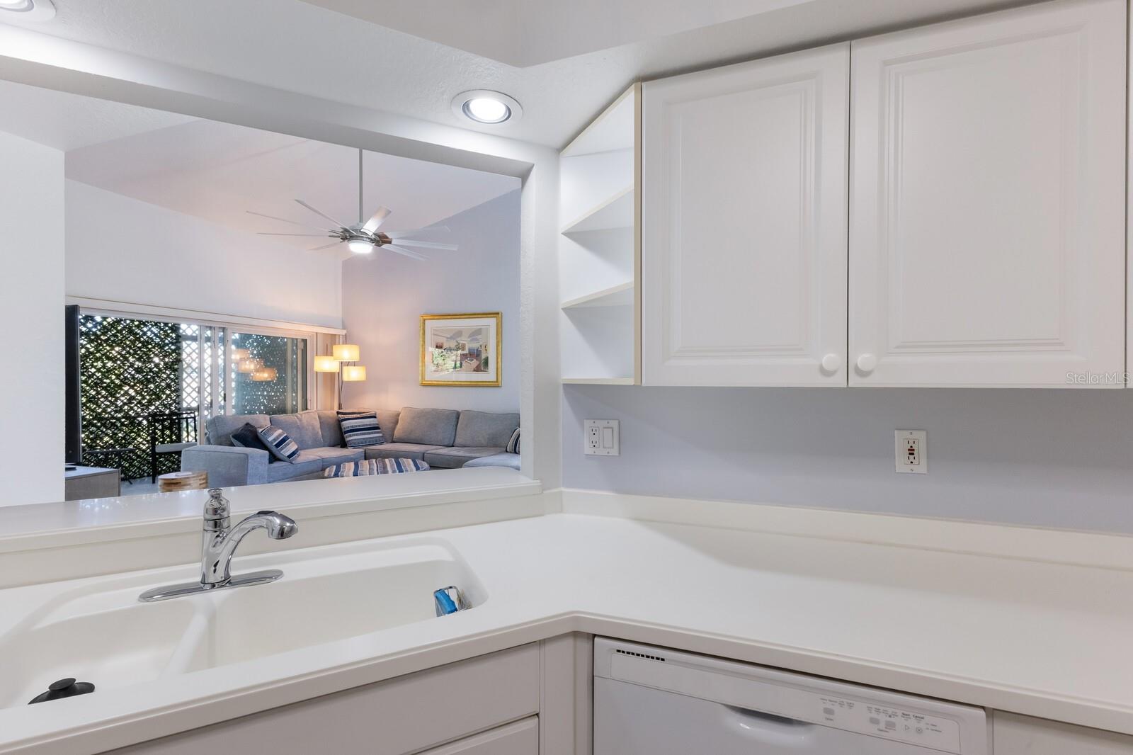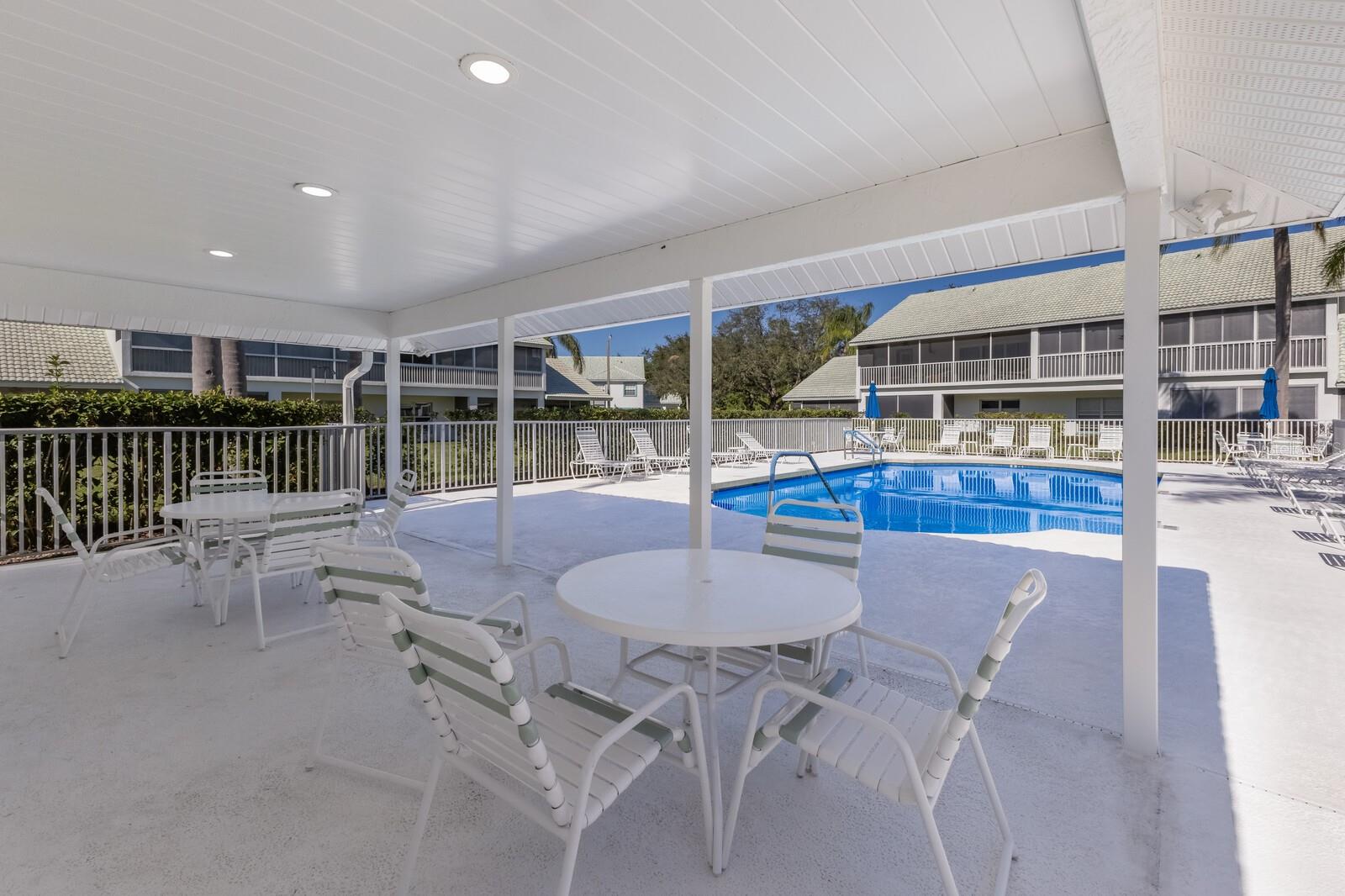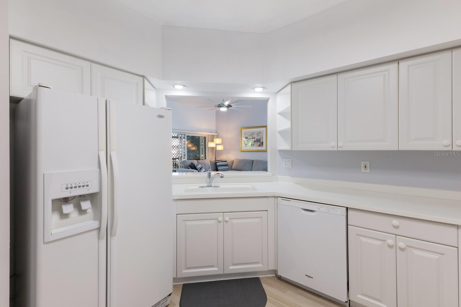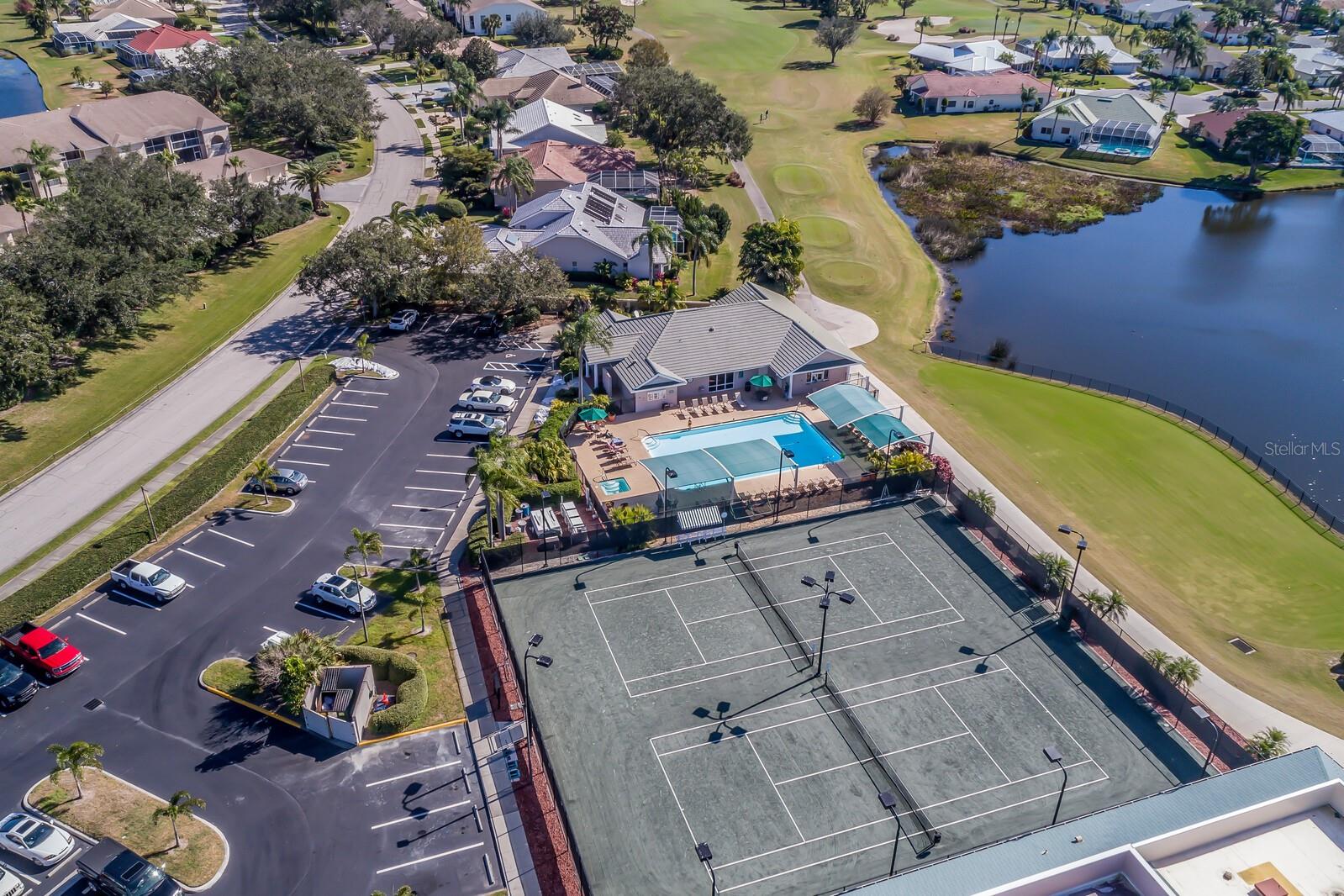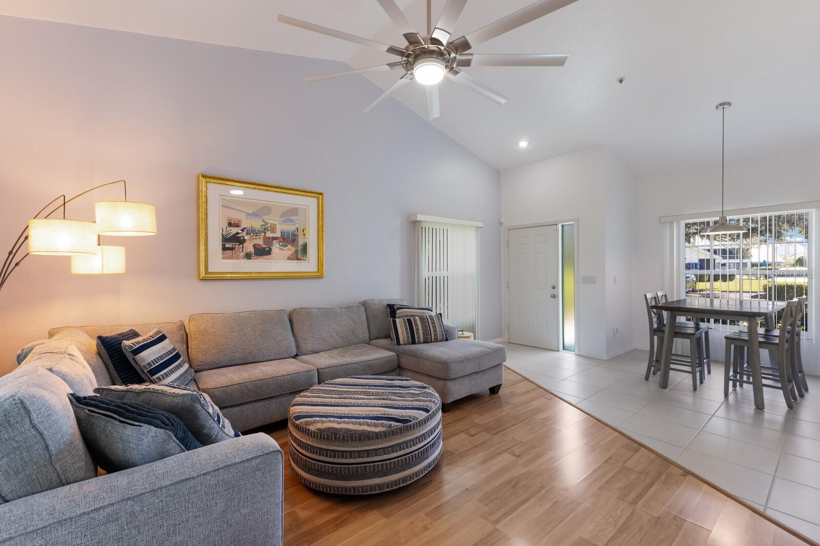 Welcome home to this charming and rare find - a maintenance-free condo nestled in a luxurious boutique golf course community, where membership is optional! This beautifully maintained ground-floor, corner unit offers a perfect blend of privacy and convenience. Step inside this freshly painted 2-bedroom, 2-bath condo, and be welcomed by an open floor plan with soaring cathedral ceilings in the combination great room/dining room, updated with laminate flooring and ceramic tile. The spacious primary suite features an en-suite bath with dual sinks, a walk-in shower, and a built-in closet for ultimate comfort and functionality. Relax and unwind on the large private screened-in lanai, a perfect spot to enjoy your morning coffee or an evening breeze. This furnished home includes valuable upgrades and updates such as a new roof in 2024 and new washer and dryer in 2023, all new ceiling fans and kitchen fandelier installed in 2024, ensuring comfort, efficiency and peace of mind. The spacious one-car garage provides ample storage for all your gear and essentials. Meticulously cared for and move-in ready, this home makes it easy to embrace the stress-free Florida lifestyle. Perfectly located, you'll be just minutes from pristine Gulf of Mexico beaches, fantastic shopping, fine dining, tennis , pickleball all with easy access to everything Sarasota, Bradenton and Lakewood Ranch has to offer.