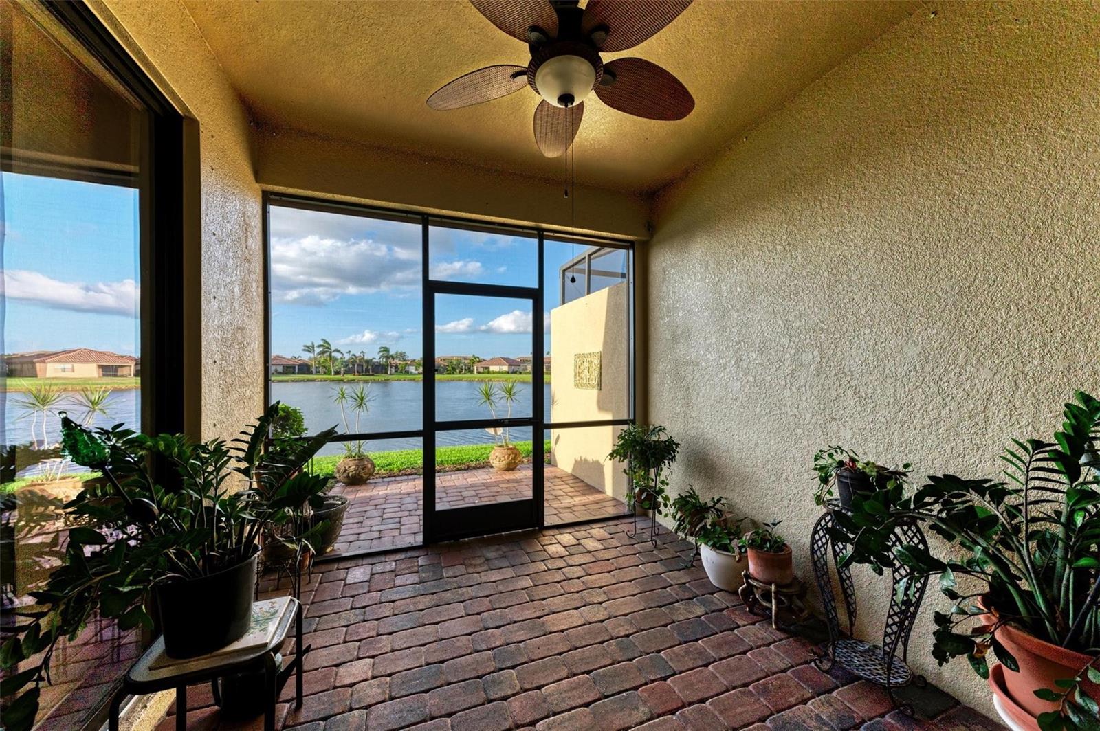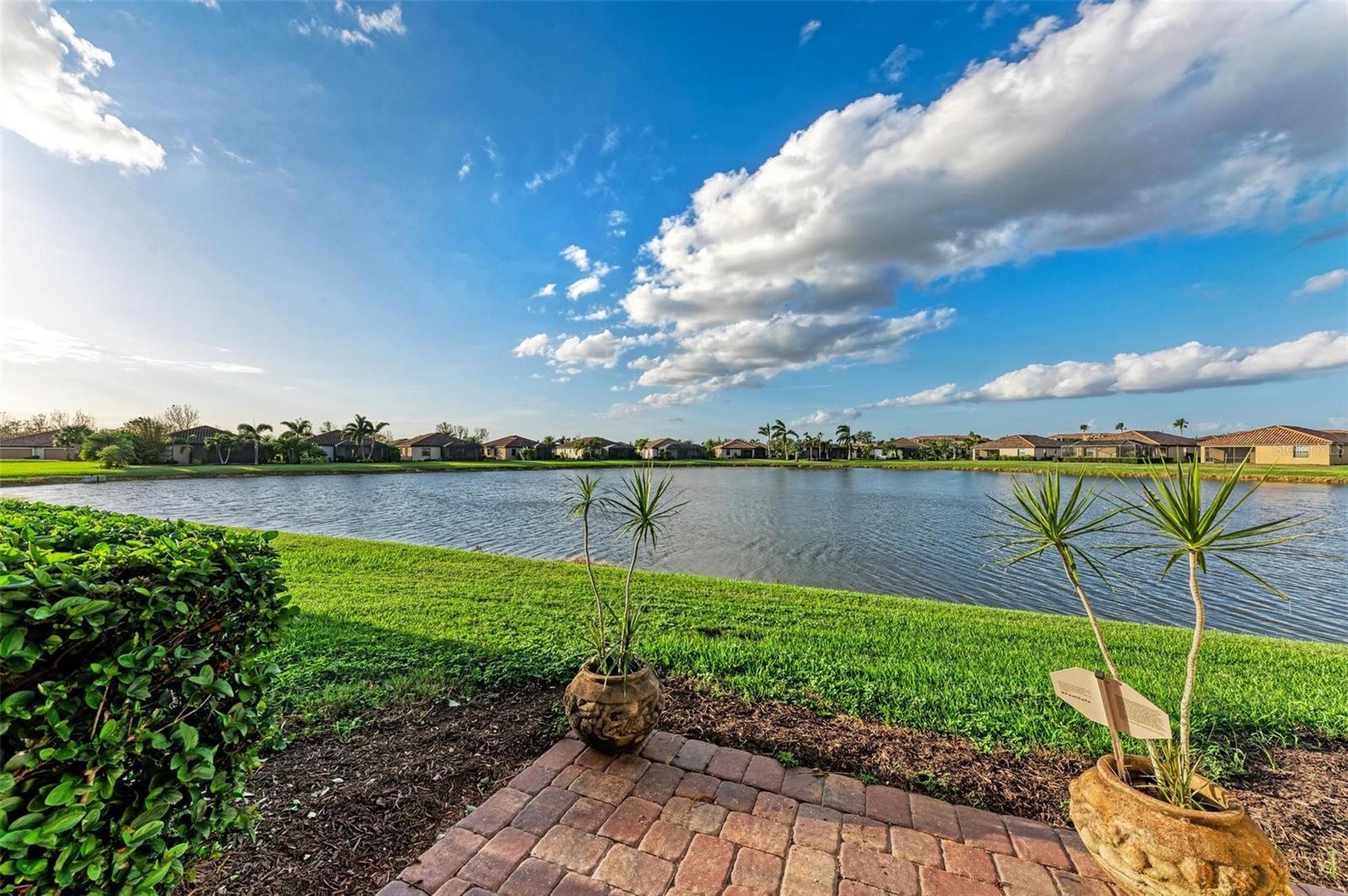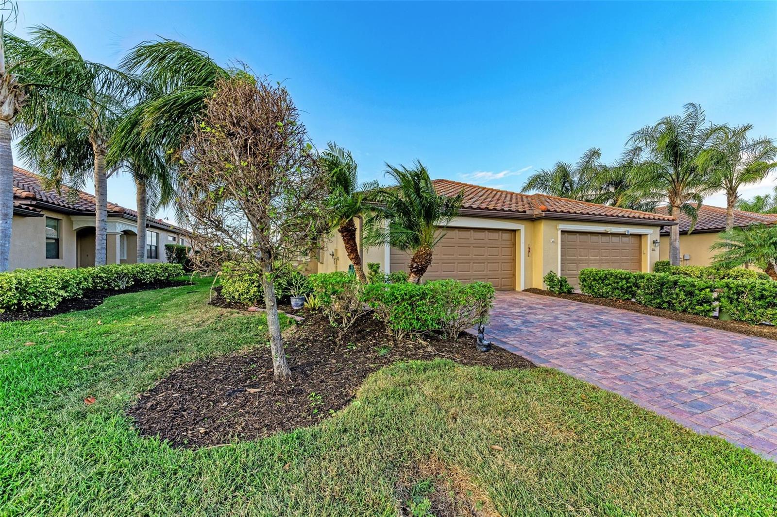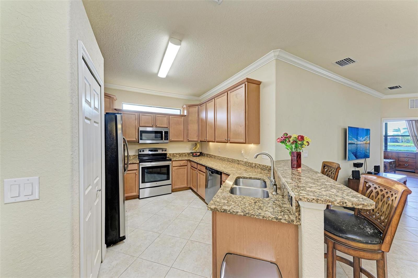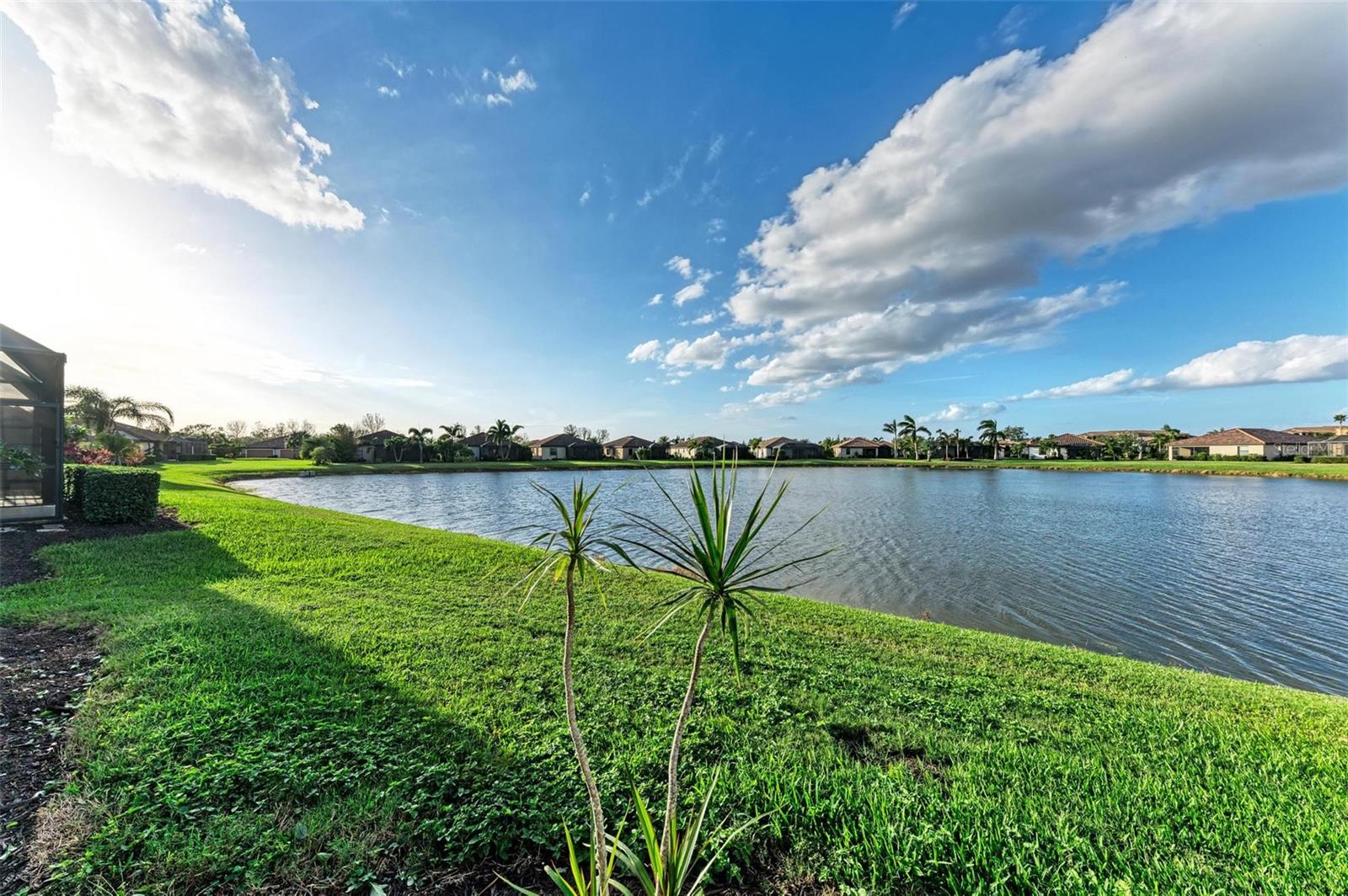 Beautifully furnished villa offers an active, maintenance-free lifestyle and peaceful environment with the serene water views in Bradenton's River Strand Golf and Country Club. The home boasts an open floor plan with two bedrooms, a den/office, two bathrooms and a two-car attached garage. It is designed in a split plan with the primary bedroom in the back and the second bedroom in the front, which provides privacy for your guests and family! The kitchen is appointed with granite counter tops, 42-inch cabinets, stainless steel appliances, breakfast bar and pantry. There is a large dining room that is perfect for entertaining and it is open to the family room, which provides space to relax after a long day at the pool or on the golf course! The den has wood flooring and built-in wood shelving and desks with granite counter tops – perfect for those working from home or the craft enthusiasts. The primary bedroom overlooks the beautiful lake and it is a perfect retreat, complete with wood flooring, two closets with custom organizers and an en-suite bathroom that has a soaking tub, walk-in shower and dual. Enjoy the relaxing views on your screened-in lanai which is equipped with a hurricane screen that is easy to operate during a storm or keeps you dry from the rain! There is an extended patio outside as well for grilling, soaking up the sun or entertaining. The lanai can be extended to expand your outdoor living space as well. There are also accordion hurricane shutters on every window that provide hassle-free peace of mind! The AC was replaced in 2021 and has a UV light for air purification. The laundry room and garage have new cabinetry that provides ample storage! There is no shortage of amenities in River Strand where you can take a swim in one of their two resort style pools, heated spa, 6 satellite pools, or enjoy the tennis courts, 8 pickleball courts, fitness center, or clubhouse complete with onsite restaurant. The 39,000 square foot clubhouse was recently refurbished in Floridian colors and character and offers a semi-formal dining area, a grille room, and a Tiki bar. River Strand hosts several events throughout the year with live entertainment. There is also a golf course where you can pay to play! The HOA fee includes cable tv, exterior maintenance, access to the clubhouse/amenities, lawn care, irrigation. Conveniently located near shopping, such as Costco, Walmart, Publix, UTC Mall, restaurants, and parks, walking trails, and only 30 minutes from the area’s stunning Gulf Coast beaches (Bradenton Beach, Siesta Key, Anna Maria Island). Embrace the perfect balance of comfort, luxury, and active living in this stunning villa. Don’t miss your chance to make it yours—schedule your showing today! *Furniture available on separate bill of sale*
