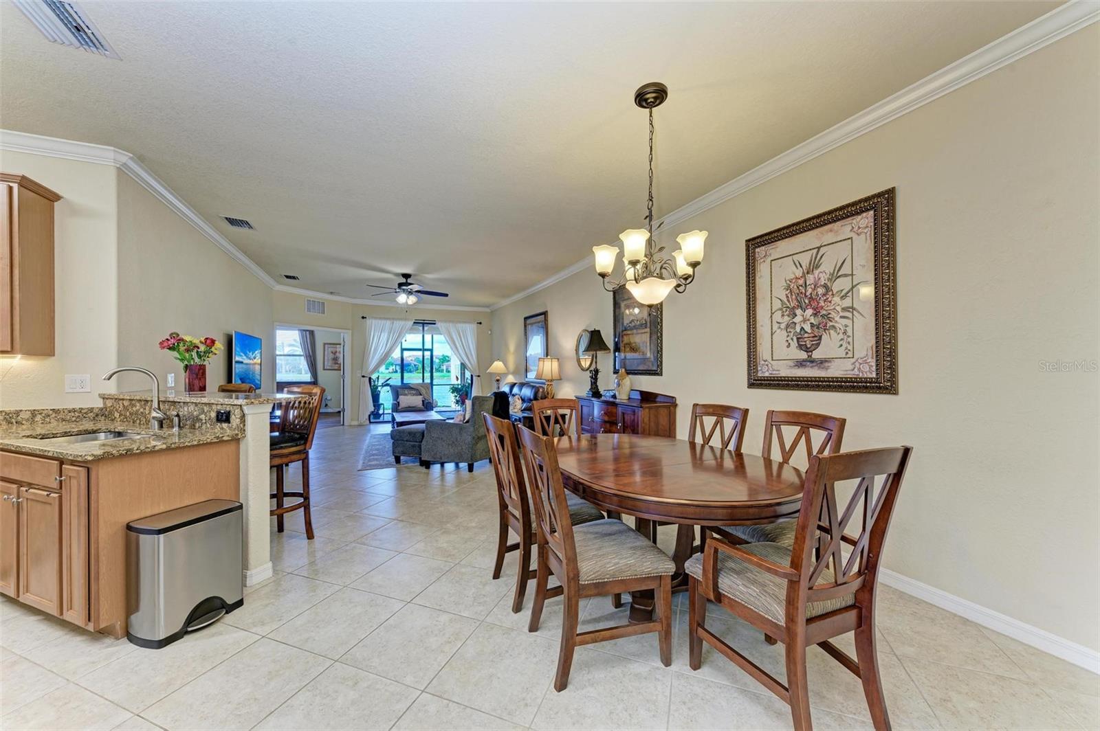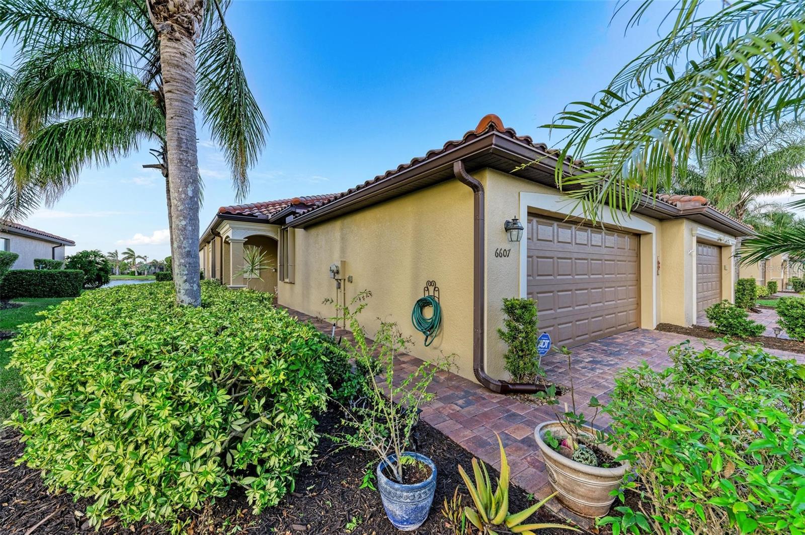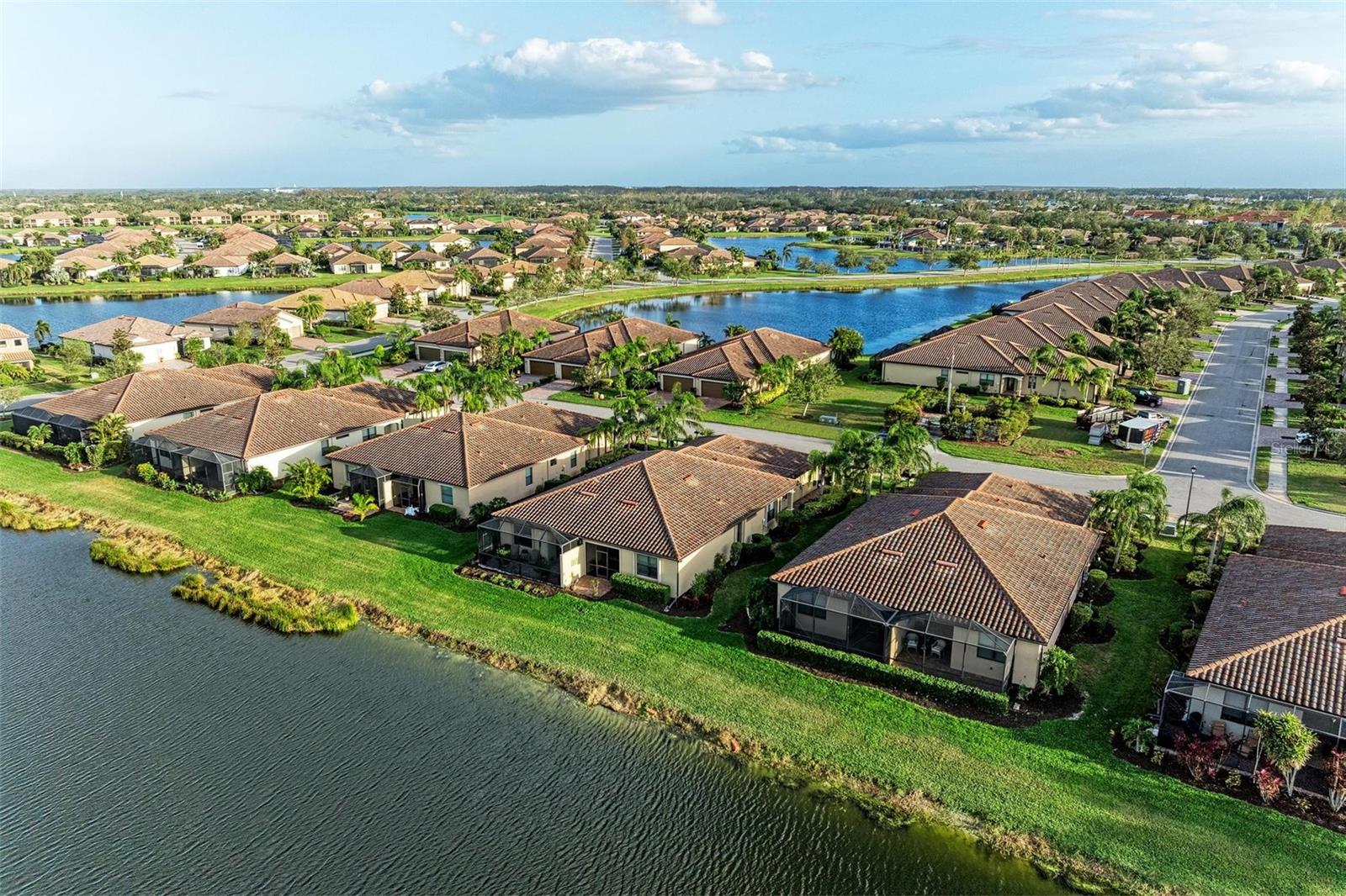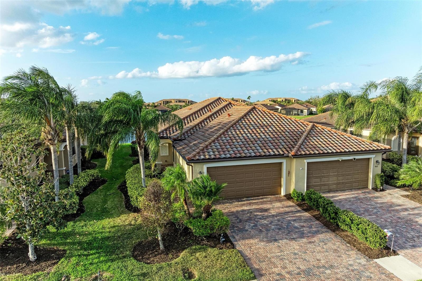Beautifully furnished villa offers an active, maintenance-free lifestyle and peaceful environment with the serene water views in Bradenton's River Strand Golf and Country Club. The home boasts an open floor plan with two bedrooms, a den/office, two bathrooms and a two-car attached garage. It is designed in a split plan with the primary bedroom in the back and the second bedroom in the front, which provides privacy for your guests and family! The kitchen is appointed with granite counter tops, 42-inch cabinets, stainless steel appliances, breakfast bar and pantry. There is a large dining room that is perfect for entertaining and it is open to the family room, which provides space to relax after a long day at the pool or on the golf course! The den has wood flooring and built-in wood shelving and desks with granite counter tops – perfect for those working from home or the craft enthusiasts. The primary bedroom overlooks the beautiful lake and it is a perfect retreat, complete with wood flooring, two closets with custom organizers and an en-suite bathroom that has a soaking tub, walk-in shower and dual. Enjoy the relaxing views on your screened-in lanai which is equipped with a hurricane screen that is easy to operate during a storm or keeps you dry from the rain! There is an extended patio outside as well for grilling, soaking up the sun or entertaining. The lanai can be extended to expand your outdoor living space as well. There are also accordion hurricane shutters on every window that provide hassle-free peace of mind! The AC was replaced in 2021 and has a UV light for air purification. The laundry room and garage have new cabinetry that provides ample storage! There is no shortage of amenities in River Strand where you can take a swim in one of their two resort style pools, heated spa, 6 satellite pools, or enjoy the tennis courts, 8 pickleball courts, fitness center, or clubhouse complete with onsite restaurant. The 39,000 square foot clubhouse was recently refurbished in Floridian colors and character and offers a semi-formal dining area, a grille room, and a Tiki bar. River Strand hosts several events throughout the year with live entertainment. There is also a golf course where you can pay to play! The HOA fee includes cable tv, exterior maintenance, access to the clubhouse/amenities, lawn care, irrigation. Conveniently located near shopping, such as Costco, Walmart, Publix, UTC Mall, restaurants, and parks, walking trails, and only 30 minutes from the area’s stunning Gulf Coast beaches (Bradenton Beach, Siesta Key, Anna Maria Island). Embrace the perfect balance of comfort, luxury, and active living in this stunning villa. Don’t miss your chance to make it yours—schedule your showing today! *Furniture available on separate bill of sale*