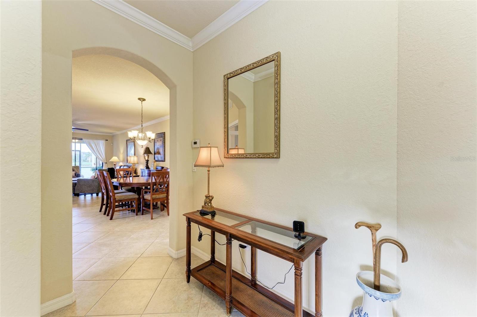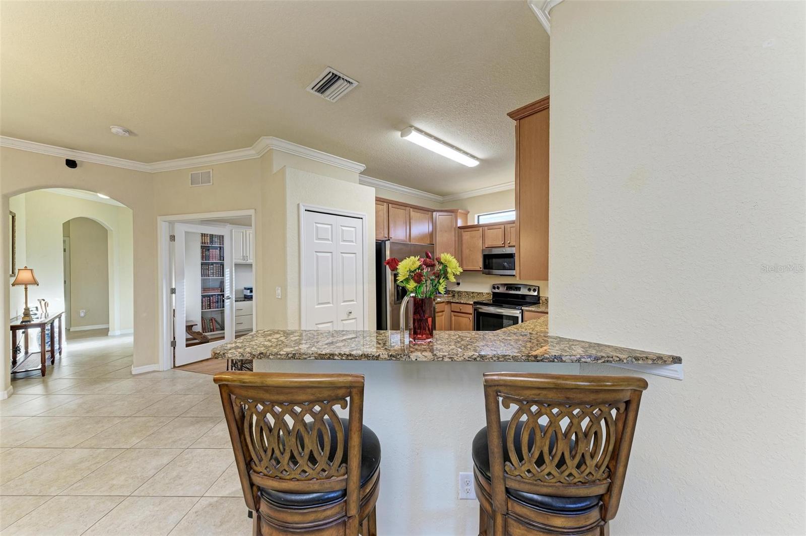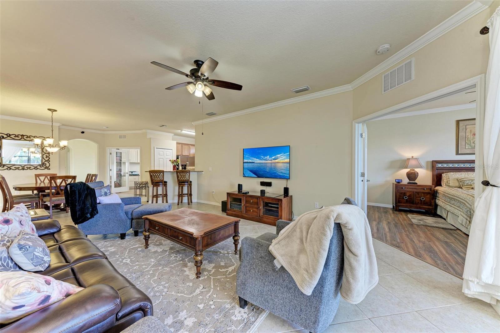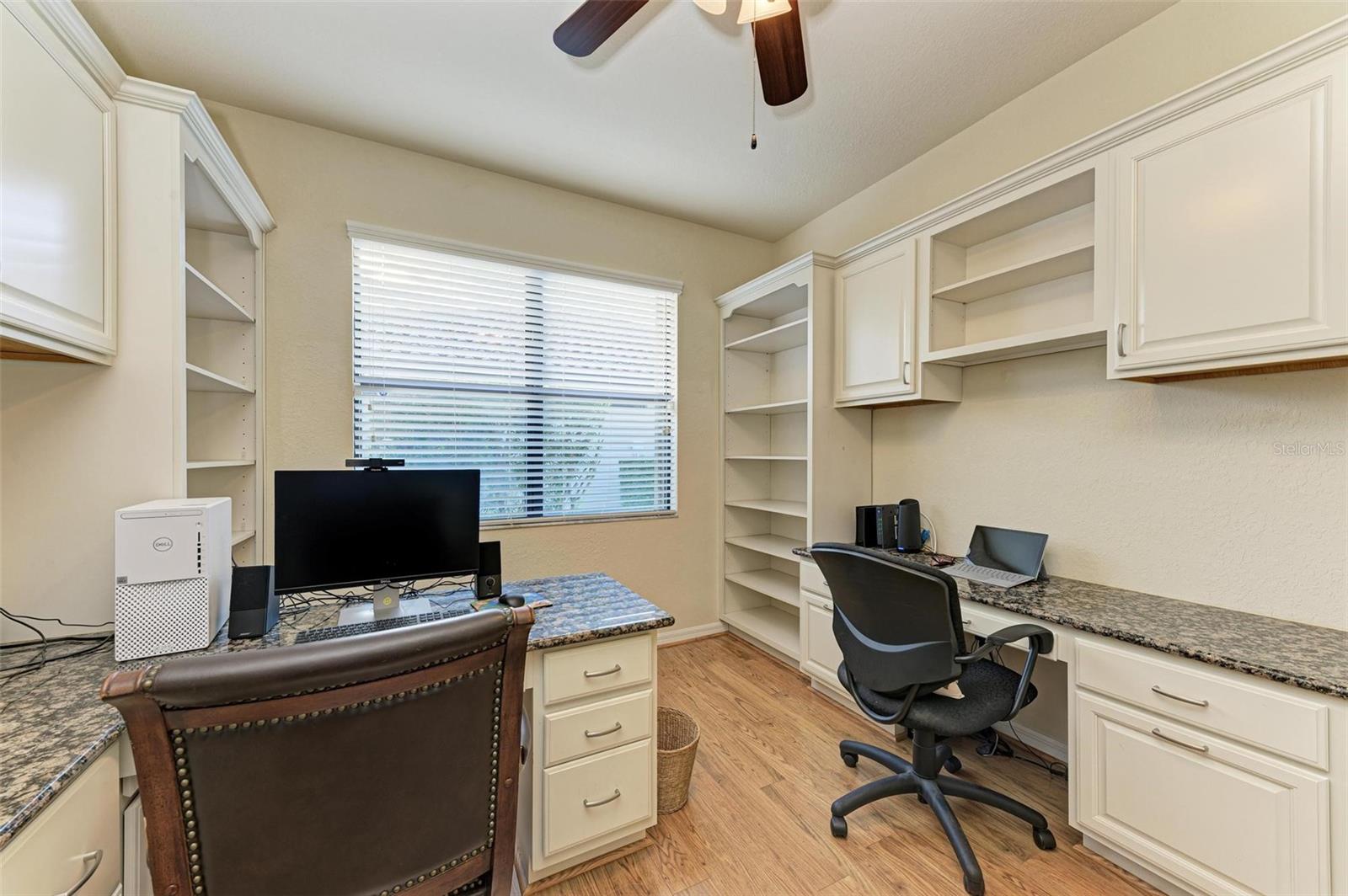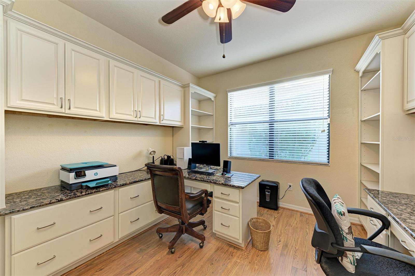 Beautifully furnished villa offers an active, maintenance-free lifestyle and peaceful environment with the serene water views in Bradenton's River Strand Golf and Country Club. The home boasts an open floor plan with two bedrooms, a den/office, two bathrooms and a two-car attached garage. It is designed in a split plan with the primary bedroom in the back and the second bedroom in the front, which provides privacy for your guests and family! The kitchen is appointed with granite counter tops, 42-inch cabinets, stainless steel appliances, breakfast bar and pantry. There is a large dining room that is perfect for entertaining and it is open to the family room, which provides space to relax after a long day at the pool or on the golf course! The den has wood flooring and built-in wood shelving and desks with granite counter tops – perfect for those working from home or the craft enthusiasts. The primary bedroom overlooks the beautiful lake and it is a perfect retreat, complete with wood flooring, two closets with custom organizers and an en-suite bathroom that has a soaking tub, walk-in shower and dual. Enjoy the relaxing views on your screened-in lanai which is equipped with a hurricane screen that is easy to operate during a storm or keeps you dry from the rain! There is an extended patio outside as well for grilling, soaking up the sun or entertaining. The lanai can be extended to expand your outdoor living space as well. There are also accordion hurricane shutters on every window that provide hassle-free peace of mind! The AC was replaced in 2021 and has a UV light for air purification. The laundry room and garage have new cabinetry that provides ample storage! There is no shortage of amenities in River Strand where you can take a swim in one of their two resort style pools, heated spa, 6 satellite pools, or enjoy the tennis courts, 8 pickleball courts, fitness center, or clubhouse complete with onsite restaurant. The 39,000 square foot clubhouse was recently refurbished in Floridian colors and character and offers a semi-formal dining area, a grille room, and a Tiki bar. River Strand hosts several events throughout the year with live entertainment. There is also a golf course where you can pay to play! The HOA fee includes cable tv, exterior maintenance, access to the clubhouse/amenities, lawn care, irrigation. Conveniently located near shopping, such as Costco, Walmart, Publix, UTC Mall, restaurants, and parks, walking trails, and only 30 minutes from the area’s stunning Gulf Coast beaches (Bradenton Beach, Siesta Key, Anna Maria Island). Embrace the perfect balance of comfort, luxury, and active living in this stunning villa. Don’t miss your chance to make it yours—schedule your showing today! *Furniture available on separate bill of sale*