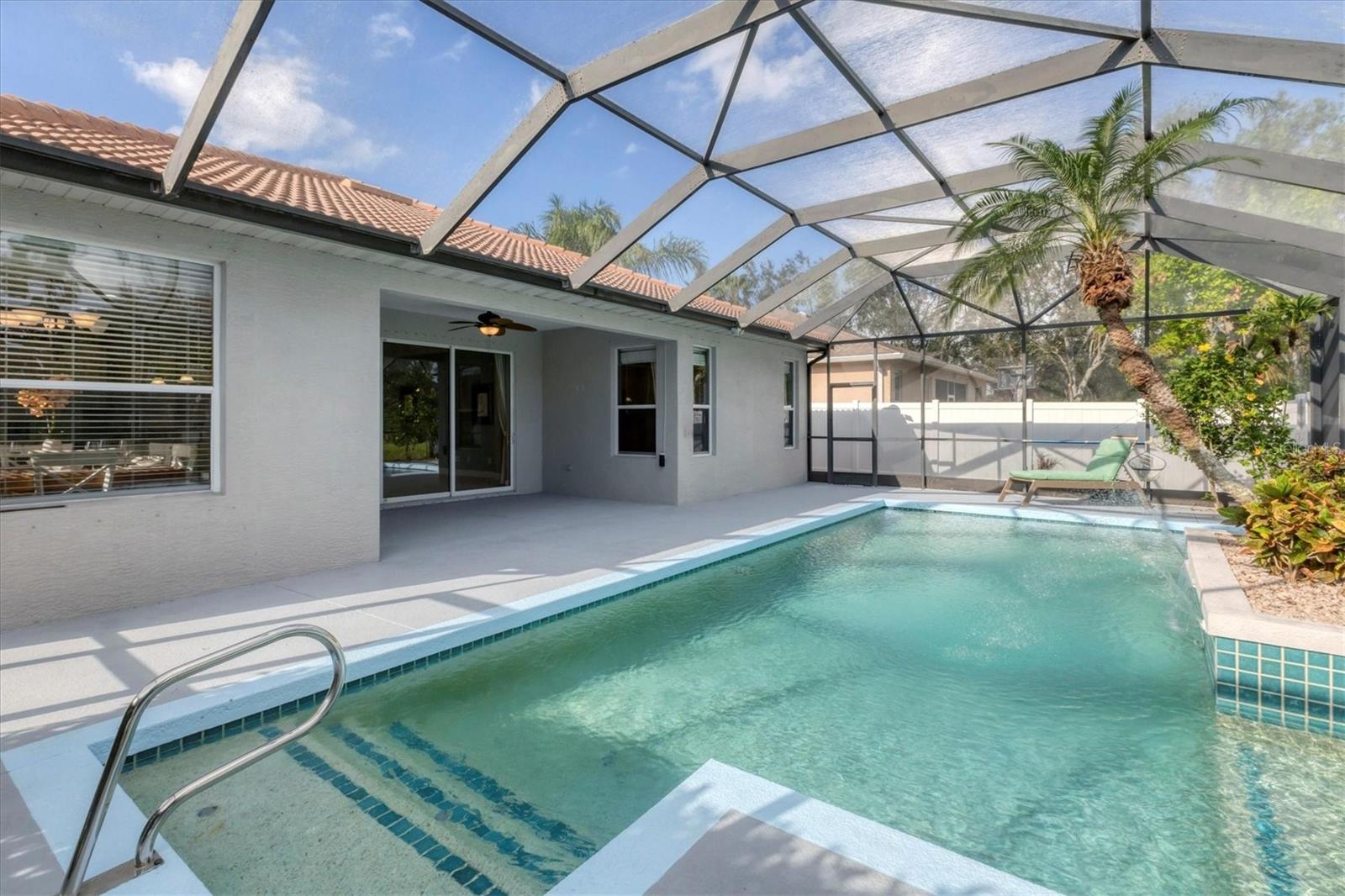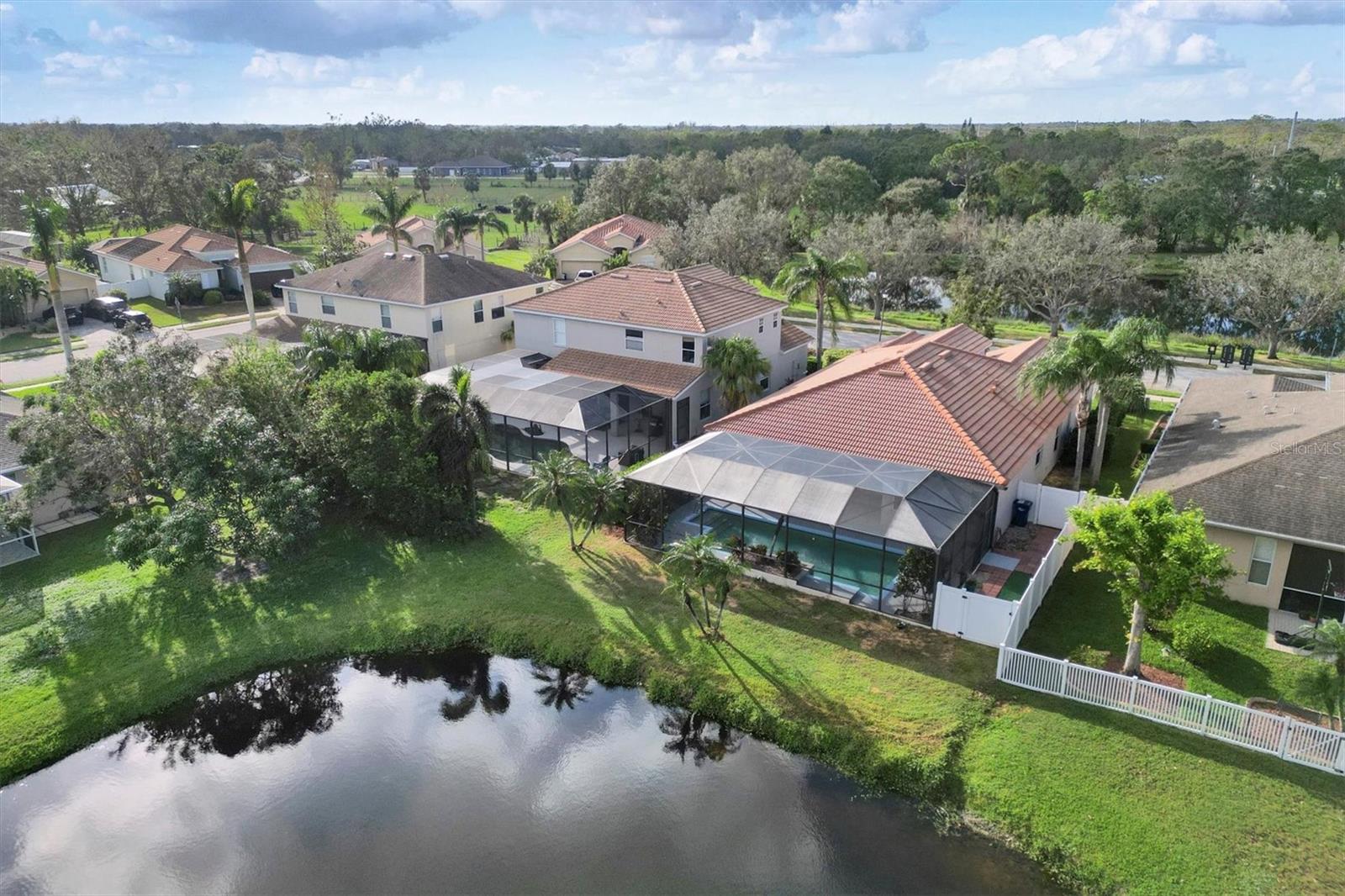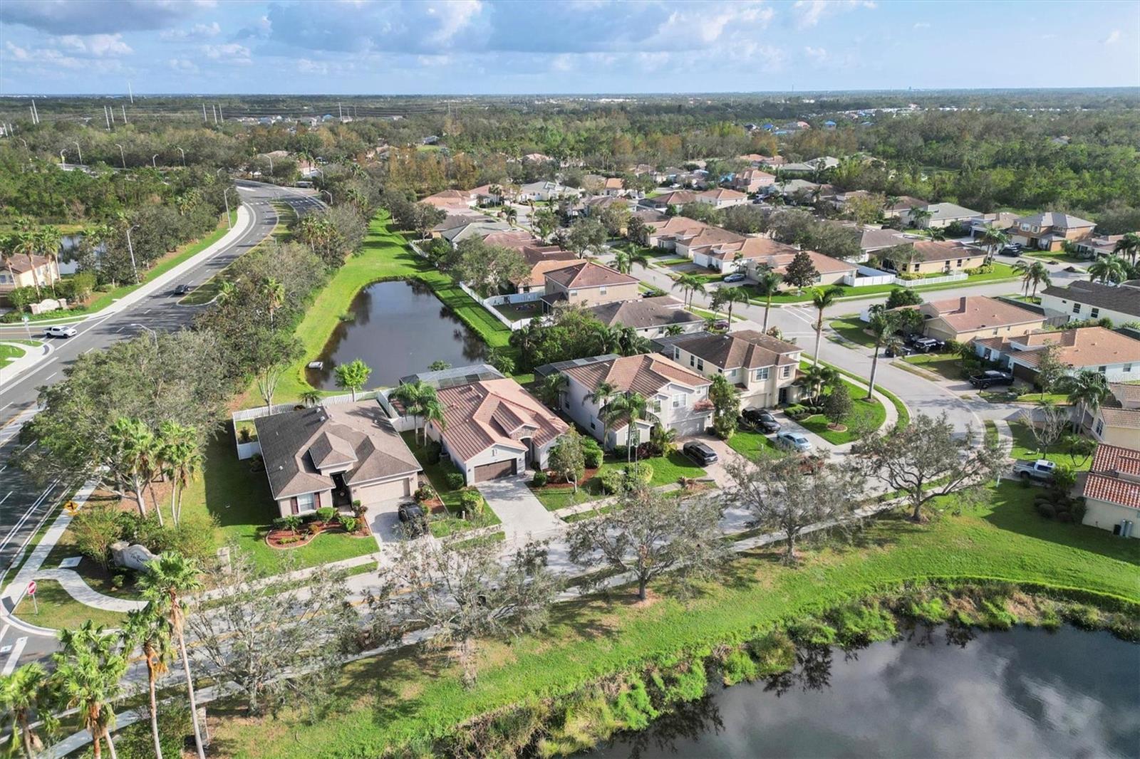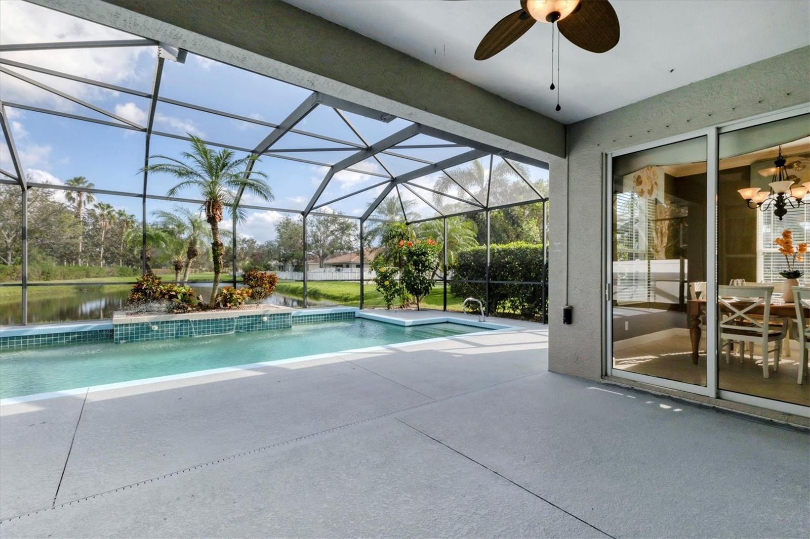 Don't miss this former Centex MODEL POOL HOME! Soaring 10-foot ceilings,3 bedrooms, 3 full baths, 2264 square feet of open concept living with a ton of natural light. There is plenty of room to host family & friends. This former model home is situated on a gorgeous, premium pond lot with no neighbors behind or in front of the property, The generous size pool features a raised water feature, palm tree & tropical hibiscus landscape beds, inside the pool cage, overlooking the tranquil water view make this the tropical paradise you have been waiting for! This home did not have any flooding or storm damage and comes complete with hurricane shutters. Impress your friends and family with all the model home "extras": gorgeous leaded glass front door, double master bedroom walk in closets with extensive closet organizers complete with drawers, crown molding, soaring 10-foot ceiling height, decorative columns, decorative wainscot and wood designs on accent walls, perfectly chosen accent paint, decorative ceiling details, gorgeous draperies and lighting package, paver driveway and freshly painted pool deck, front entry and garage floor. The open concept kitchen and eat in breakfast area overlook the sparkling pool area and beautiful pond view, All new kitchen appliances in 2024. Refrigerator was never used. New hvac in 2021. Roof is concrete tile. Concrete tile roofs have a lifespan of 40-50 years. Looking for an HOA community with no CDD and low HOA? You have found it! HOA fees are $297 quarterly and include common area insurance, common area maintenance, property management, which protects your home value by holding up the deed restrictions. Creekwood Park is approximately a mile away, It has one of the largest dog parks in the county and a great playground! Location is near several golf courses, Costco is 5.5 miles, Lowes & Home Depot 5-7 minutes drive, several restaurants within 5 minute drive, tons of shopping & grocery stores right around the corner. Easy access to I-75 at SR 70 within 10 minutes. Live your best life - Move to Florida Gulf Coast. Call Tina Seaman to make an appointment to view this beautiful pool home and own a former model home!