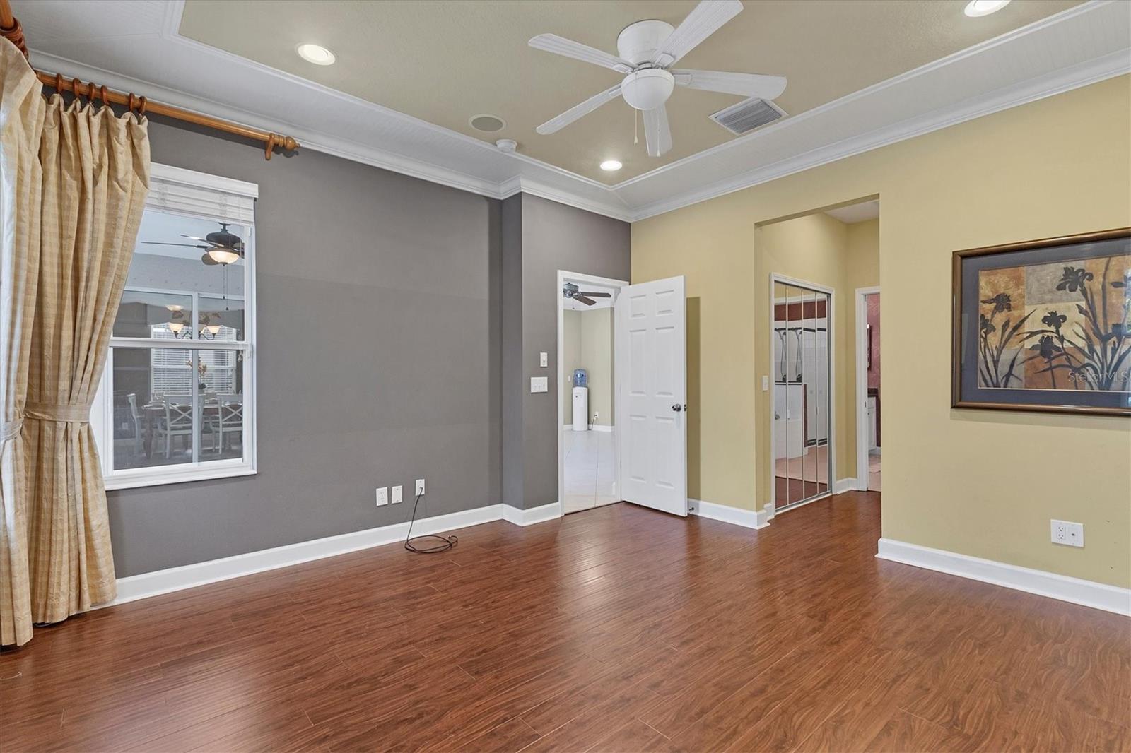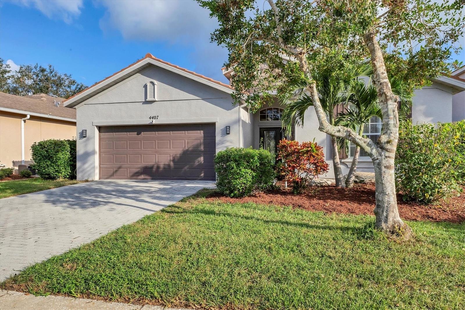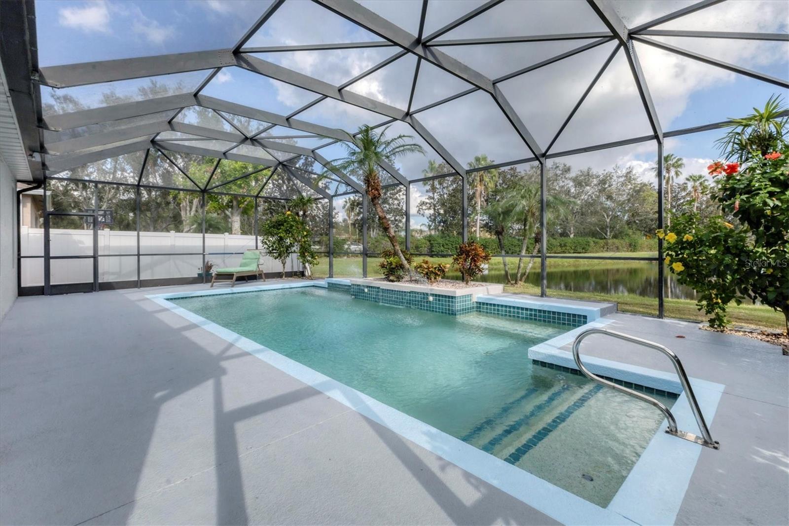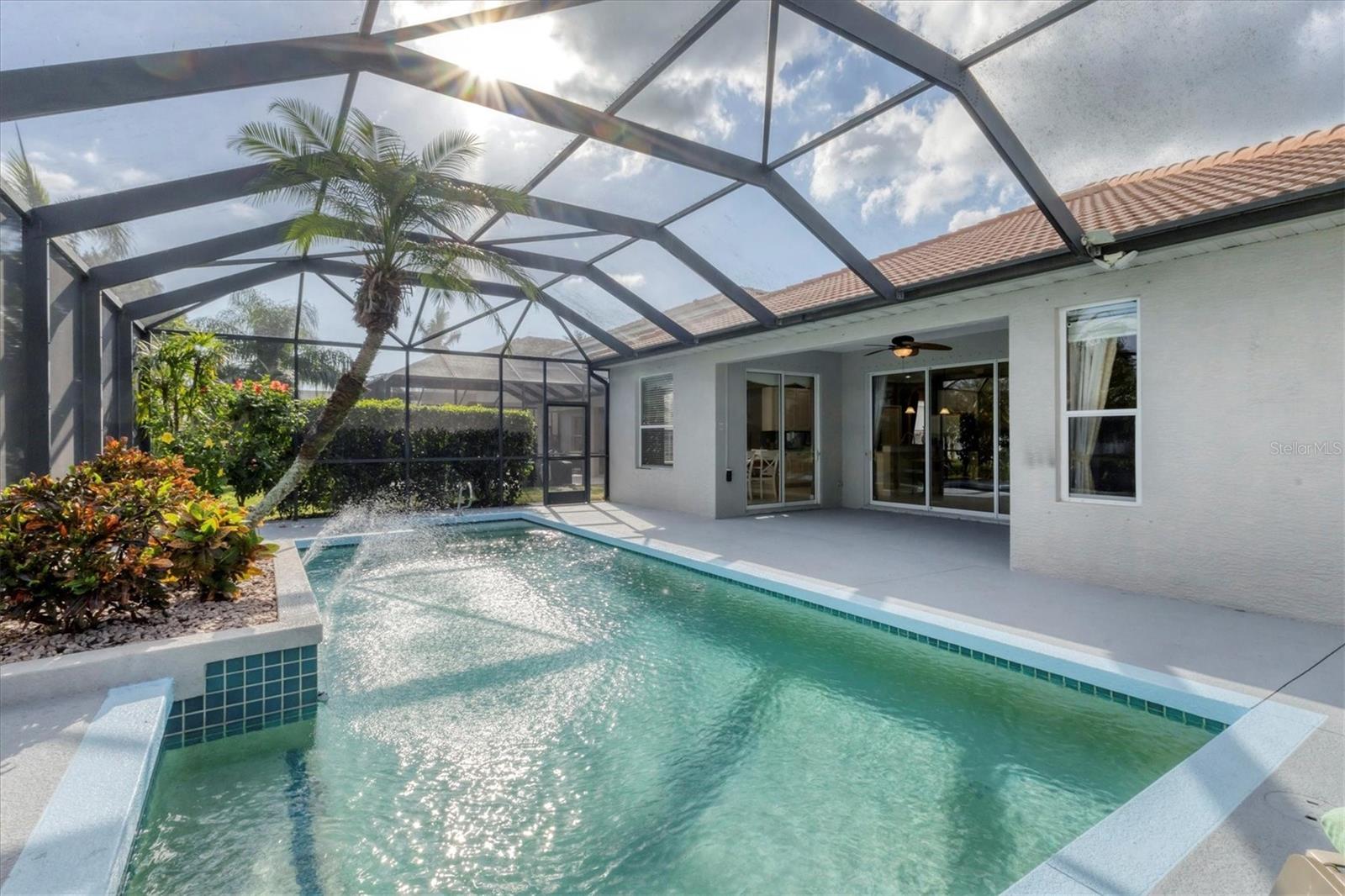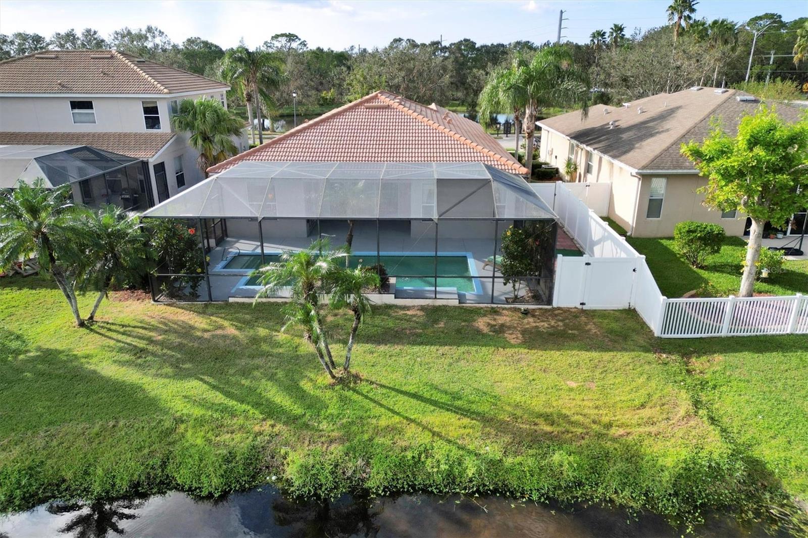 Don't miss this former Centex MODEL POOL HOME! Soaring 10-foot ceilings,3 bedrooms, 3 full baths, 2264 square feet of open concept living with a ton of natural light. There is plenty of room to host family & friends. This former model home is situated on a gorgeous, premium pond lot with no neighbors behind or in front of the property, The generous size pool features a raised water feature, palm tree & tropical hibiscus landscape beds, inside the pool cage, overlooking the tranquil water view make this the tropical paradise you have been waiting for! This home did not have any flooding or storm damage and comes complete with hurricane shutters. Impress your friends and family with all the model home "extras": gorgeous leaded glass front door, double master bedroom walk in closets with extensive closet organizers complete with drawers, crown molding, soaring 10-foot ceiling height, decorative columns, decorative wainscot and wood designs on accent walls, perfectly chosen accent paint, decorative ceiling details, gorgeous draperies and lighting package, paver driveway and freshly painted pool deck, front entry and garage floor. The open concept kitchen and eat in breakfast area overlook the sparkling pool area and beautiful pond view, All new kitchen appliances in 2024. Refrigerator was never used. New hvac in 2021. Roof is concrete tile. Concrete tile roofs have a lifespan of 40-50 years. Looking for an HOA community with no CDD and low HOA? You have found it! HOA fees are $297 quarterly and include common area insurance, common area maintenance, property management, which protects your home value by holding up the deed restrictions. Creekwood Park is approximately a mile away, It has one of the largest dog parks in the county and a great playground! Location is near several golf courses, Costco is 5.5 miles, Lowes & Home Depot 5-7 minutes drive, several restaurants within 5 minute drive, tons of shopping & grocery stores right around the corner. Easy access to I-75 at SR 70 within 10 minutes. Live your best life - Move to Florida Gulf Coast. Call Tina Seaman to make an appointment to view this beautiful pool home and own a former model home!
