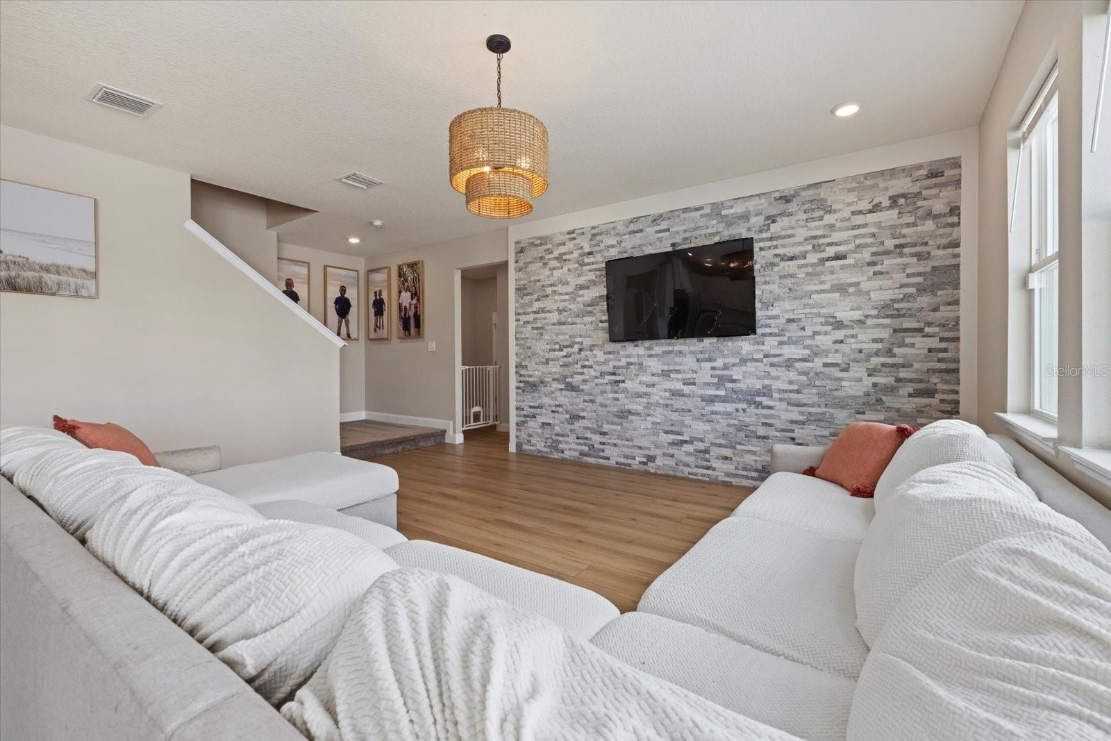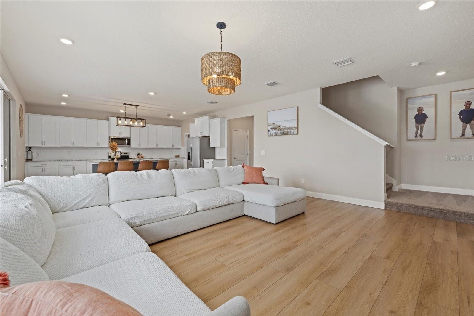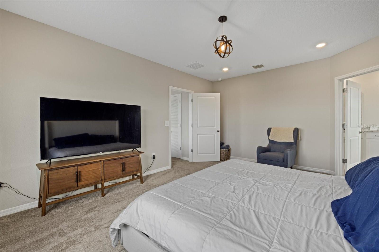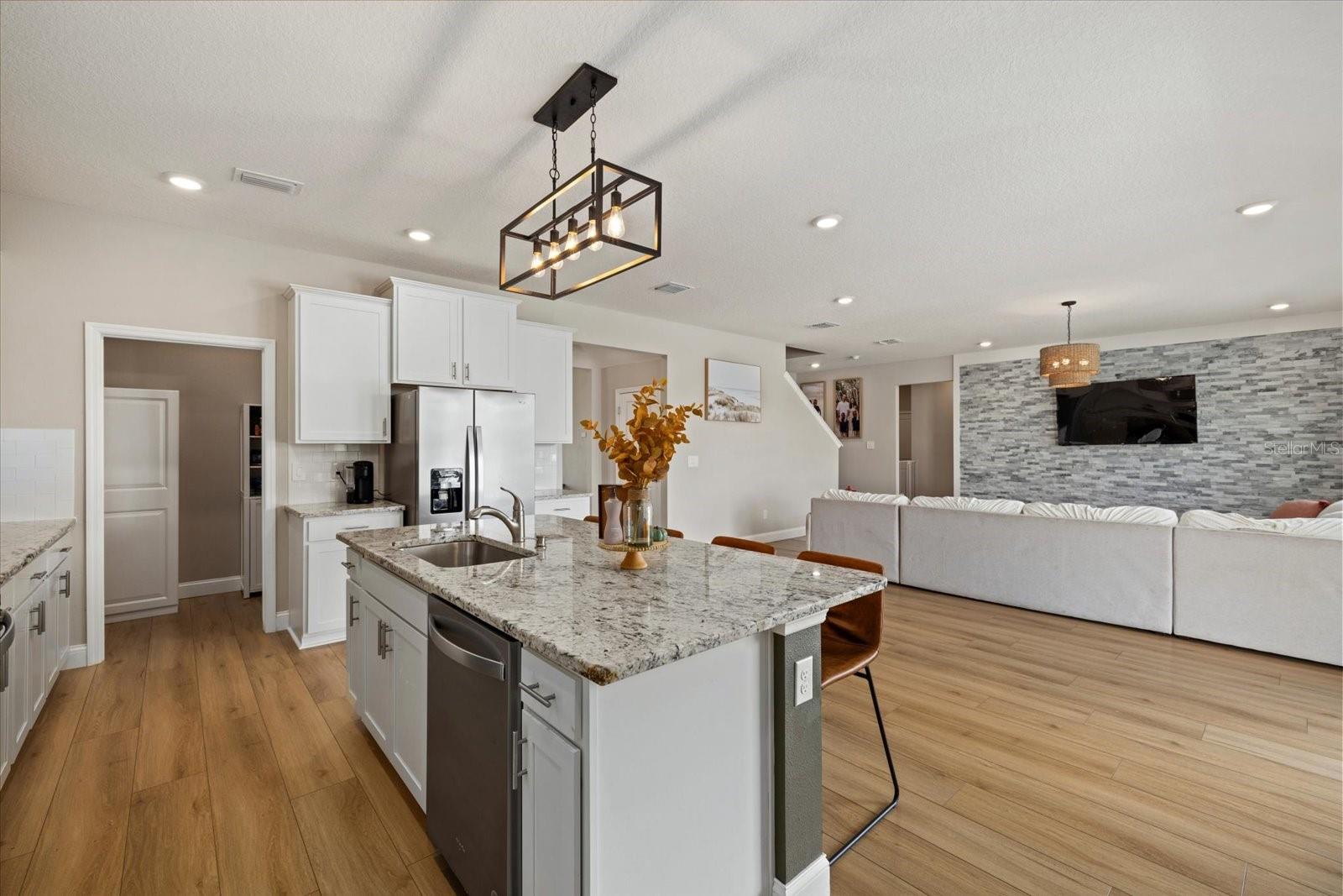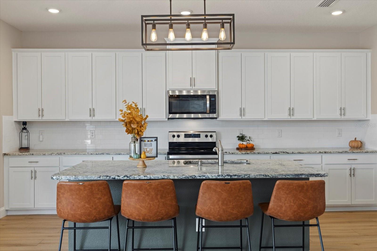 Discover the exquisite D.R. Horton's Jordyn Model home in the sought-after Solera community of Lakewood Ranch—the nation's best-selling multi-generational community known for its family-centric charm and modern living. Offering over 3,000 square feet of living space, this meticulously maintained home is ideal for growing families and entertaining. The striking curb appeal and tasteful interior paint reflect the owners' pride of ownership. Upon entry, a showroom-quality epoxy floor in the expansive three-car garage sets the stage for the impressive details inside. The living room features a striking split face stone wall, while the owner's suite is enhanced by a custom board and batten accent wall. The open floor plan offers flexibility, with a bonus room near the foyer for work or leisure. A spacious guest bedroom on the first floor includes a full bathroom, providing privacy and comfort for visitors. The gourmet kitchen blends style and function with granite countertops, a large island, elegant cabinetry, modern light fixtures, and stainless steel appliances—all included. It flows seamlessly into the great room, dining area, and covered lanai, creating an ideal space for entertaining. Upstairs, plush carpeting leads to a versatile loft perfect for a game room or home theater. Each generously sized bedroom offers beautiful views. The luxurious owner's retreat features two walk-in closets, dual sinks, granite countertops, and a garden tub for ultimate relaxation. The highlight of this home is the stunning pool with spa—a private backyard oasis perfect for swimming, relaxing, and outdoor entertaining. The fenced backyard combines PVC and iron fencing, offering privacy while framing breathtaking pond views and picturesque sunrises and sunsets. Situated in a prime location, this home is minutes from upscale shopping, fine dining, scenic parks, top-rated golf courses, and Florida's renowned beaches. With easy access to Sarasota, St. Petersburg, and Tampa, the best of the Sunshine State is within reach. Solera residents enjoy resort-style amenities, including a luxurious pool, elegant clubhouse, top-tier schools, and a charming tot-lot. This community seamlessly blends luxury and comfort, creating an idyllic environment for families to thrive. Don't miss the opportunity to own this extraordinary home. Schedule your private showing today and experience the beauty and sophistication for yourself.