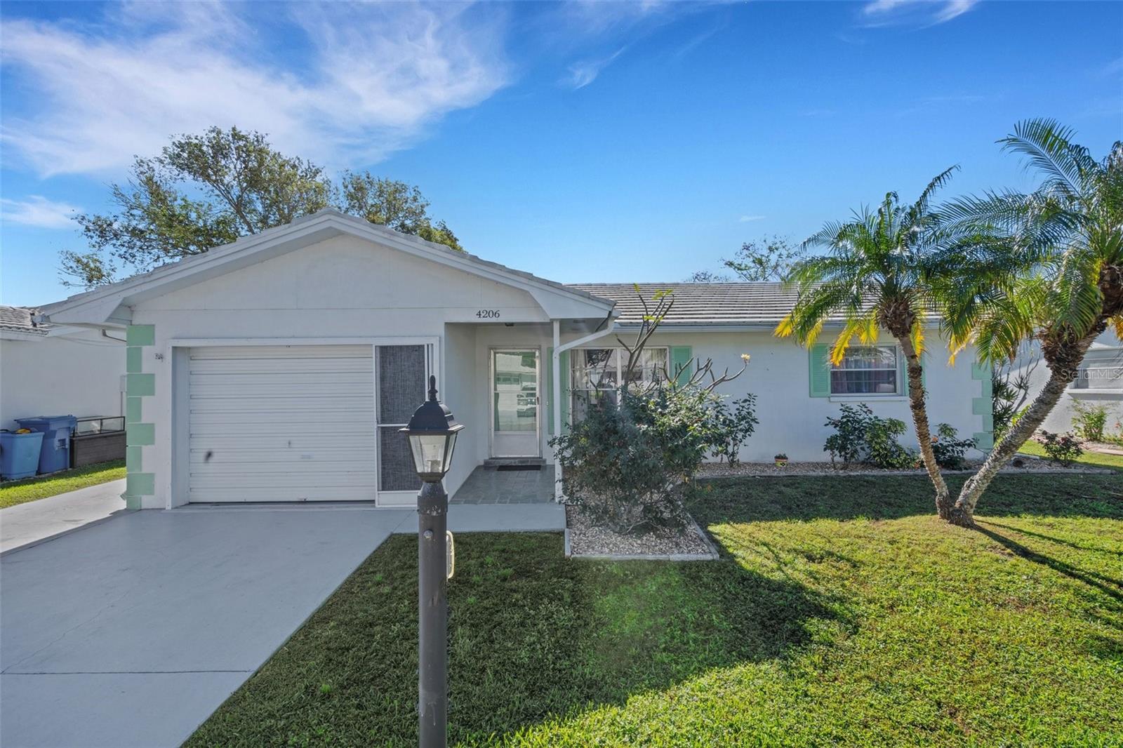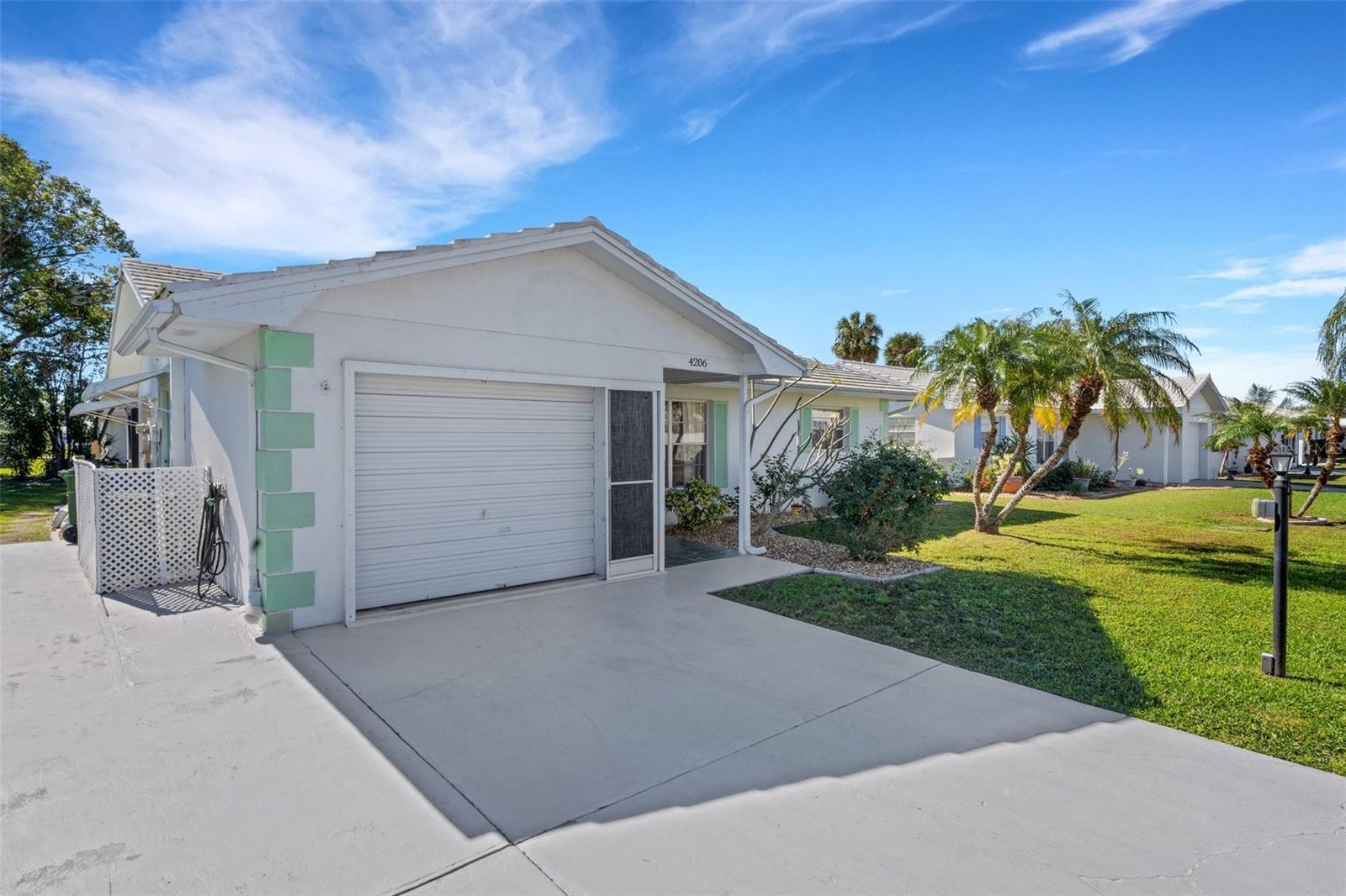 WELCOME HOME! FULL TIME OR 'SNOWBIRD' RESIDENT, we have just the property for you. Wonderful 2BR/2BA/1CG with 995sf of living space in the premier 55+ golf community of RIVER ISLES. Very nice curb appeal. Enter to the light and bright combination Living Room & Dining Room, with sliders to the rear enclosed lanai. To the left is the efficient galley style Kitchen, with Dinette or Home Office area. This too has a slider to the lanai. With a 9x20 enclosed lanai, there is room for some great grillin' and chillin'. The bedrooms are located on the opposite side of the house offering privacy to owners and guests alike. The bedroom sizes are similar and both have reach-in closets. The primary bath is in the common hall to the bedrooms. It has a combination tub/shower. The second bathroom is located in back of the laundry area in the garage. Speaking of garage, it is a 1 car, however if you have a golf cart, it most likely will take claim to the garage. Not to worry as the driveway is wide enough for 2 vehicles. Golfers and non-golfers often use the GC as their 'community transportation vehicle' . The community clubhouse is the hub of most activities; meetings, events, entertainment/dances, crafts, lending library. game room, exercise room, secure mail room, active shuffle board group (regular and special fun events), temperature controlled pool for your year around enjoyment. Let's not forget the community owned professionally maintained 9 hole executive golf course, definitely not a par 3 course, better bring your driver. The community is located minutes away from Interstates, airports, shopping, dining, medical facilities, worship, amateur and professional sports facilities and teams, the MANY area cultural amenities, and the beautiful Gulf of Mexico water and sensational beaches. Low HOA fee, pet friendly. Note: There is a onetime new buyer Capital Contribution Fee of $2000, payable at closing. Old Republic Home Warranty included.