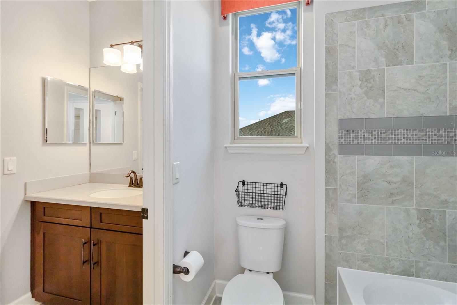 One or more photo(s) has been virtually staged. The seller has transitioned on to their next chapter, presenting a rare opportunity for you to claim this exceptional property. Their departure is your gain-don't miss the chance to make it yours! Welcome home to this stunning 5-bedroom, 4-bathroom residence in the coveted Serenity Creek community. This meticulously designed home is a former model home and boasts high-end finishes and thoughtful upgrades throughout. As you step inside, you're welcomed by an abundance of natural light and a spacious open floor plan. Wood beams and several wallpaper, stone and wood accent walls add uniqueness and elegance to this home. You will feel like a Chef in the gourmet kitchen, featuring granite countertops, Stainless Steel appliances and an expansive center island, perfect for culinary enthusiasts and entertaining guests. The oversized primary bedroom is the perfect relaxing retreat, complete with a tray ceiling and a custom closet which has direct access to the laundry room. The primary bathroom offers dual vanities, a luxurious garden tub, and a separate shower. Three additional bedrooms, each thoughtfully designed with walk in closet space, two additional bathrooms and a spacious bonus area completes the upstairs space. A fifth bedroom and 4Th full bathroom is located on the main level. This home has been meticulously maintained and boasts numerous upgrades, including newer upgraded carpet, an epoxy-floored three-car garage and a brand-new roof installed in 2023. Enjoy the beautiful FL weather in the extended screened lanai, spanning the width of the home, which invites you to relax and enjoy the serene outdoor space. The lush, green landscape and oversized backyard provide a perfect setting for outdoor activities. Don't miss this incredible opportunity to own a truly exceptional home in a highly sought-after community. With low HOA fees and no CDD, conveniently located to restaurants, retail and schools its the perfect place to call home. Schedule your private tour today!