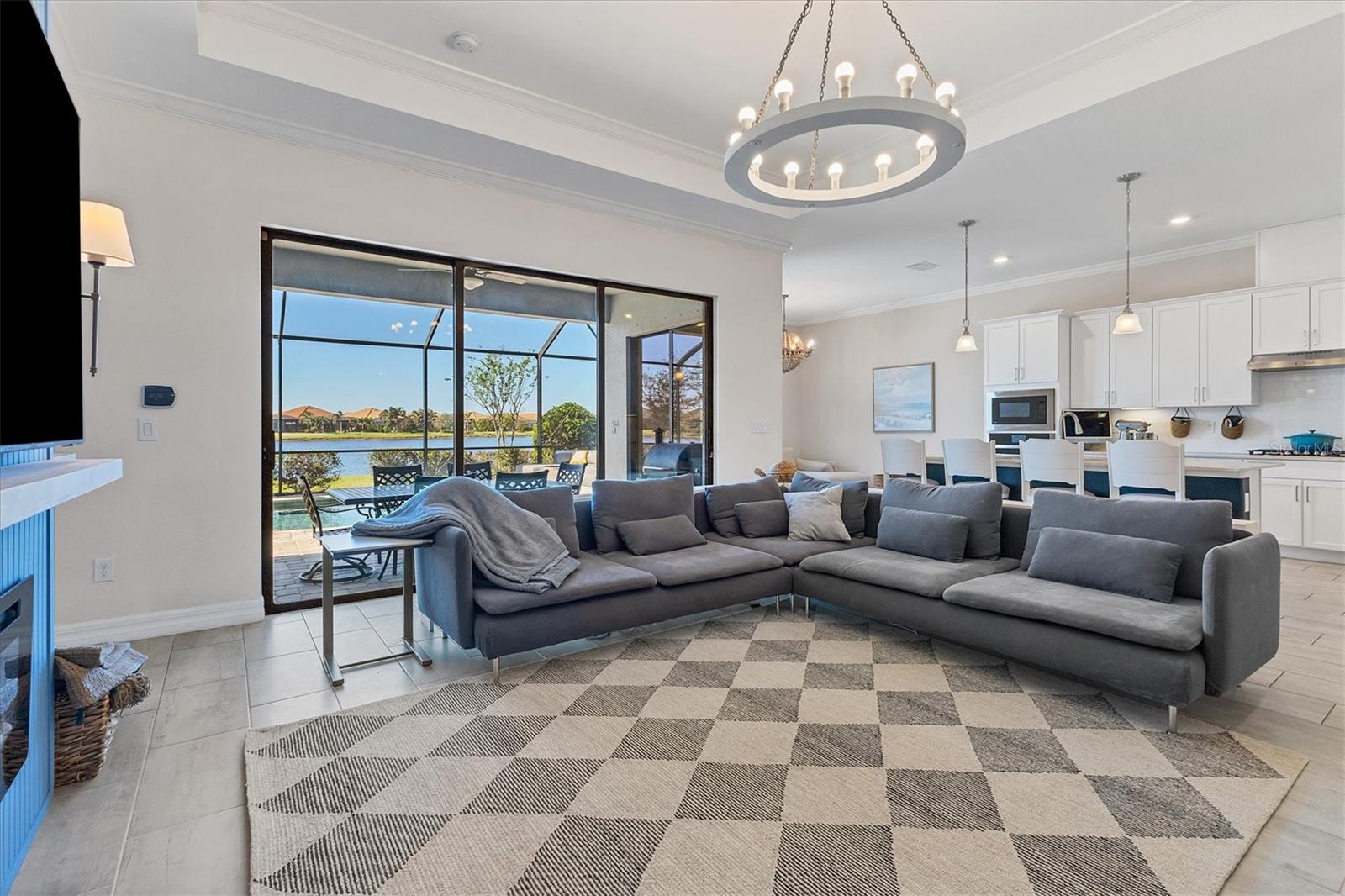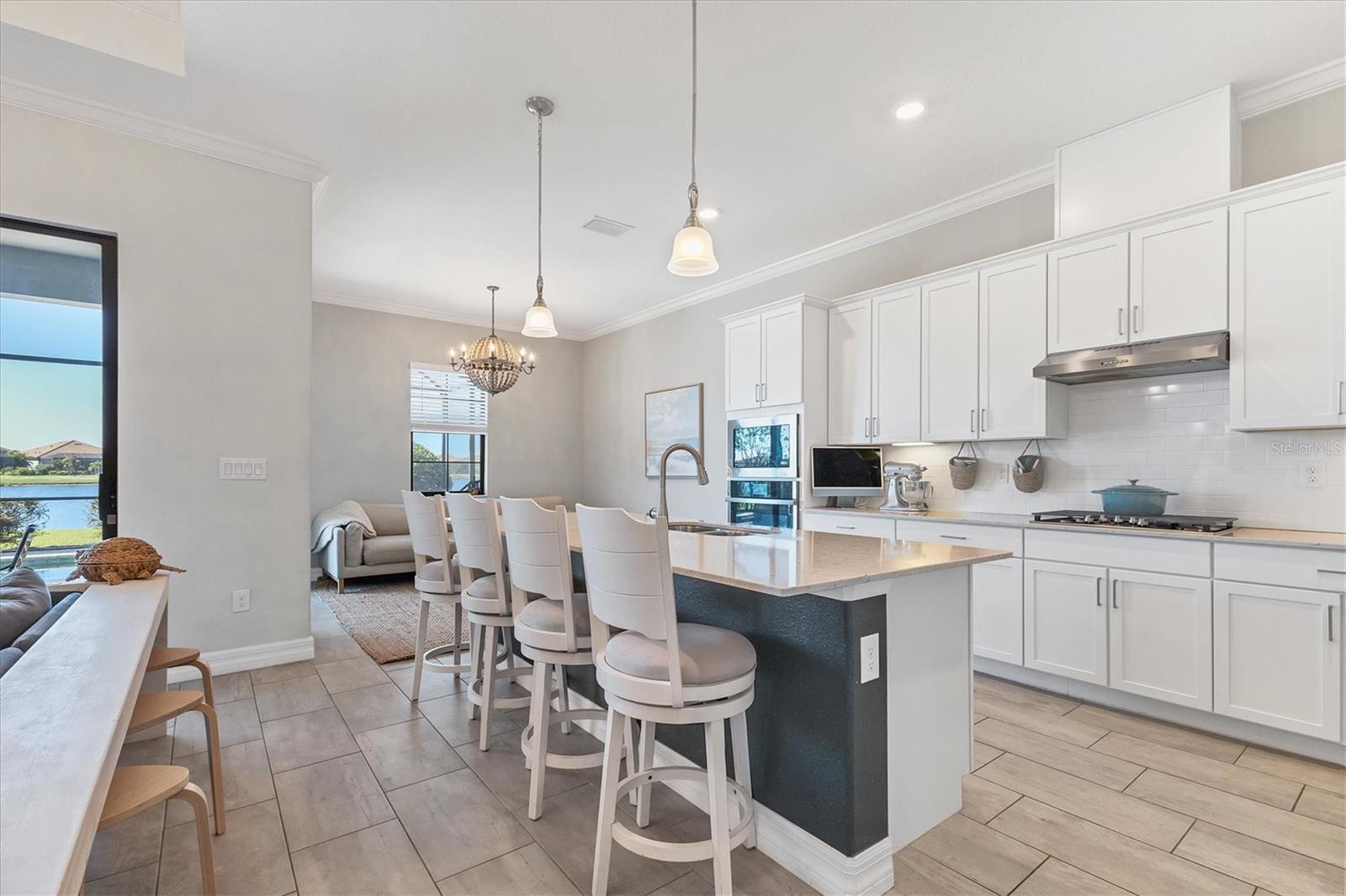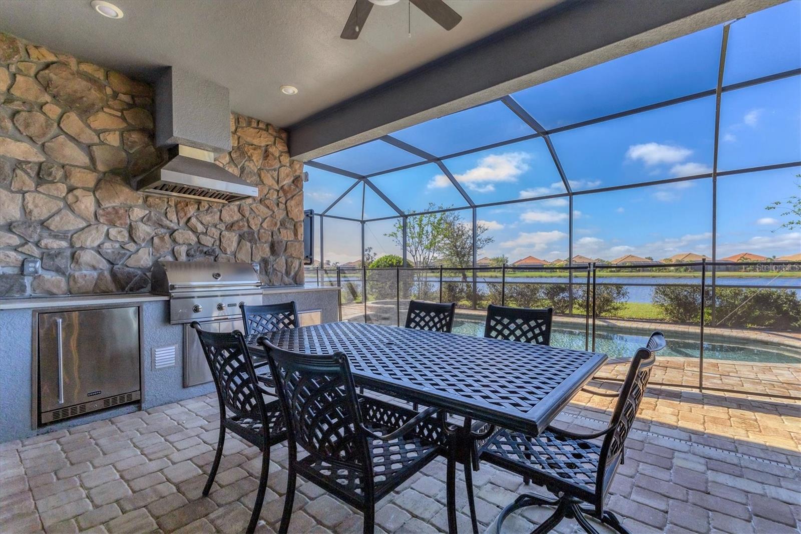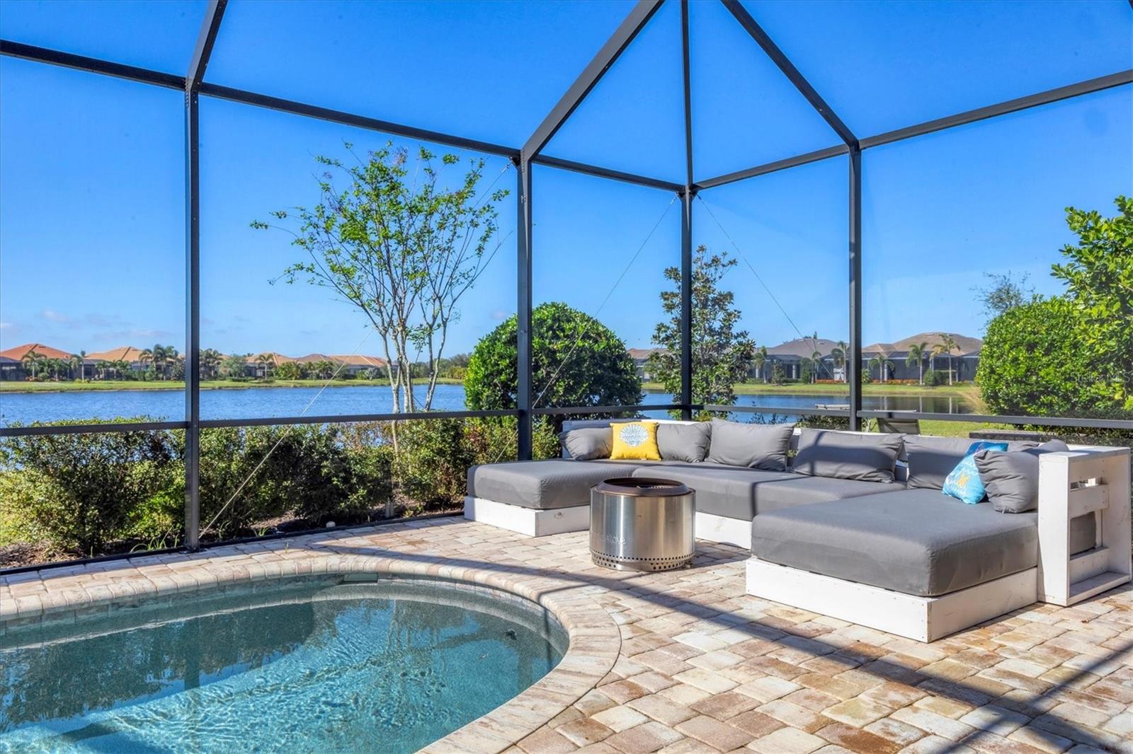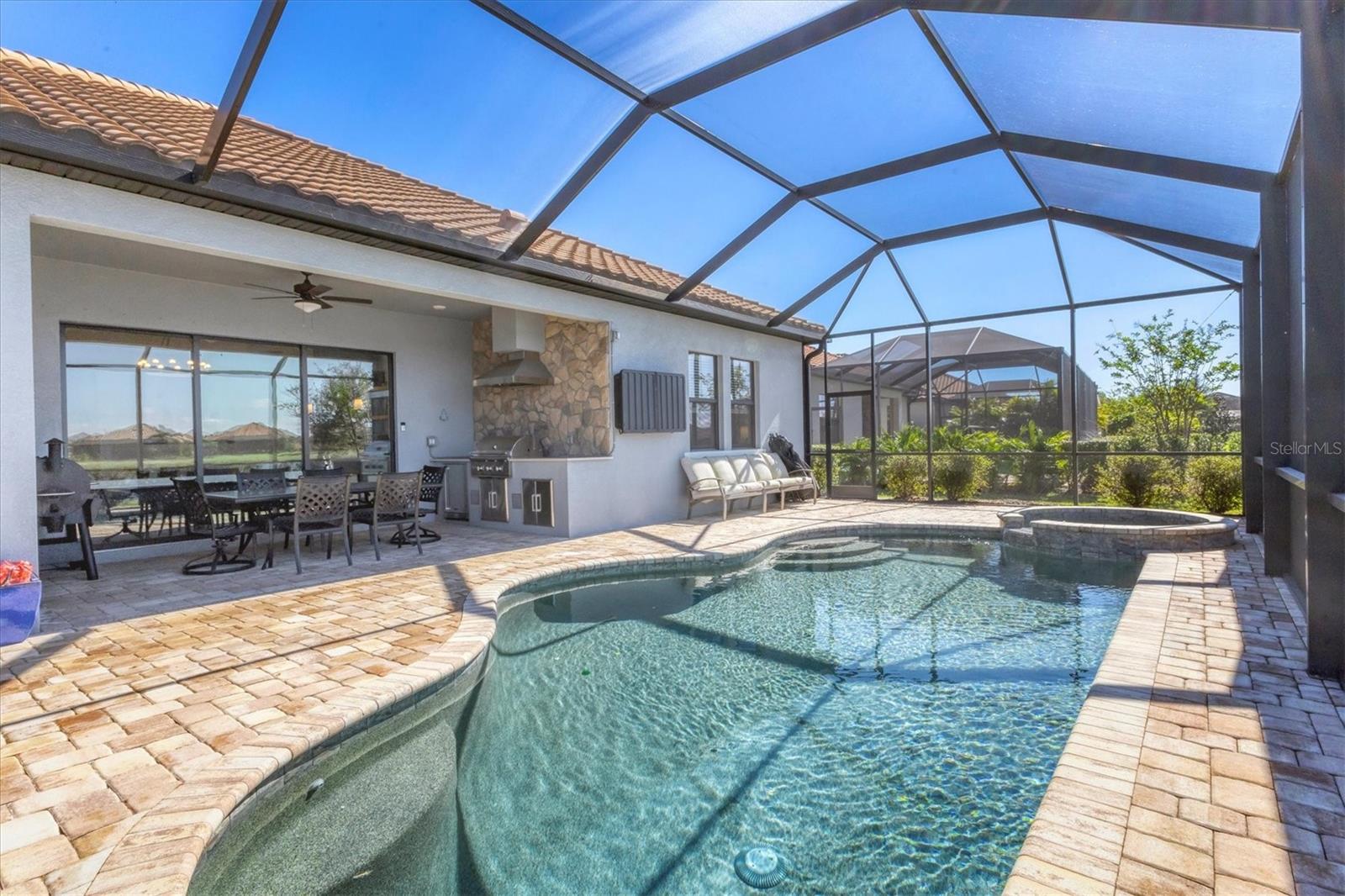 Welcome Home! Stunning 4-bedroom, 3-full bathroom home in Country Club East of Lakewood Ranch, this thoughtful design combines modern elegance with comfort. The heart of the home features a gourmet kitchen with high-end finishes, an expansive island, breakfast nook and upgraded appliances all open to the family room and dining area. Flex space off kitchen for potential office or additional living area. The primary suite boasts a spacious walk-in closet, spa-like bathroom featuring a sleek glass-enclosed, tile walk-in shower, a luxurious soaking tub, and dual vanities all with direct access to laundry room truly designed for both style and functionality. Enjoy your private oasis with a sparkling inground pool and spa, fully equipped outdoor kitchen, and spectacular views ideal for entertaining year-round. Impact windows, crown molding. Country Club East residents have access to exceptional amenities including pools, a state-of-the-art fitness center, game room, dog park, and more! If you love golf, this neighbor is home to Royal Lakes one of 4 pristine golf courses you can play as a member of The Lakewood Ranch Golf & Country Club. Membership is optional. Located near The Mall at University Town Center, top-rated schools, hospitals, and business hubs, and just a short drive from pristine Gulf Coast beaches, this home perfectly captures the essence of the Florida lifestyle. Experience unmatched luxury and convenience.