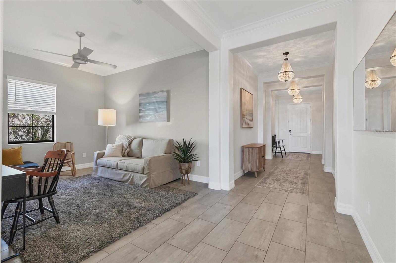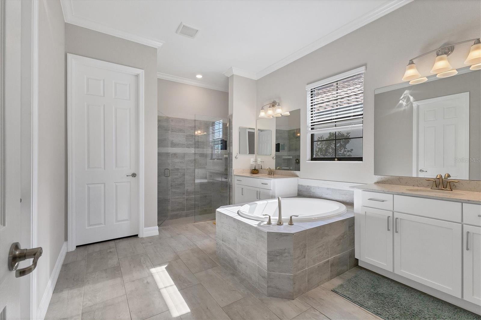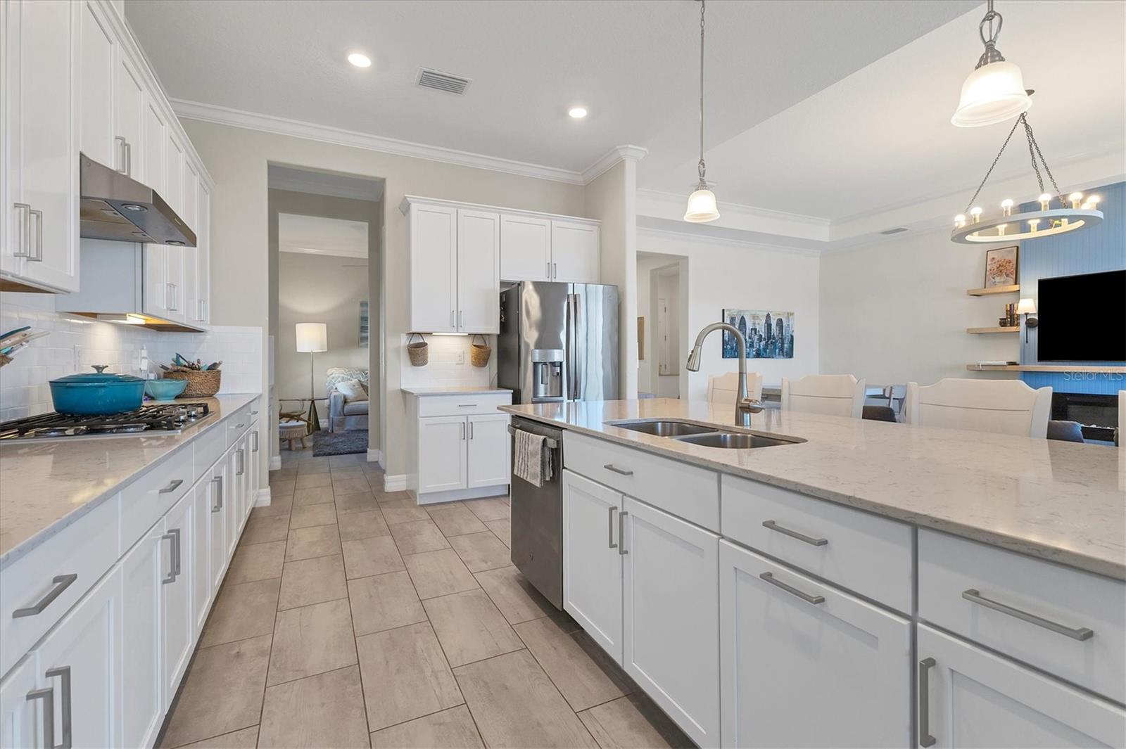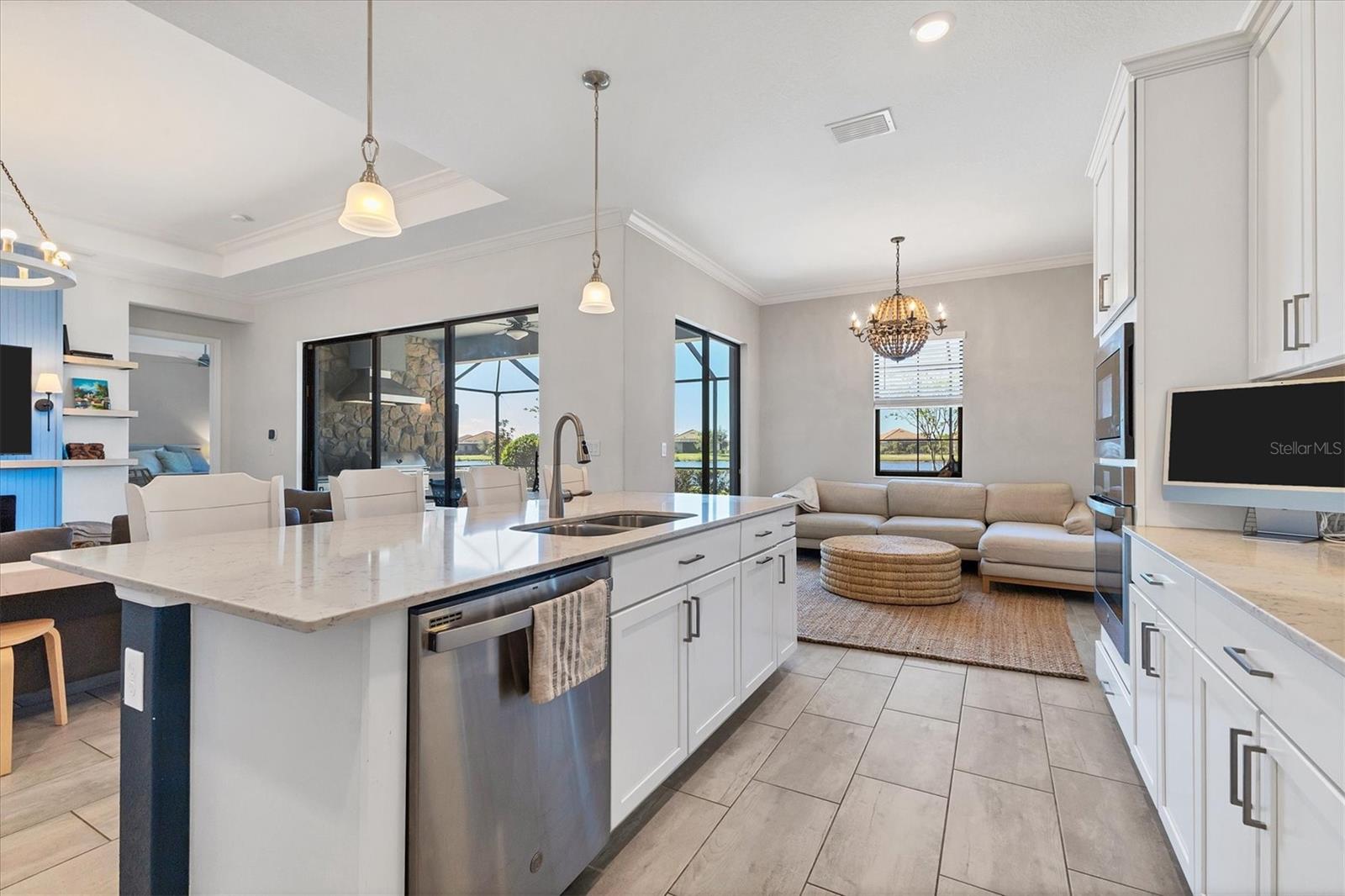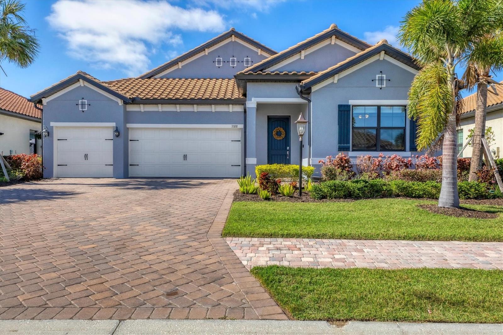 Welcome Home! Stunning 4-bedroom, 3-full bathroom home in Country Club East of Lakewood Ranch, this thoughtful design combines modern elegance with comfort. The heart of the home features a gourmet kitchen with high-end finishes, an expansive island, breakfast nook and upgraded appliances all open to the family room and dining area. Flex space off kitchen for potential office or additional living area. The primary suite boasts a spacious walk-in closet, spa-like bathroom featuring a sleek glass-enclosed, tile walk-in shower, a luxurious soaking tub, and dual vanities all with direct access to laundry room truly designed for both style and functionality. Enjoy your private oasis with a sparkling inground pool and spa, fully equipped outdoor kitchen, and spectacular views ideal for entertaining year-round. Impact windows, crown molding. Country Club East residents have access to exceptional amenities including pools, a state-of-the-art fitness center, game room, dog park, and more! If you love golf, this neighbor is home to Royal Lakes one of 4 pristine golf courses you can play as a member of The Lakewood Ranch Golf & Country Club. Membership is optional. Located near The Mall at University Town Center, top-rated schools, hospitals, and business hubs, and just a short drive from pristine Gulf Coast beaches, this home perfectly captures the essence of the Florida lifestyle. Experience unmatched luxury and convenience.