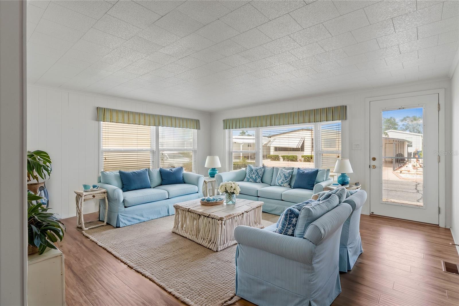 One or more photo(s) has been virtually staged. Welcome to your own slice of paradise! This spacious 3-bedroom, 2-bathroom home in Palma Sola Shores offers a serence escape. Relax in your spacious, private backyard, a rare gem in this community. Surrounded by lush landscaping and a newly brick-paved patio, you can sip your morning coffee or unwind with evening drinks enjoying the tranquil ambiance. The community also offers a private dock with kayak life, a clubhouse, and a refreshing pool. After you come home utilize the outdoor shower to rinse off before heading inside. Plus, with a low monthly HOA fee of only $275, you'll enjoy the benifits of water, Spectrun cable and internet, trash pick up twice a week, and recycle pick up once a week, as well as care of the common grounds. The clubhouse bathrooms were remodeled last summer, and the heated pool is the perfect place to gather with family and friends throughout the year. This is a LAND OWNED AND DEEDED COMMUNITY! The exterior of the home has been recently updated with new siding, a roof over, and stunning landscaping featuring new irrigation, rocks, and pavers. The 8x12 carport provides ample storage space, and the workshop/shed, complete with a sink, is perfect for DIY projects. The glassed-in lanai, with its new tile flooring, is an ideal spot for entertaining guests. The lanai closet conveniently houses the washer and dryer. Inside, you'll find plenty of storage, newer vinyl flooring, and updated subfloors. The home boasts front bay windows, new Levolor blinds, a 3-year-old kitchen appliance package, crown molding, and new flooring, tile, tub, and Kohler toilets in the bathrooms. The cedar closets offer additional storage space. This home is located in flood zone X and flood insurance is NOT required! NO FLOODING OR DAMAGES FROM 2024 HURRICANES. Don't miss this rare opportunity to own a piece of paradise in Palma Sola Shores!