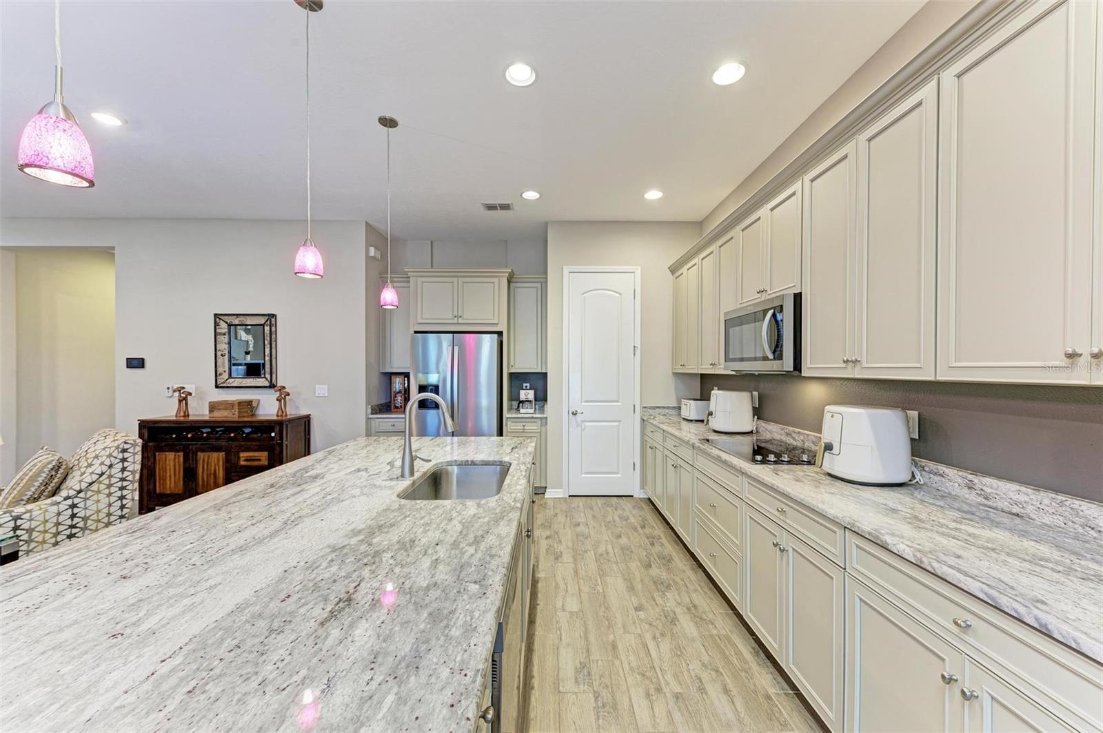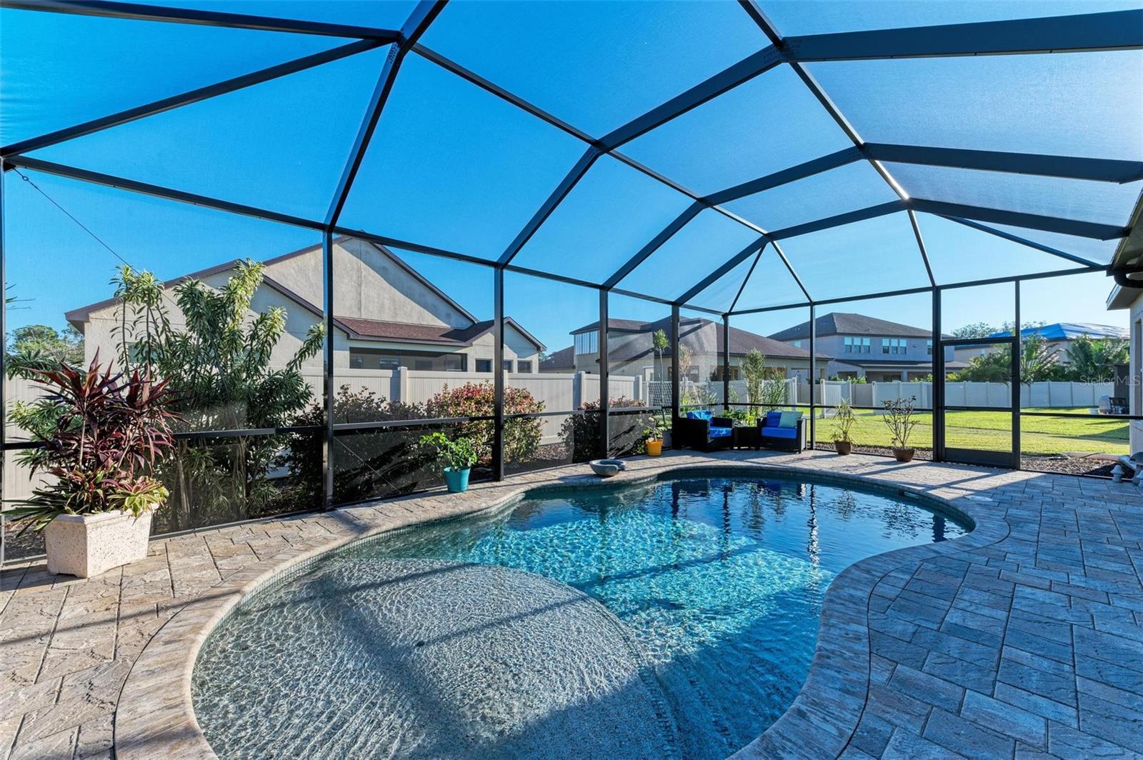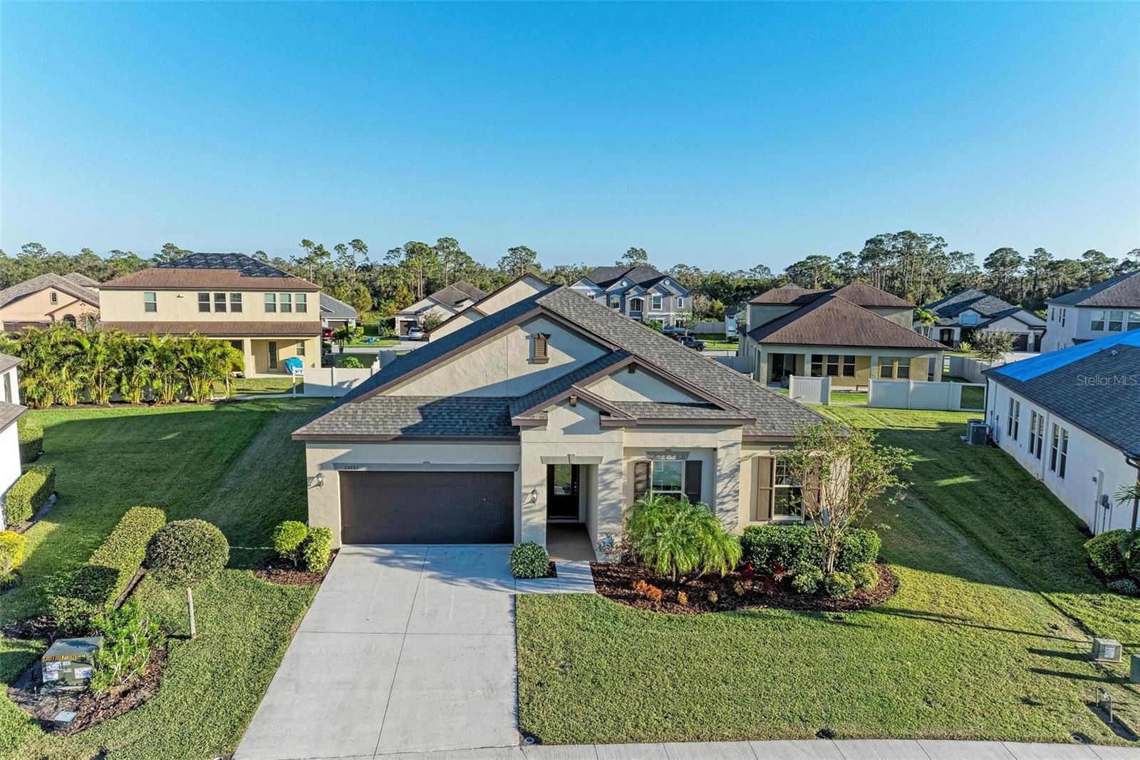 COMPARE THESE HOA FEES ONLY $172/mo - AND - NO CDD This small close-knit community surrounded by Lakewood Ranch. Don't be part of the mega communities where you don't know your neighbor. Discover serenity in this quiet neighborhood and lovingly maintained home in one of the most dynamic areas of Lakewood Ranch. Entering the home, be greeted by tasteful colors, upgraded wood-like tiles, premium granite counters throughout and volume ceilings with designer touches including trayed ceilings. Be beckoned to the great room featuring an open kitchen for easy entertaining during the holidays with access and views to the custom pool and very large, covered lanai. This kitchen is not the average kitchen. From the designer cabinet colors to the high quality stainless steel appliances including a double oven helping to get that feast out to the crowd, or the extended pantry for storage, this kitchen makes entertaining is a breeze. Relax outdoors under the covered lanai with beautiful pavers or take a dip in the pool with its sun-shelf. The area is already plumbed to add an outdoor kitchen providing more entertaining options. Retire to the primary bedroom which offers a secluded retreat from the rest of the world. Two walk in closets, including one cleverly accessing the laundry room can handle any wardrobe. The spa-like primary bath feels like a vacation resort hotel. The additional bedrooms are split from the master offering privacy. An office at the front of the house provides the perfect workspace, game room, or TV room. Have peace of mind knowing ROOF REPLACED 2022 with 160 MPH shingles and the home received no damage from the latest hurricanes. Serenity Creek is a small close knit community with a community green offering family game nights, movie nights, food trucks and a lot more. NO CDD, LOW HOA The home is only minutes from Costco, soon to be completed Target and numerous restaurants and shopping options abound. Anna Maria Island, Siesta Key and the culturally significant downtown Sarasota are only a short drive away. Come see this perfect home in the perfect neighborhood.
