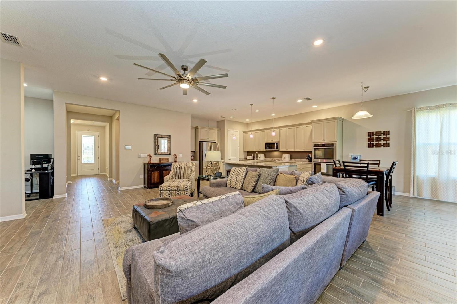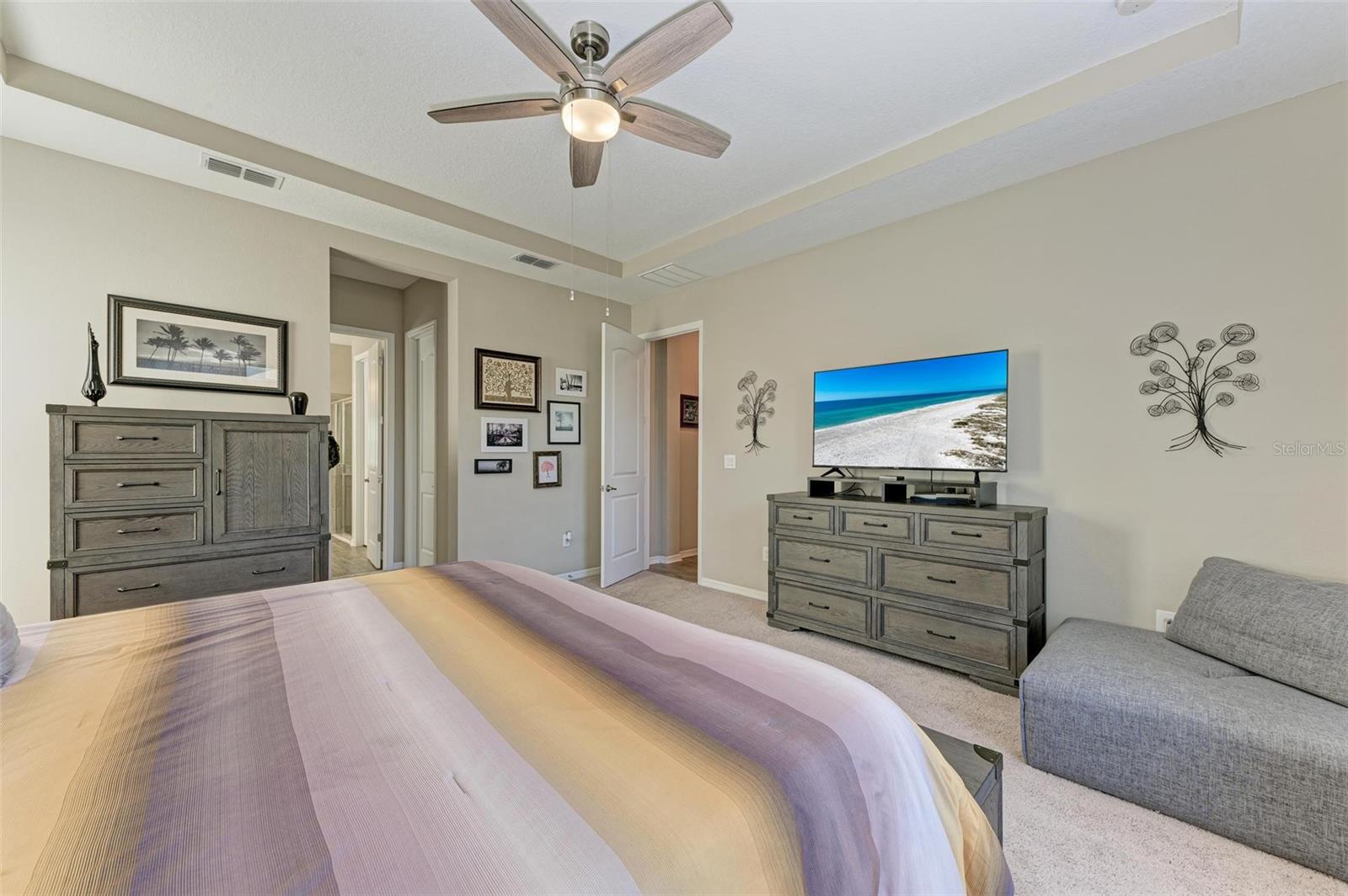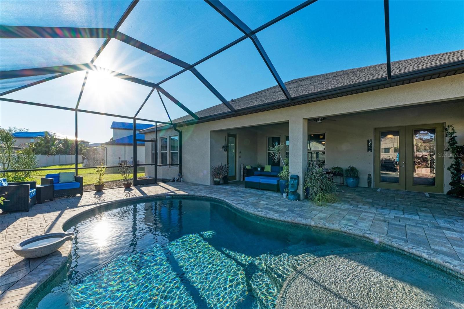 COMPARE THESE HOA FEES ONLY $172/mo - AND - NO CDD This small close-knit community surrounded by Lakewood Ranch. Don't be part of the mega communities where you don't know your neighbor. Discover serenity in this quiet neighborhood and lovingly maintained home in one of the most dynamic areas of Lakewood Ranch. Entering the home, be greeted by tasteful colors, upgraded wood-like tiles, premium granite counters throughout and volume ceilings with designer touches including trayed ceilings. Be beckoned to the great room featuring an open kitchen for easy entertaining during the holidays with access and views to the custom pool and very large, covered lanai. This kitchen is not the average kitchen. From the designer cabinet colors to the high quality stainless steel appliances including a double oven helping to get that feast out to the crowd, or the extended pantry for storage, this kitchen makes entertaining is a breeze. Relax outdoors under the covered lanai with beautiful pavers or take a dip in the pool with its sun-shelf. The area is already plumbed to add an outdoor kitchen providing more entertaining options. Retire to the primary bedroom which offers a secluded retreat from the rest of the world. Two walk in closets, including one cleverly accessing the laundry room can handle any wardrobe. The spa-like primary bath feels like a vacation resort hotel. The additional bedrooms are split from the master offering privacy. An office at the front of the house provides the perfect workspace, game room, or TV room. Have peace of mind knowing ROOF REPLACED 2022 with 160 MPH shingles and the home received no damage from the latest hurricanes. Serenity Creek is a small close knit community with a community green offering family game nights, movie nights, food trucks and a lot more. NO CDD, LOW HOA The home is only minutes from Costco, soon to be completed Target and numerous restaurants and shopping options abound. Anna Maria Island, Siesta Key and the culturally significant downtown Sarasota are only a short drive away. Come see this perfect home in the perfect neighborhood.