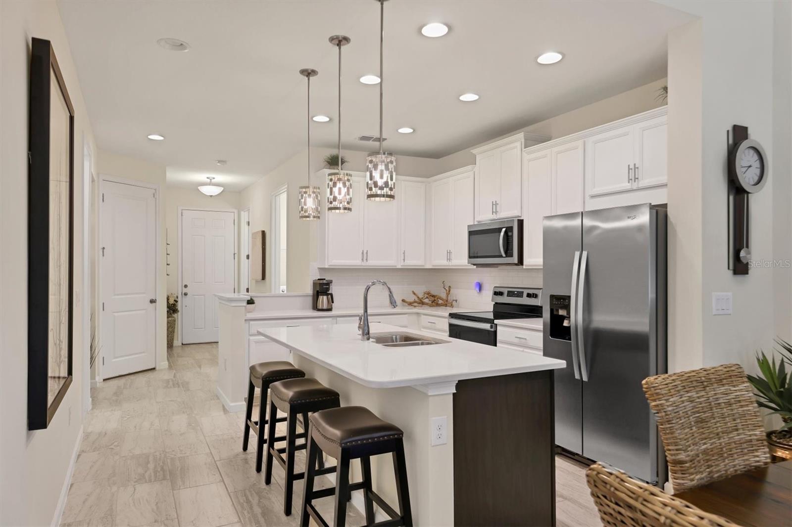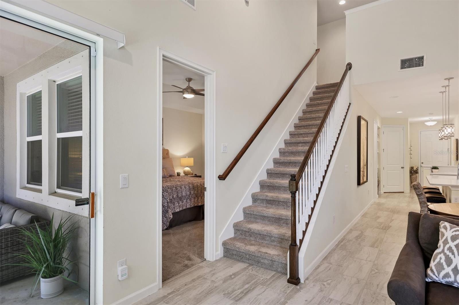 Spacious SANDBAR Floorplan with Pond and Wooded Views! This thoughtfully designed SANDBAR floorplan offers ample space for family living and entertaining. The primary bedroom, ensuite bath, and utility room are conveniently located downstairs, while the second floor features two additional bedrooms, a loft, and a bonus room (perfect for a playroom, home office, or media space). Notable Upgrades: The seller has added a beautiful glass insert to the front door, inviting natural light into the home, and enclosed the rear lanai to enhance outdoor living. With the exception of a few personal items and select artwork, the seller is open to selling the home fully furnished as shown. Community Highlights: Located in the highly desirable Harmony at Lakewood Ranch, this townhome provides access to top-rated schools and a calendar full of multi-generational community events. Enjoy resort-style amenities, including a pool, clubhouse, and fitness center, offering a maintenance-free, coastal-inspired lifestyle. Location and Lifestyle: Perfectly positioned with tranquil pond views and a private wooded backdrop, this home offers peace and serenity while being part of the vibrant Lakewood Ranch community. Don’t miss this opportunity to own a spacious, well-appointed townhome in one of the area’s most sought-after communities. Schedule your showing today!