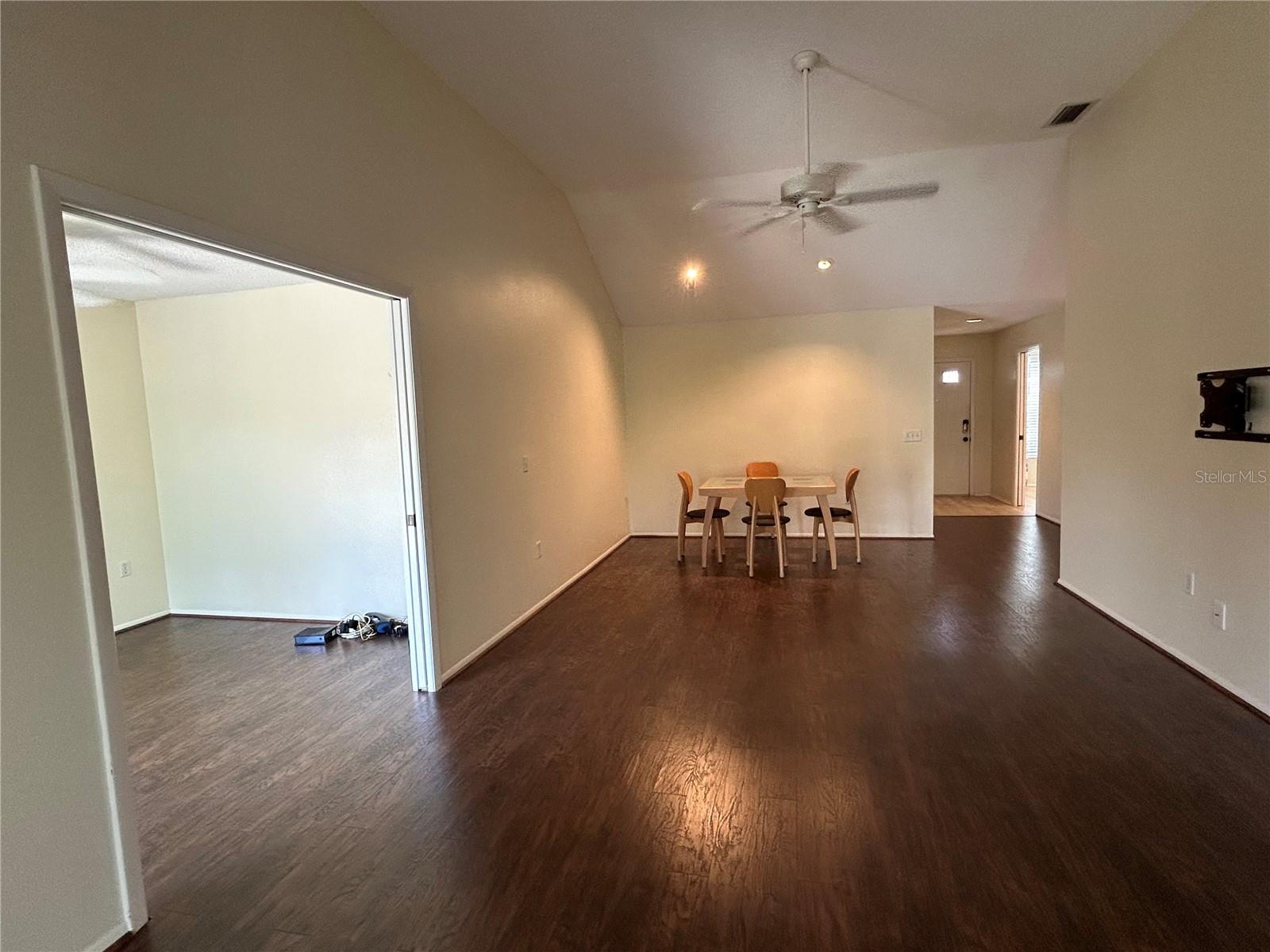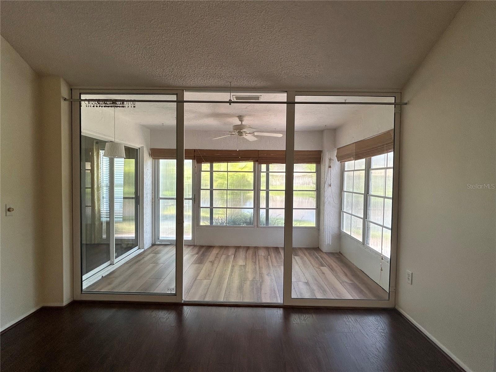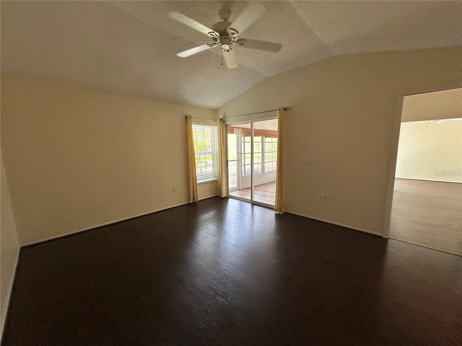 Lakefront condo in Sounthwinds at Five Lakes! This spacious villa gives you the feeling of a free standing home with two car garage even though a shared wall with neighbor, no one living above. Split bedroom floor plan layout with huge great room, vaulted ceiling with recessed lighting in living and dining area of this spacious 2 bedroom, 2 bath +den and Florida room. Lots of natural light. Upgraded eat-in kitchen cabinets, counter tops (2022) and stainless steel appliances. Master suite complete with walk-in closet, en suite with upgraded cabinet/vanity and counter top, dual sinks and shower. Bonus room off of living room with pocket doors for privacy and could easily be used as an office/den or for guest to sleep. Rear papered patio with lake view and papered front courtyard. AC (2022). New wind rated garage door 8/2024. PGT hurricane windows throughout villa with exception of sliders at Florida room which has removable shutters. You are allowed 1 pet 20# or less and annual rental allowed. Enjoy the community pool, tennis courts and clubhouse. Gulf beaches are 15 minutes away and minutes to restaurants, shopping, public transportation.