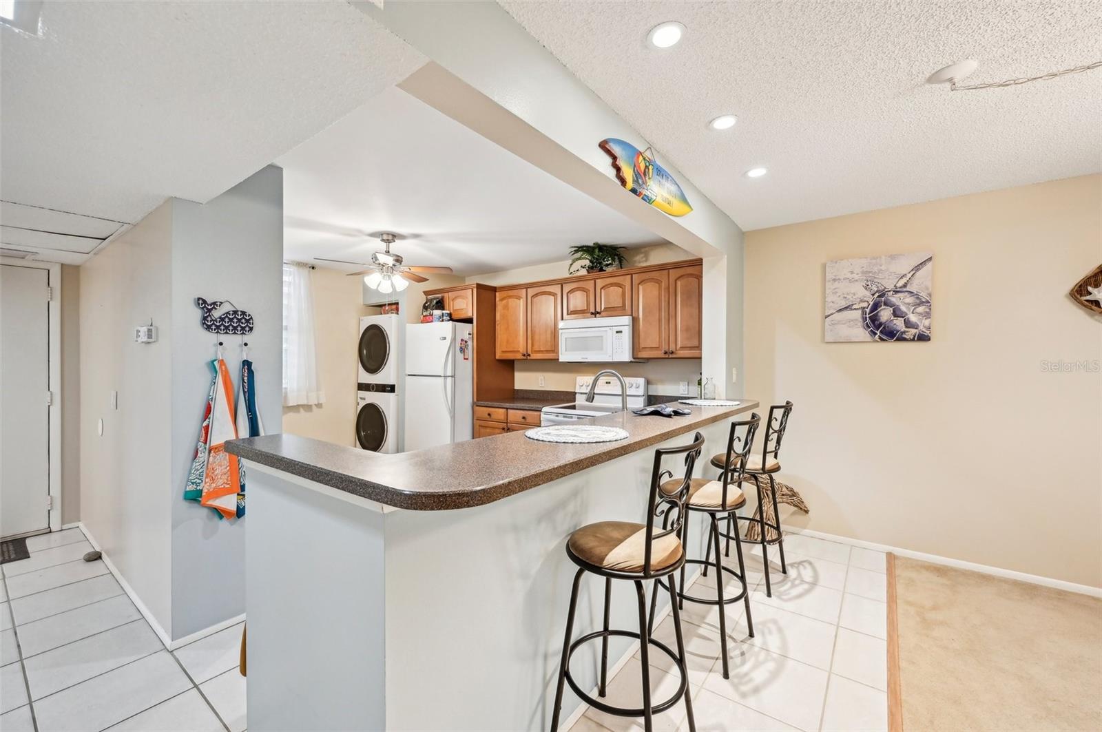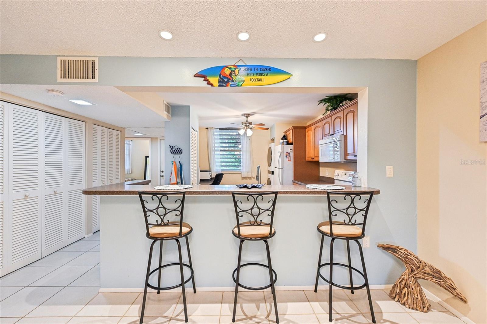 This condo is a beautiful bird sanctuary. This 2 bed, 2 bath second floor condo has an open concept with an attached lanai, filled with wall to wall windows. It offers a large master bedroom and ensuite with plenty of closet space. The second bedroom is also big with a nice size walk in closet and an adjacent bathroom. The kitchen has been updated and offers a big washer/dryer combo along with a desk area and two pantry areas. The Condo Fee covers the water bill, cable tv, and internet for all of your wifi needs. Wildwood springs is situated in a great location close to Manatee and Sarasota area beaches such as: Siesta Key, Lido, Coquina, and Anna Maria. When you don't want to enjoy one of the many beaches, you can stay home and enjoy 1 of 7 pools in the community. You can also enjoy a game of tennis or pickleball right across from your unit. This wonderful wildlife sanctuary is right off the main strip that has every type of store you need and want. Within walking distance is Publix, and many shops and restaurants. Living near north Sarasota, you have the convenience of traveling out of Sarasota/Bradenton airport which is a quick drive to make travel less stressful.