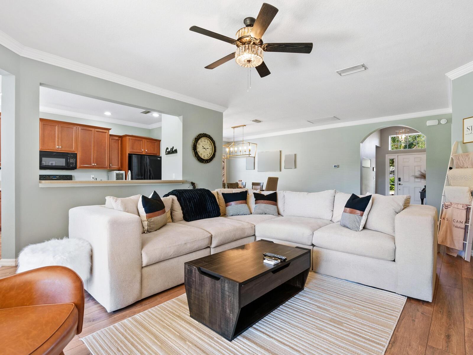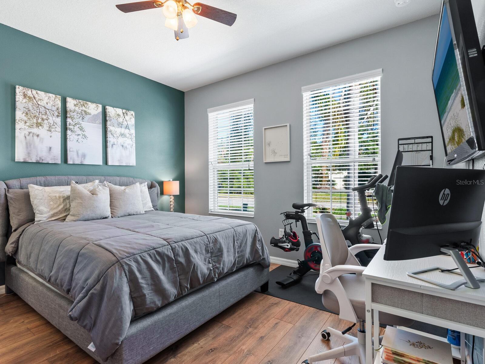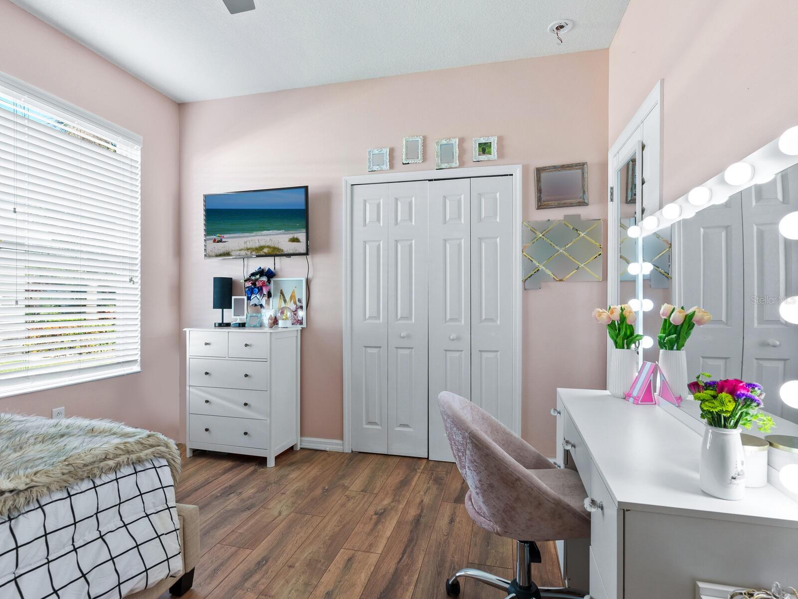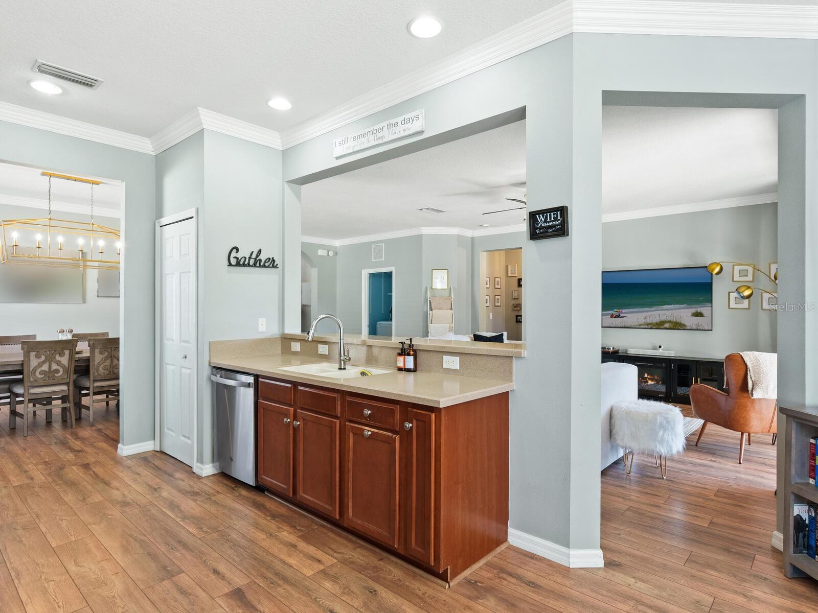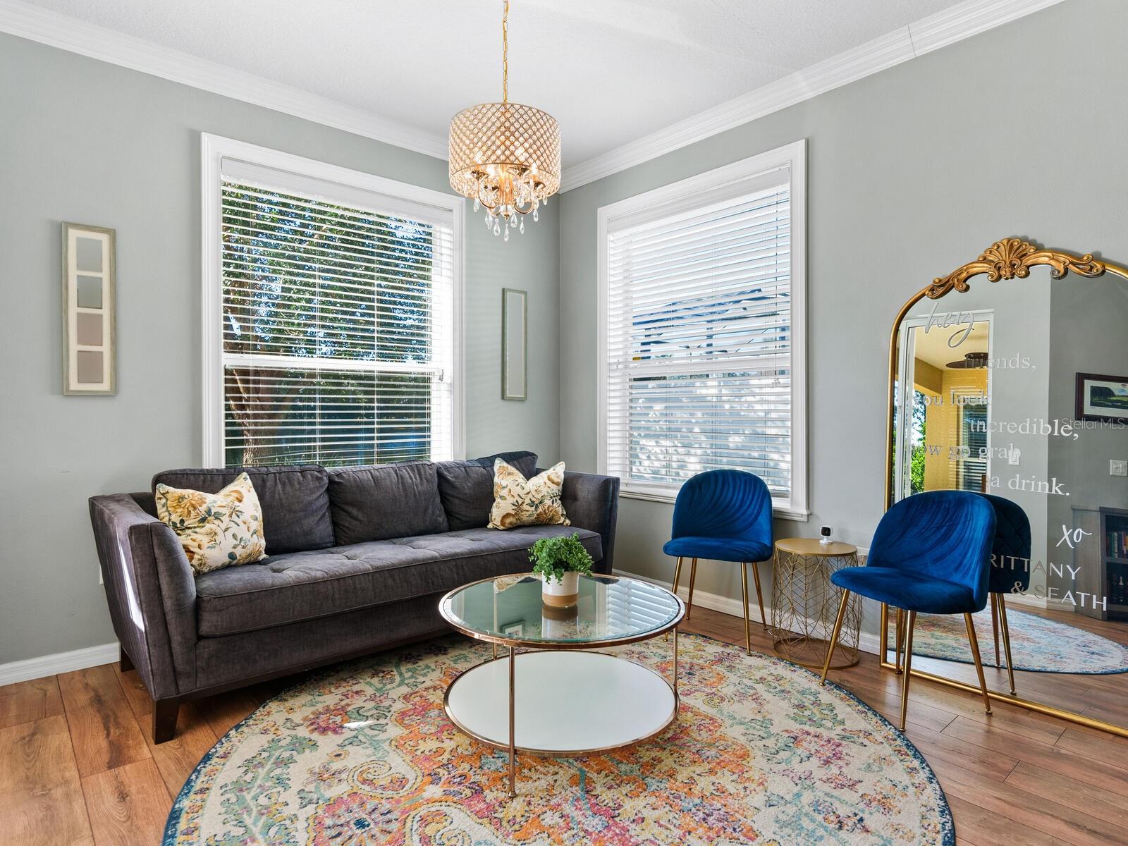 Located near the heart of Lakewood Ranch, this sought-after home in The Reserve at Crossing Creek is thoughtfully crafted for effortless living. Boasting an open and inviting split-floor plan, the residence encompasses 2,052 sq. ft. with 3 spacious bedrooms and 2 well-appointed bathrooms, offering a perfect blend of comfort and style. A true gem, this casually elegant home combines comfort, convenience and livability. A lovely pond view in back and no neighboring house views in front provide added privacy. In a quiet cul-de-sac setting, sidewalks and street lights give the neighborhood a welcoming feel. Enter through a gallery-style foyer with a transom window and arched doorway, where high ceilings enhance the great room and formal dining room. The adjacent kitchen offers a sit-down barstool counter area, Corian counters, European style wood cabinetry, and a pantry. In the extended kitchen is a sunny breakfast café with glass sliders opening to a covered lanai, perfect for relaxing and enjoying incredible weather year-round. Separated from the other bedrooms, the secluded primary suite is wonderful with 2 roomy walk-in closets, a generous glass shower, dual sink vanity and garden tub. Other highlights are gorgeous hybird floors throughout, a laundry room, a 2-car garage with epoxy finished floor, a newer shingle roof in 2021, hurricane shutters, custom trim window molding, recessed can lighting, crown molding, blinds, ceiling fans, and new fixtures. Just a mile from your front door is Creekwood Park with one of the largest dog parks in the county, an expansive grassy area, picnic facilities, a gazebo and plenty of nature trails. This home is ideally located near several golf courses, the UTC Mall, and I-75, offering convenience for shopping, commuting, and recreation. Nearby amenities include Creekwood Crossing Shopping Center, the revitalized downtown Bradenton area, and the esteemed IMG Sports Academy. The property is also in close proximity to three major hospitals and airports, including SRQ and Tampa International Airport, ensuring accessibility for both local and out-of-town needs. For sports enthusiasts, there are numerous golf, tennis, and pickleball club options nearby. Just a short drive away, you’ll find a variety of recreational attractions, arts and cultural venues, and the stunning white-sand beaches that line Florida’s beautiful coast. Built in 2008 by Centex Homes, the company has been dedicated to quality in home building for over 70 years and strives to exceed customer expectations each and every time. Immerse yourself in a beautifully crafted treasure meant to be enjoyed for years to come.