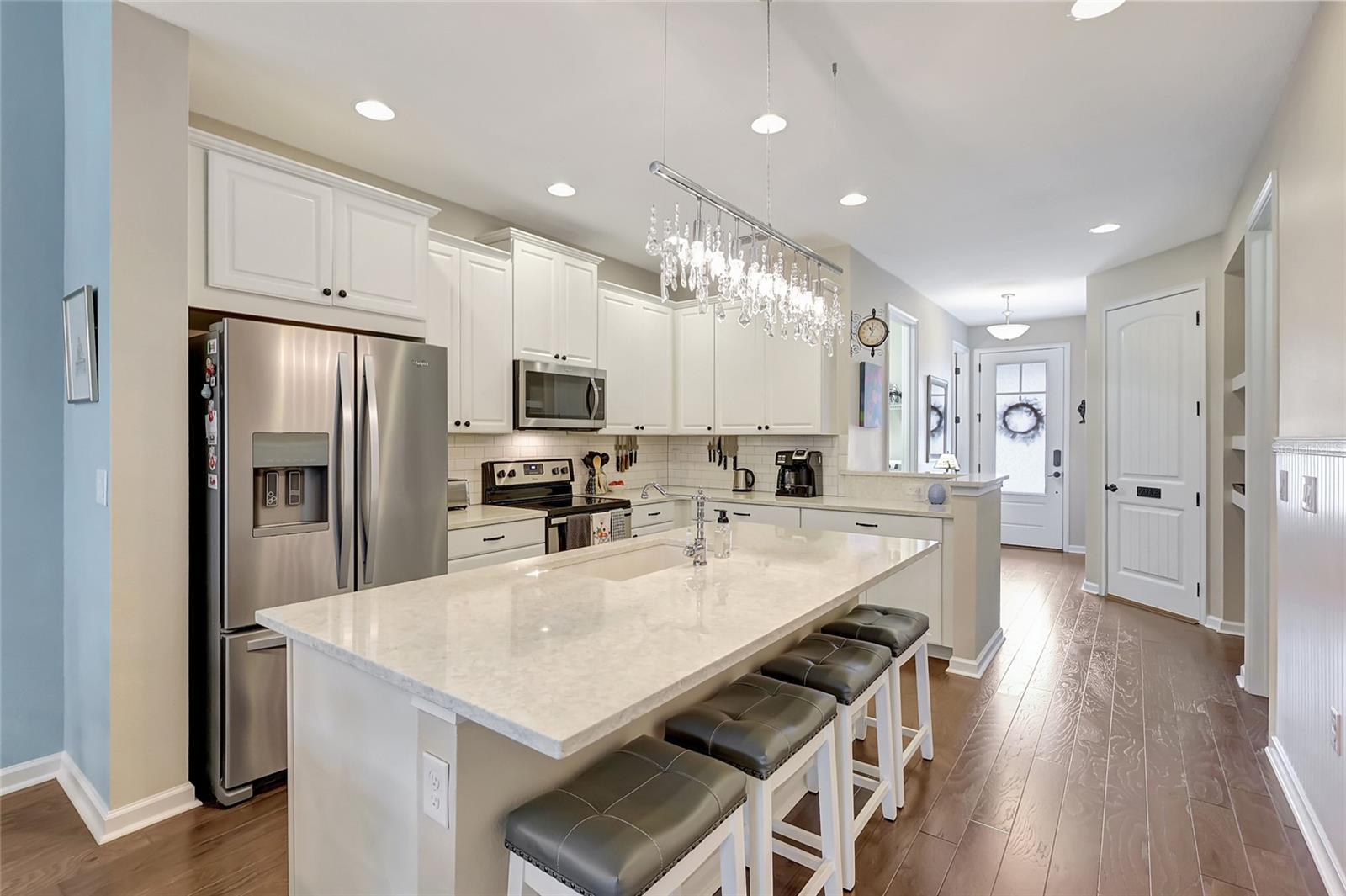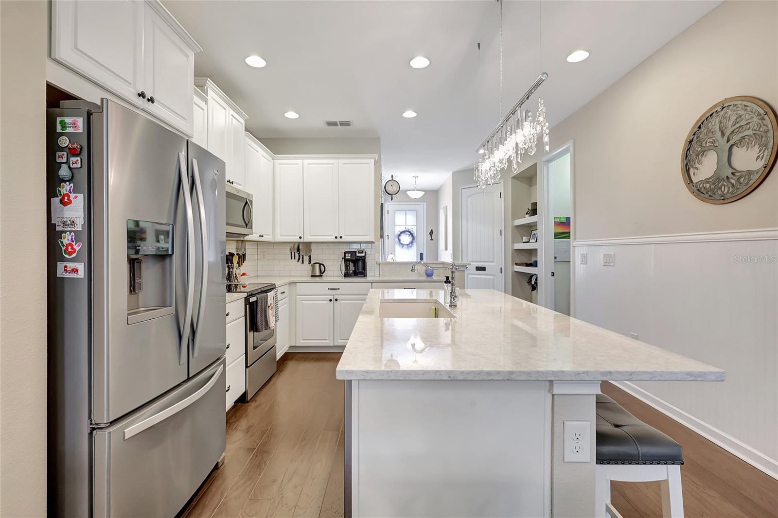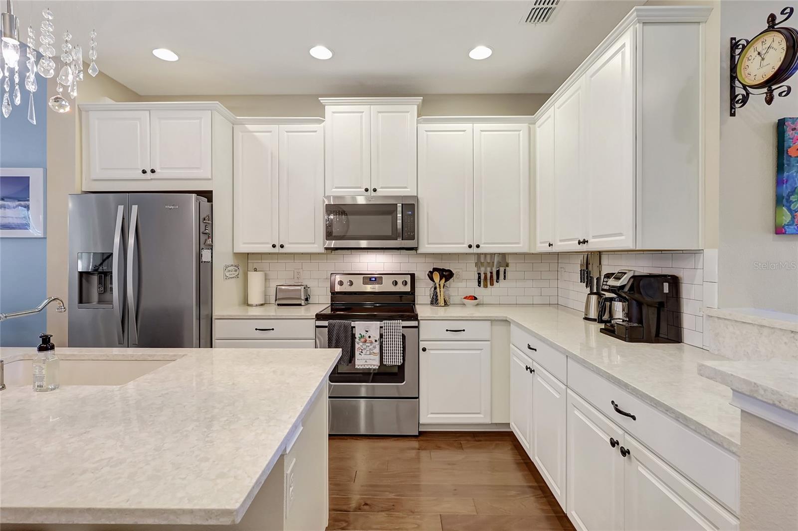 NEW Roof, NO Flooding! Welcome to this Owners’ suite downstairs stunning 3-bedroom, 2.5-bath townhouse located in the highly desirable Harmony community of Lakewood Ranch. This home offers a thoughtfully designed layout with a convenient main-level owner’s suite featuring a tray ceiling, a charming shiplap accent wall, and a luxurious en-suite bath with double vanity sinks, a walk-in shower with a built-in seat, and a spacious walk-in closet. The light and bright kitchen is a chef’s dream, showcasing quartz countertops, a subway tile backsplash, sleek 42" cabinets, and a spectacular chandelier that adds a touch of elegance. The double-car garage is both practical and stylish, complete with epoxy flooring and a clever barn door to conceal the water heater. Outdoors, enjoy the Florida sunshine, with pavers on the driveway, entryway, and back lanai, perfect for relaxing or entertaining. This low-maintenance property includes lawn care in the monthly fees, allowing you to fully embrace the resort-style amenities Harmony has, including a fitness center, lap pool, playground, community center, and BBQ area. With a brand-new roof installed in January 2025, this home is move-in ready and waiting for you. Don’t miss the chance to call this beautiful townhouse your own. Schedule your private showing today!