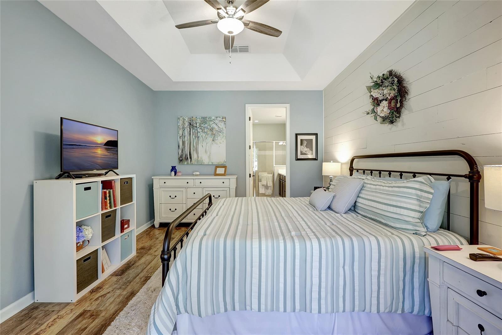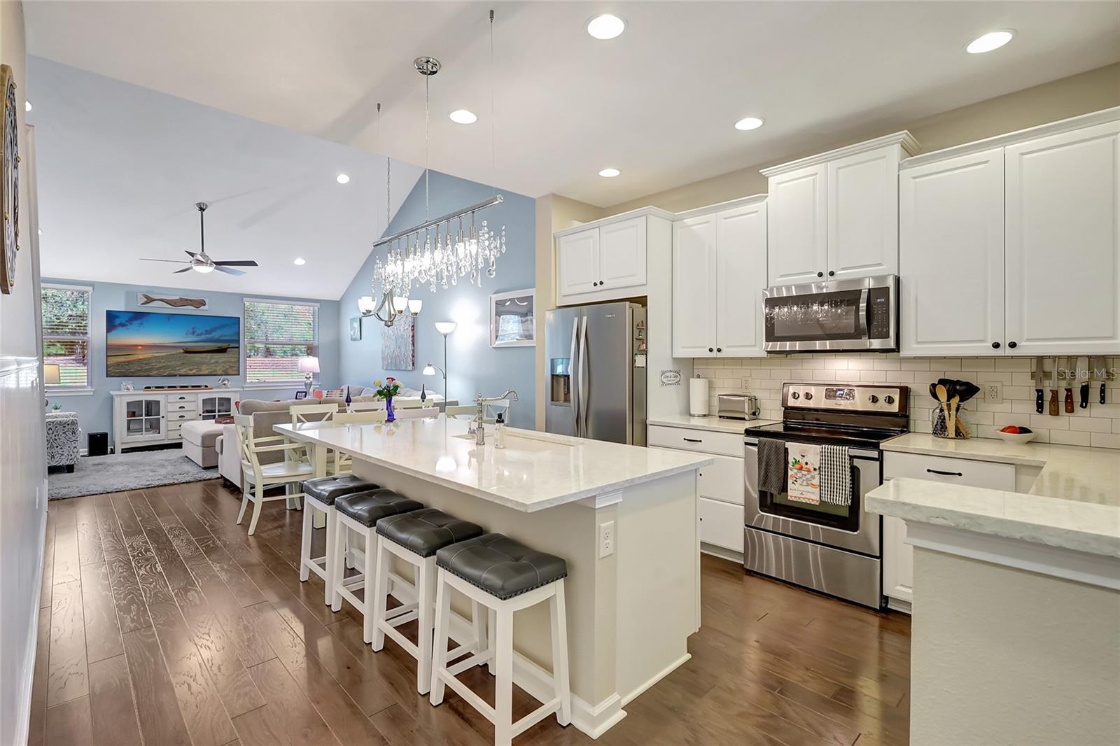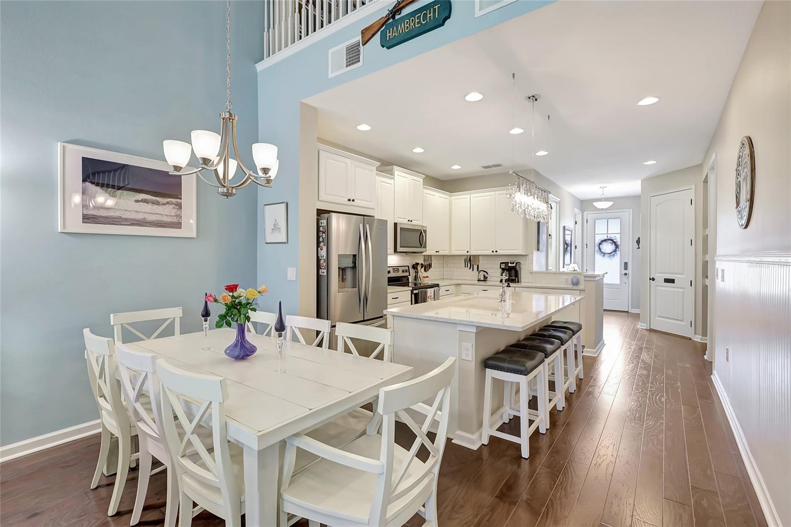NEW Roof, NO Flooding! Welcome to this Owners’ suite downstairs stunning 3-bedroom, 2.5-bath townhouse located in the highly desirable Harmony community of Lakewood Ranch. This home offers a thoughtfully designed layout with a convenient main-level owner’s suite featuring a tray ceiling, a charming shiplap accent wall, and a luxurious en-suite bath with double vanity sinks, a walk-in shower with a built-in seat, and a spacious walk-in closet. The light and bright kitchen is a chef’s dream, showcasing quartz countertops, a subway tile backsplash, sleek 42" cabinets, and a spectacular chandelier that adds a touch of elegance. The double-car garage is both practical and stylish, complete with epoxy flooring and a clever barn door to conceal the water heater. Outdoors, enjoy the Florida sunshine, with pavers on the driveway, entryway, and back lanai, perfect for relaxing or entertaining. This low-maintenance property includes lawn care in the monthly fees, allowing you to fully embrace the resort-style amenities Harmony has, including a fitness center, lap pool, playground, community center, and BBQ area. With a brand-new roof installed in January 2025, this home is move-in ready and waiting for you. Don’t miss the chance to call this beautiful townhouse your own. Schedule your private showing today!