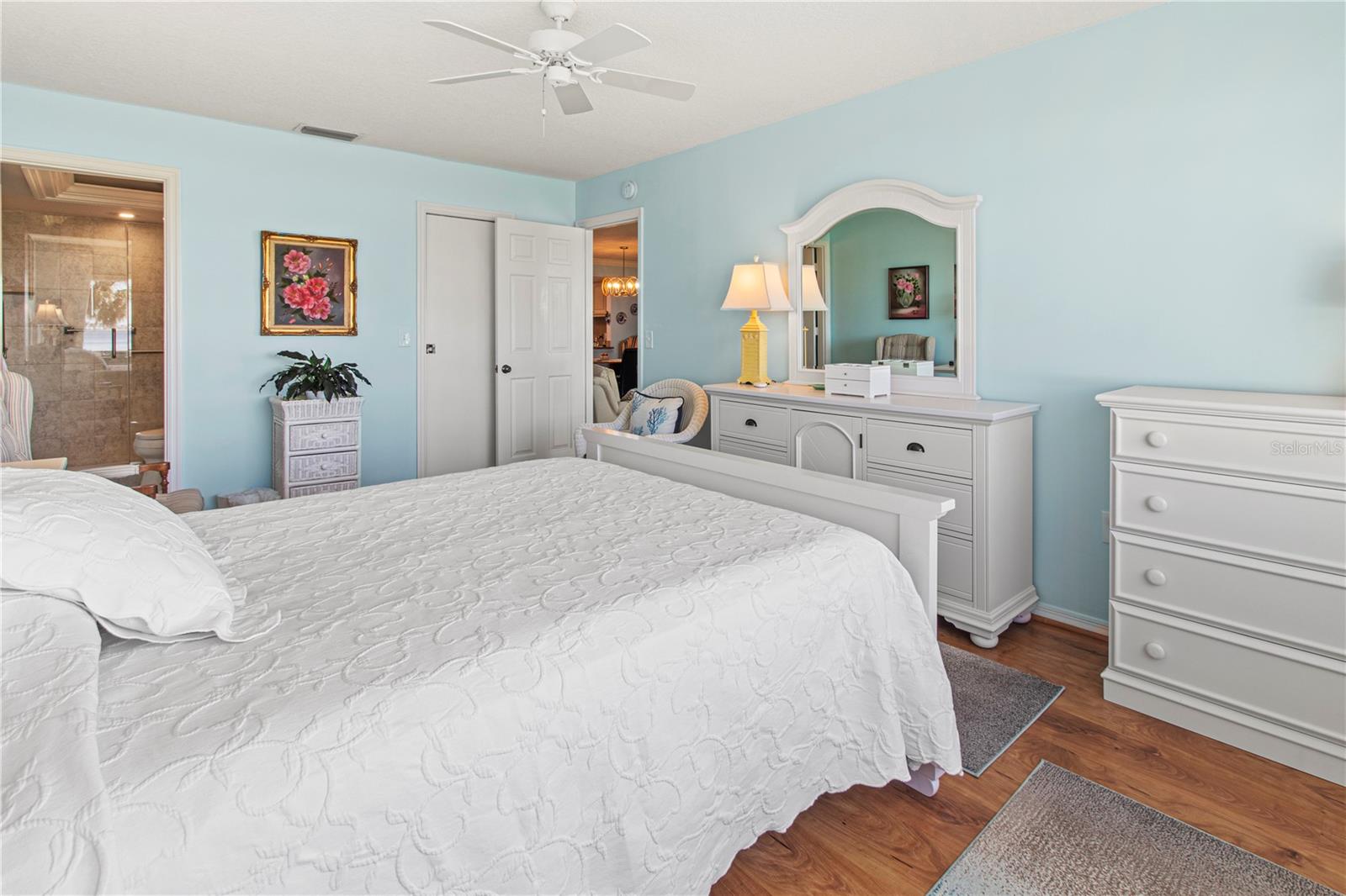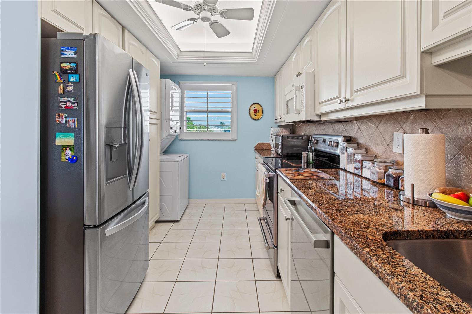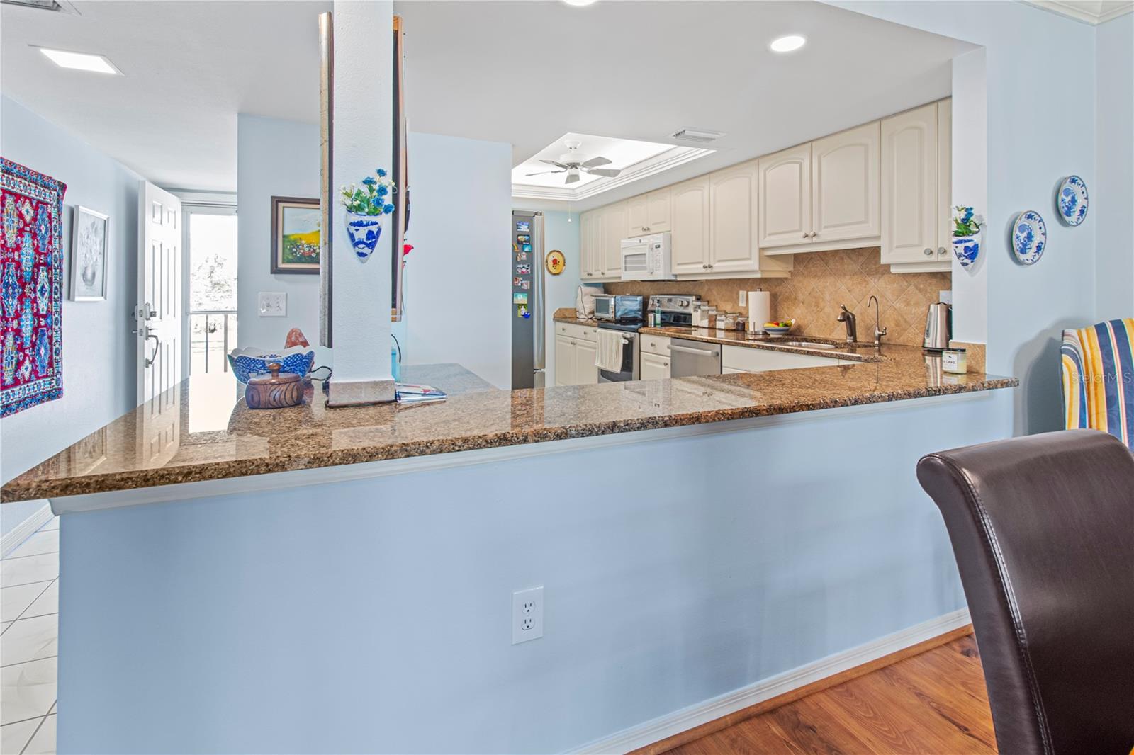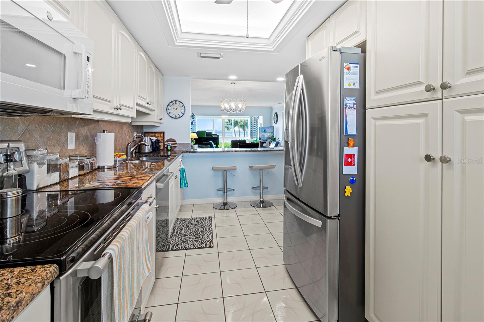 Stunning sunset views of Sarasota Bay and bird preserve from this top floor updated/remodeled condo! Located in Mount Vernon which boasts activities, clubs, boat docs, tennis, pickleball, walking paths, and more to keep you busy. This building has an elevator to make access easier. The kitchen has been updated and has all new appliances, slide out cabinet shelves, 2024 AC, 2021 Washer & Dryer & water heater, impact front door, impact windows, Hunter Douglas automatic blinds and electric hurricane shutters. This home has been updated and has it all. Short distance to the beautiful beaches of Anna Maria Island.