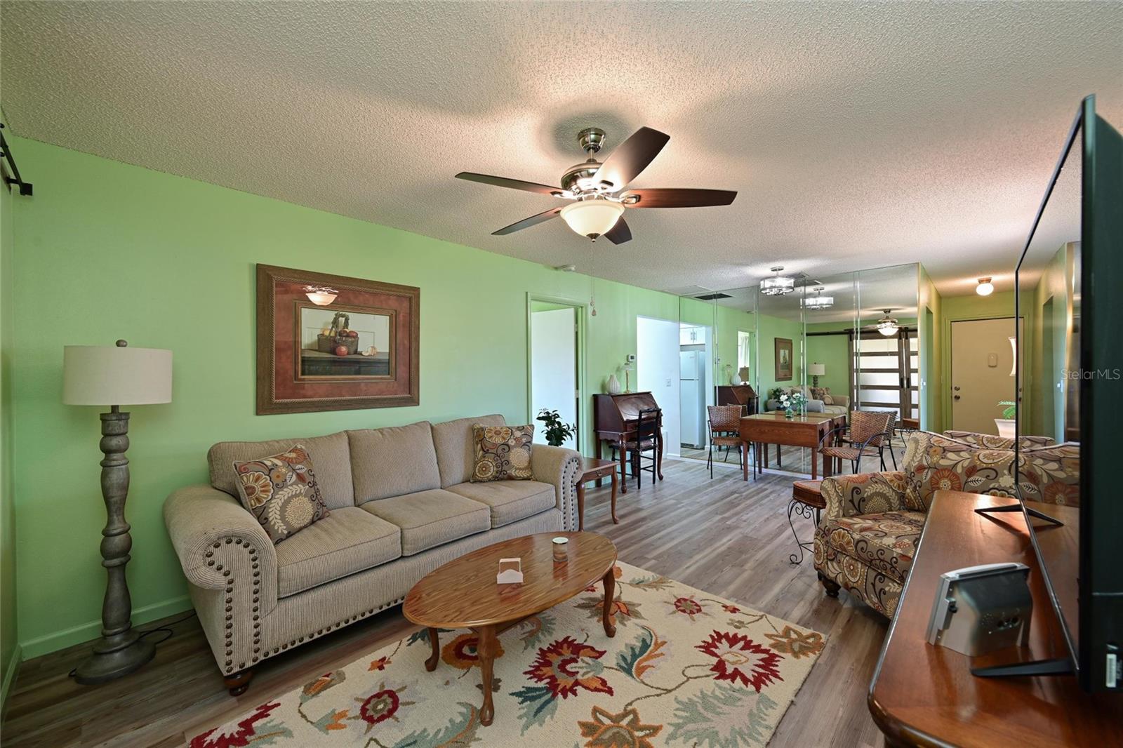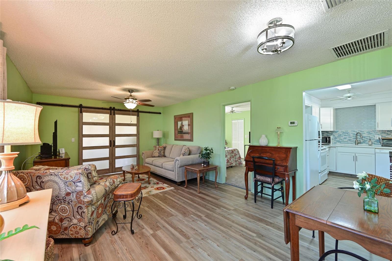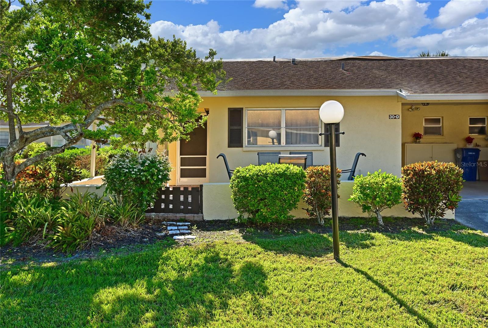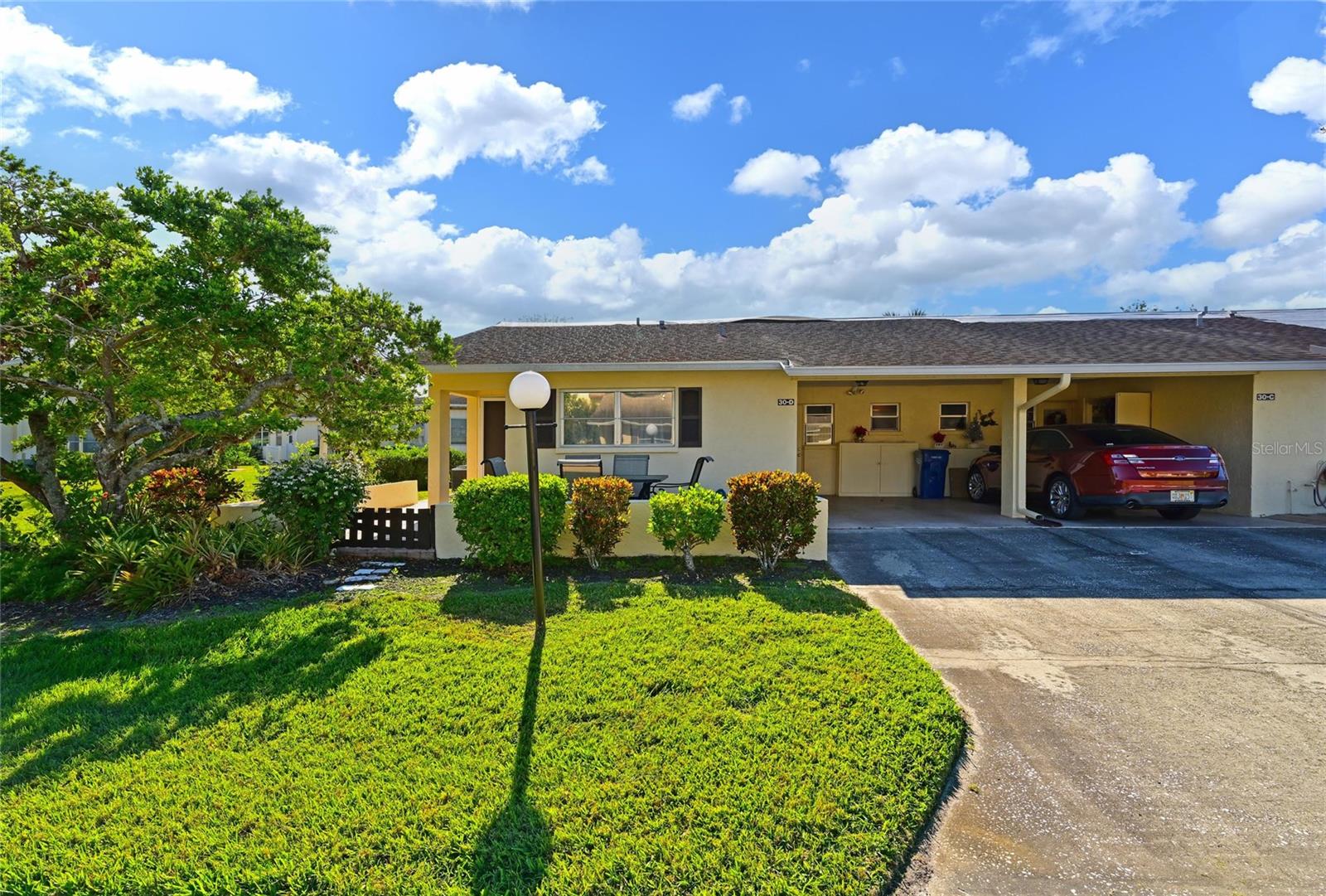 Immaculate Villa in the 55+ gated community of Desoto Square Villas. Wonderful updates in this home that include a remodeled kitchen and luxury vinyl flooring. The 2nd bath has a new vanity and mirror. Villa boasts New fans and lights and new carpet in bedrooms. AC 2021 and exterior of building recently painted. Community association takes care of Roofs, Water, Sewer, Trash and lawn care. Adorable 2 bedroom unit with enclosed lanai. Split floor plan with spacious great room with new sliding barn doors to the enclosed lanai. Small dinette space opens to living area just off the kitchen. Remodeled Kitchen features quartz countertops, popular shaker cabinets, like new appliances, trendy tile backsplash, and stainless hood over the range. Durable vinyl flooring throughout and new carpet in both bedrooms. Large covered carport with storage and laundry closet with washer and dryer that will stay. Master bedroom is oversized with a walk in closet with en-suite bath and linen closet. Great community amenities like Clubhouse, Heated Community Pool, Pickleball/Tennis Courts, Fitness center, and 24/7 gated community. Lots of fun activities such as Water Aerobics, Tai Chi, Book Club, and Pickleball/Tennis groups. Great location for shopping! Target, TJMaxx, Publix, restaurants just minutes away! SRQ airport & beaches all located within a short distance. This is a 55+ no pet community (only ESA or certified service animals allowed) and one owner must have a 700+ credit score required by HOA for purchase.