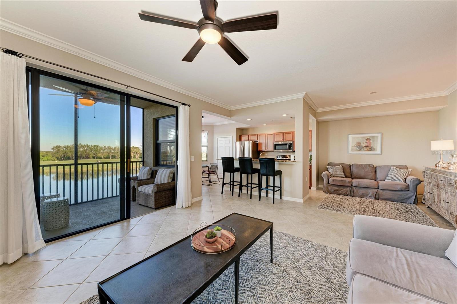 NEW PRICE REDUCTION!!!Enjoy breathtaking 180-degree golf course, water, and preserve views from your no-see-um screened lanai. This simply stunning TURNKEY furnished, MOVE IN READY, GOLF DEEDED, 2-Bedroom, 2- Bathroom, Brookside model is a must see. The features of this cozy condo are endless. New vinyl plank flooring in both master and guest bedrooms, crown molding, premium glass shower door, cabinets added in laundry room, freshly painted, and updated: refrigerator, washer & dryer, dishwasher, lighting and fans. Included is a deeded golf membership granting access to the Arthur Hills Championship course. This property epitomizes community living at its best. River Strand Golf and Country Club in Bradenton is a premier destination for those seeking upscale living combined with exceptional recreational amenities. Located along the scenic Manatee River, River Strand offers a luxurious lifestyle in a picturesque setting. This exclusive community boasts a 27-hole championship golf course designed by Arthur Hills, providing an unparalleled golfing experience for players of all levels. The meticulously manicured fairways and challenging greens provide a thrilling game amidst breathtaking natural surroundings. In addition to golf, River Strand has many resort-style amenities including clubhouse facilities, 8 pools, 2 fitness centers, 9 tennis courts, 8 pickleball courts and walking trails. Residents can join in social activities, fitness classes, and organized events, creating a great sense of community. With its convenient location just minutes from I-75 and the pristine Gulf Coast beaches, River Strand Golf and Country Club provides residents with easy accessibility to shopping, dining, entertainment, and outdoor recreation options. Whether enjoying a round of golf, lounging by the pool, or enjoying a meal at the clubhouse, River Strand offers the perfect blend of luxury, leisure, and relaxation for those seeking an amazing lifestyle. Schedule a showing today! River Strand is calling you home and once you experience at it's best you may never want to leave!