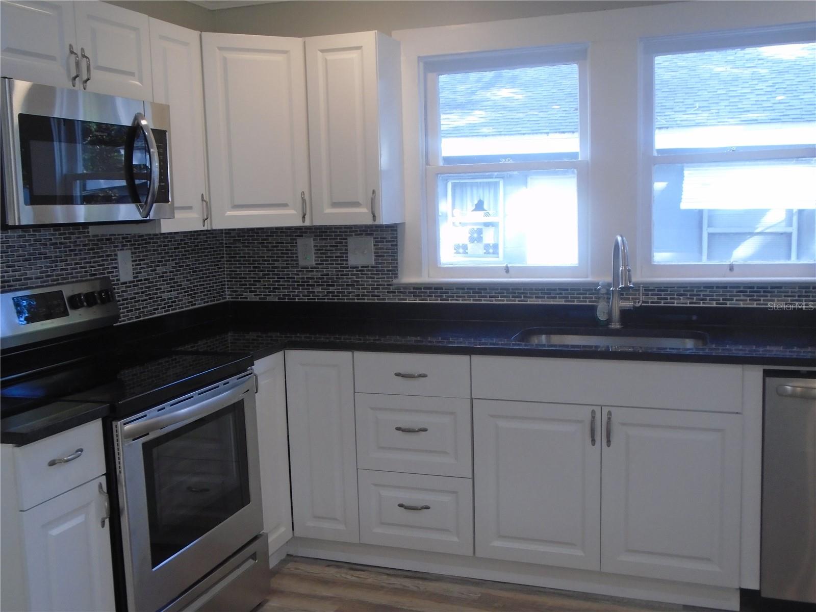 This vintage 1945 cottage has been beautifully transformed into a charming home. The property features a brand new roof with hurricane clips (2024) that not only enhances safety but also helps reduce insurance costs. The electrical system has been upgraded with a new electric panel (2024), ensuring peace of mind. Inside, you'll find luxury vinyl flooring throughout, complemented by brand-new tile in the bathrooms. Each bathroom boasts new vanities and toilets, along with a glass shower door in the main bath. 3-ton AC system replaced in 2023 and an electric water heater have also been installed for optimal comfort. The kitchen is a standout, featuring soft-close cabinets, granite countertops, and a breakfast bar perfect for enjoying your morning coffee. Stainless steel appliances complete the modern look, and new ceiling fans and LED recessed lighting brighten every room. The home offers a spacious split plan layout, with the primary bedroom located on one side, complete with an en suite bathroom featuring a glass-enclosed shower and a seating area. The other two bedrooms are on the opposite side of the home, sharing a second tiled bathroom with a tub/shower combo. Enjoy outdoor living on the screened-in back patio, which includes laundry hookups. The backyard is fully fenced, providing privacy and security. Conveniently located just three blocks from the scenic Bradenton Riverwalk along the Manatee River and offers access to amenities such as a skate park, volleyball courts, and an exercise area. You’ll also find yourself just a few blocks from the Riverwalk and Manatee Memorial Hospital, with downtown Bradenton and its shops and restaurants less than a mile away. With no HOA fees or deed restrictions, this charming neighborhood of Beau Vue Estates feels like a hidden gem in Bradenton. The site is zoned T-5, Urban Core, allowing for various possibilities, including restaurants, offices, health services, and more. This home is a must-see!