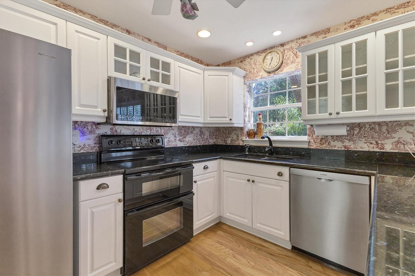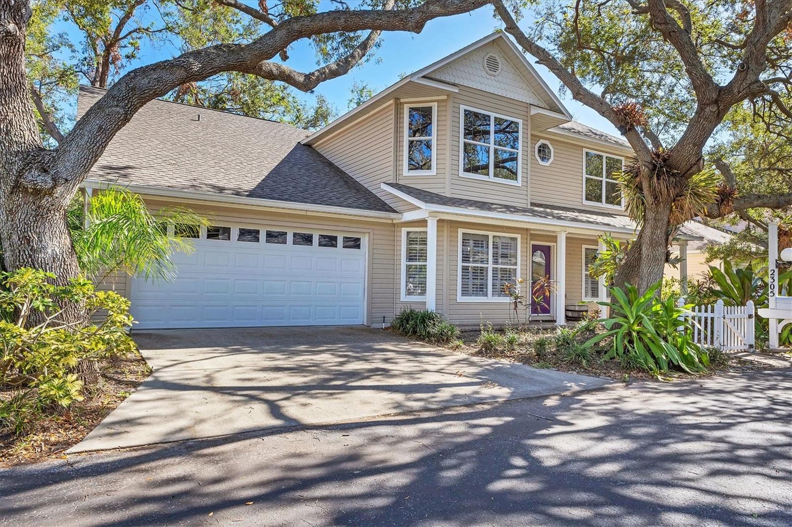 Rarely available home in the idyllic enclave of Cape Town Village. Beautiful old oaks and lush landscaping that is maintenance free! This expansive airy home has soaring ceilings, large windows and French doors. Stone countertops in the kitchen that is appointed with newer stainless appliances including a double oven. Gleaming hardwood floors throughout the main floor areas with tile in the bathrooms and carpeting in most bedrooms. The breakfast nook and dining room open onto the enclosed lanai. Don't miss your chance at this unique home in this New England inspired neighborhood. Lawn maintenance, tree maintenance, community pool maintenance, basic cable, internet, private roads, water/sewer/trash and manager is included in your monthly HOA fee. This location in the heart of West Bradenton provides easy access to local amenities such as shopping, restaurants, beaches, GT Bray park, Blake Hospital and boasts of first rate schools. This well maintained property is in and estate and is being sold As-Is.