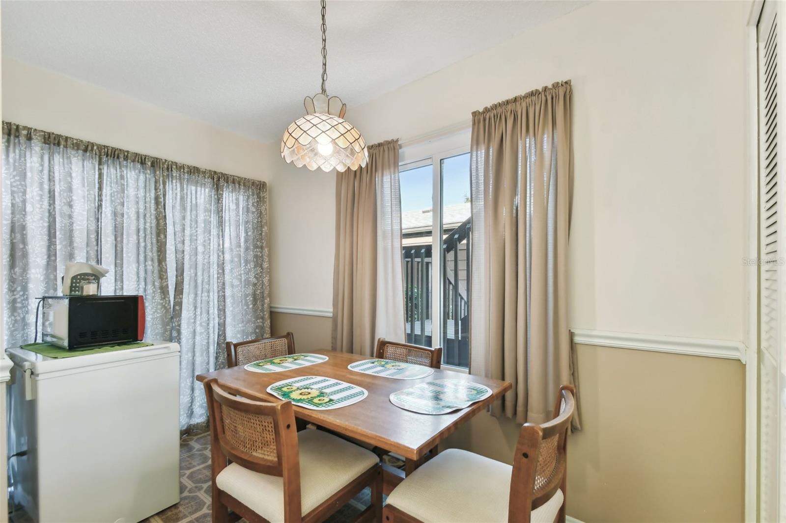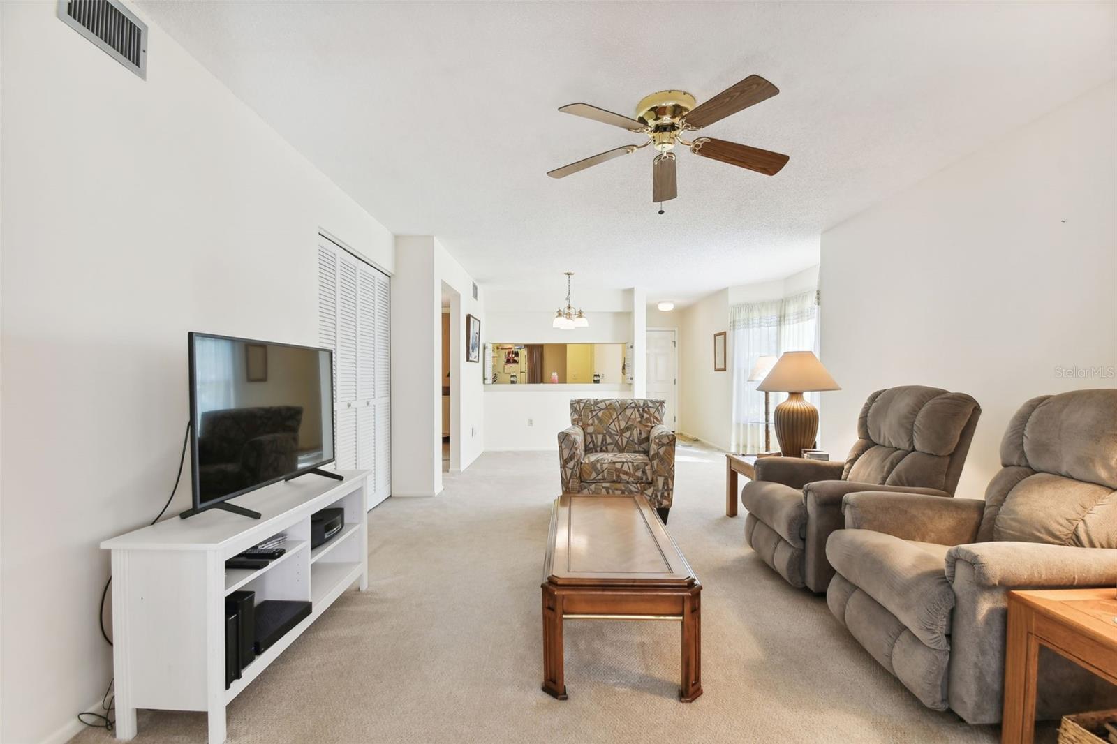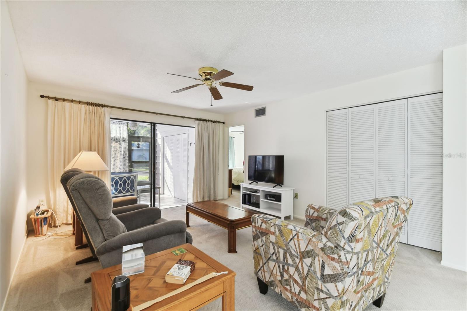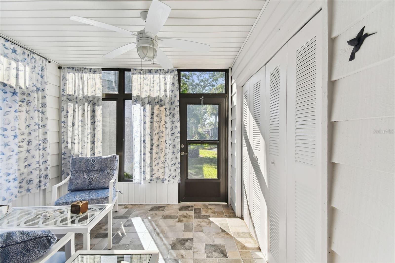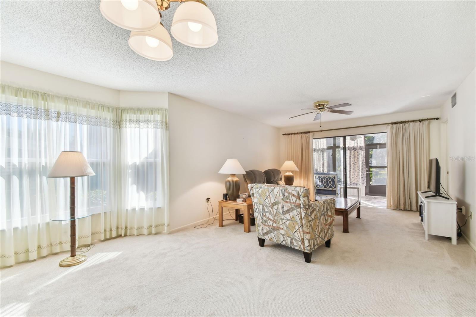 Don't miss this RARE first-floor end unit with a single-car garage in the sought-after Country Village. This turnkey furnished 2/2 condo is light and bright, with a beautiful bay window that adds warmth to the interior along with newer neutral carpet throughout. If you are looking for something that has some updating already done, you won't be disappointed. The Primary Bathroom is spacious and tastefully updated with a beautiful walk-in shower. The Guest Bathroom is brightly updated as well. The kitchen boast newer appliances (refrigerator 2022, dishwasher 2024) and a breakfast nook that is ready for your personal touch. Other updates include impact windows and front door 2018, AC 2022, and Electrical panel 2022. If you like to start your day with a cup of coffee or end your day with a cocktail, the enclosed lanai will soon be your favorite little oasis with its parklike views. Country Village is an active 55+ community located less than 7 miles from the beaches of Anna Maria Island, 5 miles to Robinson Preserve and so much more. Don't forget, there are great local restaurants and shopping nearby.