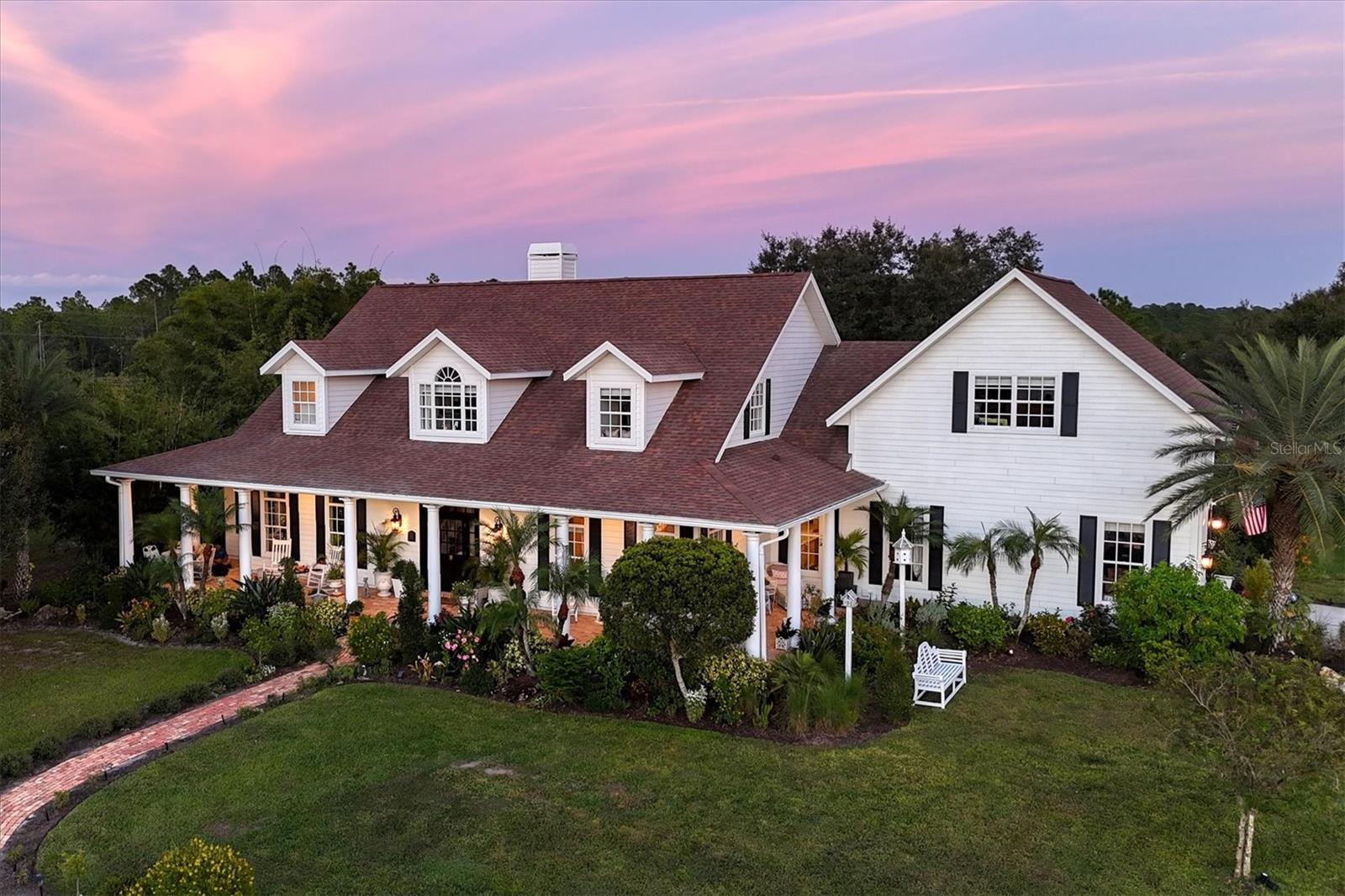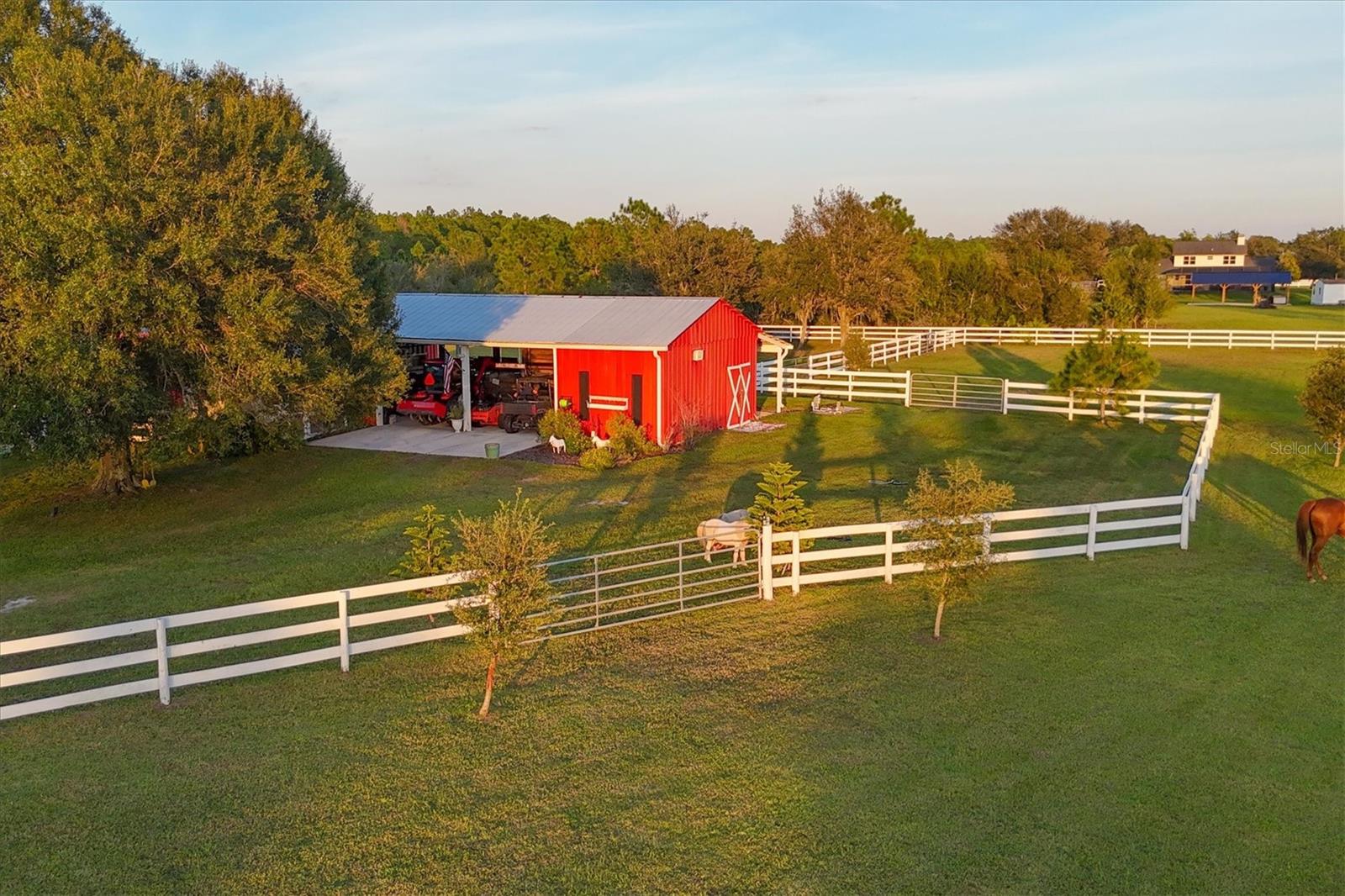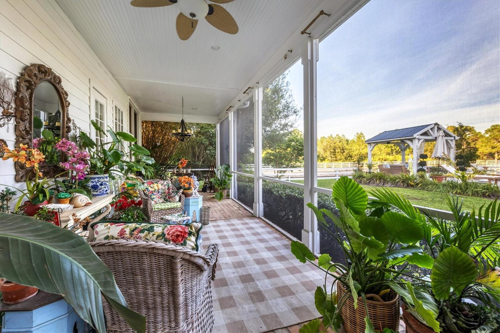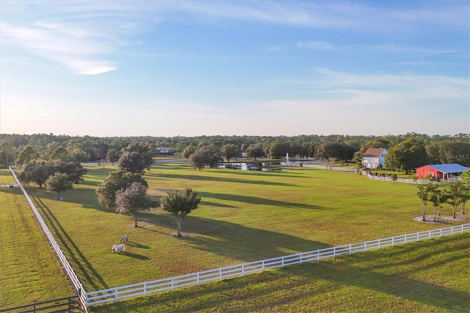 Through an elegant gated entrance and beneath the sprawling canopy of century-old oak trees lining the driveway, you'll discover the epitome of charm. A meticulously renovated farmhouse on a picturesque 10-acre fenced ranch. Approach the wrap-around porch adorned with Chicago brick and bespoke columns, inviting you into the freshly painted interior. Revel in the timeless allure of hardwood floors, intricate custom moldings and a captivating wood-burning fireplace, showcasing meticulous architectural craftsmanship. The open layout seamlessly connects the living spaces, revealing a state-of-the-art kitchen boasting a standalone commercial refrigerator and freezer, dual-range stove, exquisite wood cabinetry, and a remarkable butler pantry/coffee all complemented by quartz countertops. Additionally, a unique copper sink for vegetables and a convenient pot filler enhance the functionality of this culinary haven. Venture into the newly expanded primary suite, featuring an expansive walk-in closet, a comforting fireplace and a main bath adorned with marble countertops, a walk-in shower and making it an idyllic retreat. Ascend the stairs to discover three additional bedrooms, two recently renovated baths, and a generously proportioned bonus room with a dedicated bar area. Outside, a resort-style lagoon heated and cooled pool with a black bottom and all new pool equiptment while a charming gazebo beckons relaxation. The property also includes a separate four-stall barn with a climate-controlled tack room, a cutting-edge chicken coop with concrete support, and a professional-grade 20-meter by 60-meter dressage area, adjacent to extensive riding trails spanning 25 miles throughout the community. Noteworthy upgrades abound, including refurbished windows, a roof installed in 2016, a new air-conditioning system in 2022, a freshly aerated lake with 3,500 stocked fish such as bass, bluegill and carp in 2023, replumbing of the entire house in 2021, a whole-house reverse osmosis system, brand new septic and drainage field, an additional air-conditioned storage unit and a newly drilled deep well. Also featured in your home is a state-of-the-art security system equipped with 14 cameras strategically placed around your property, glass break detectors, motion sensors, carbon monoxide detectors and secure locks all controllable from your smartphone, no matter where you are in the world. This exceptional equestrian property, in Panther Ridge, stands as a testament to unparalleled luxury and functionality.