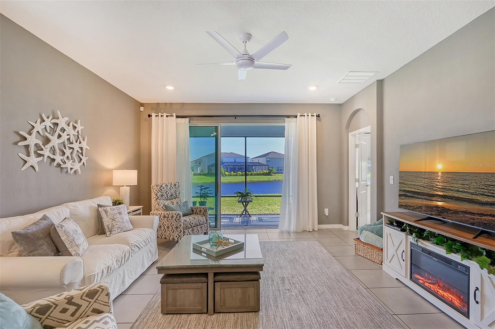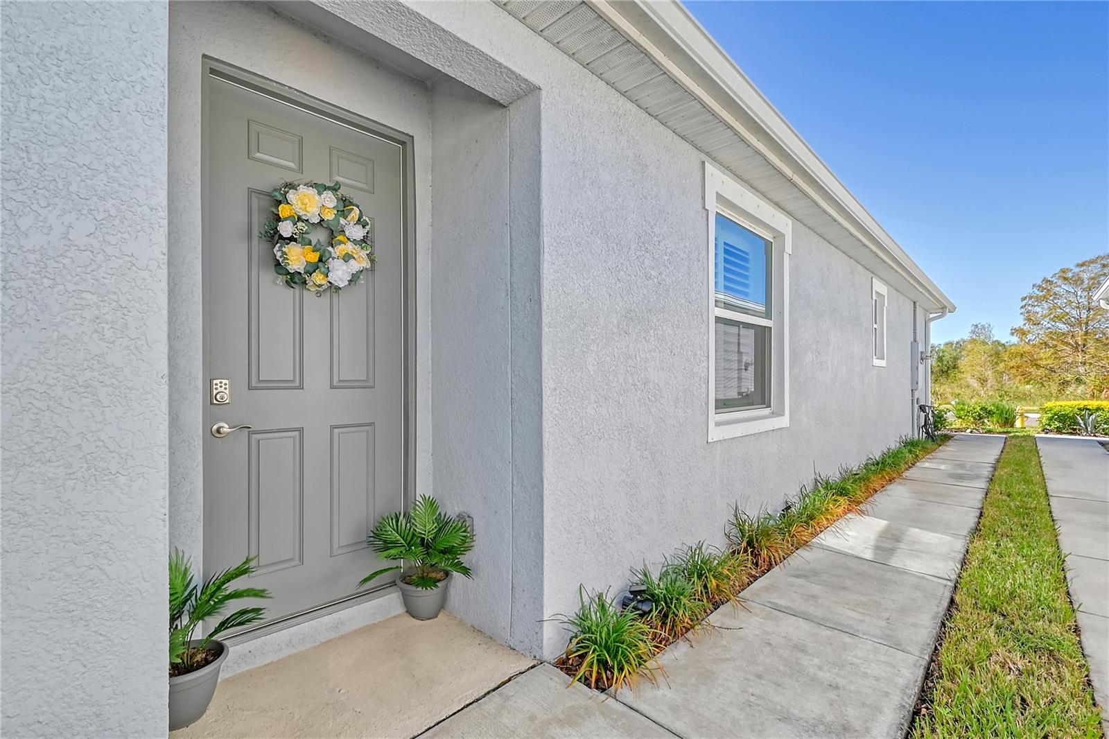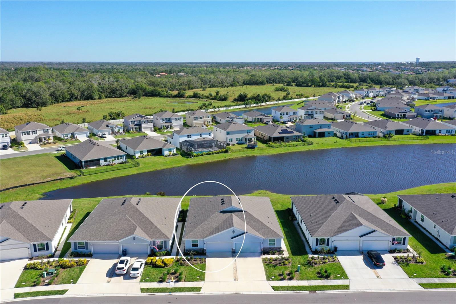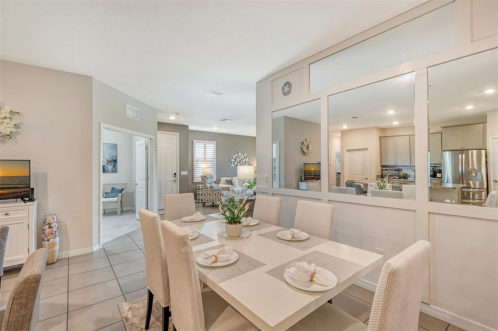 This beautifully detailed, waterfront villa is in the Coddington community, just north of Lakewood Ranch. Built in 2023, the villa offers three bedrooms, two full baths and approximately 1,565 square feet of living space. Some of the upgrades included in this home, features not found in newly constructed villas, are a mirror wall detail in the dining area, custom wall treatment in the primary suite, a screened-in lanai, epoxy flooring in the garage, a convection range with a double oven, plantation shutters and more. Smart home technology is also integrated throughout the home. As you enter, you are immediately captivated by the stunning water views, visible from the great room, screened lanai and primary suite. The lush nature preserve across the street can be viewed from the second bedroom. The living areas flow effortlessly, with large sliding doors that flood the home with natural light. The spacious open-concept floor plan and oversized kitchen make it easy to entertain guests. The chef’s kitchen features a large island and 36-inch designer shaker-style cabinetry in a neutral gray tone, complemented by granite countertops. A large stainless-steel, single-bowl drop-in sink with a chrome faucet and stainless steel appliances complete the modern look. The primary suite, just off the great room, includes a large picturesque window, a spacious walk-in closet, and an en-suite bath with gray-toned cabinetry, granite countertops and a walk-in tiled shower with a bench. Two additional bedrooms, one used as an office, offer ample space for guests. The villa also features a spacious secondary bath, a laundry closet and a two-car garage. You’ll also enjoy the community amenities, including a pool, cabana, flex lawn and playground. This community is ideally near many shopping centers and restaurants and is approximately 30 minutes from Florida’s beautiful Gulf Coast beaches. Furniture can also be purchased, so you can move in and enjoy this home in the new year.