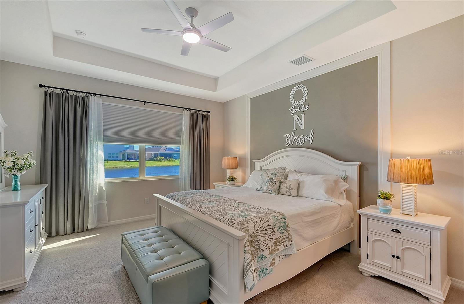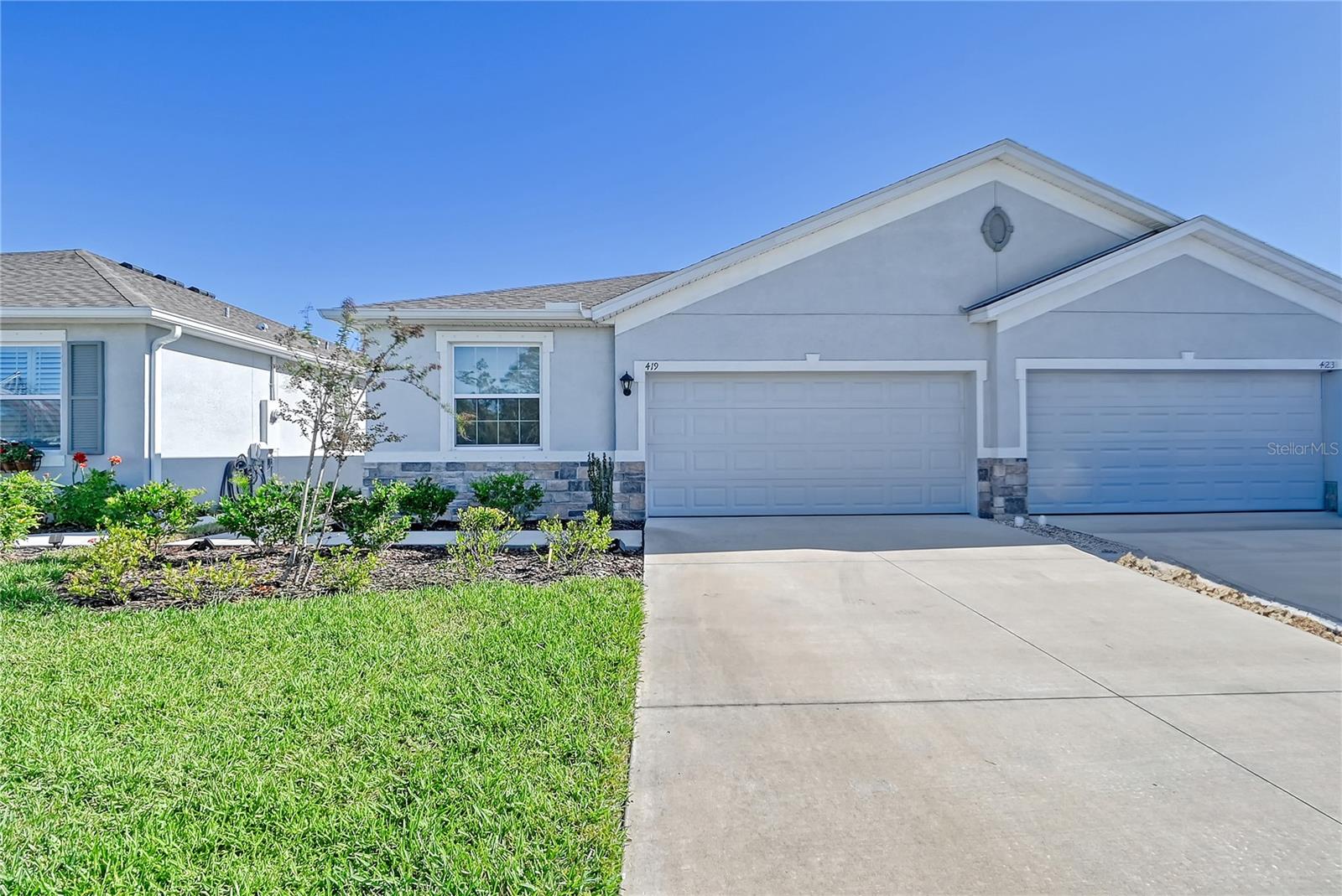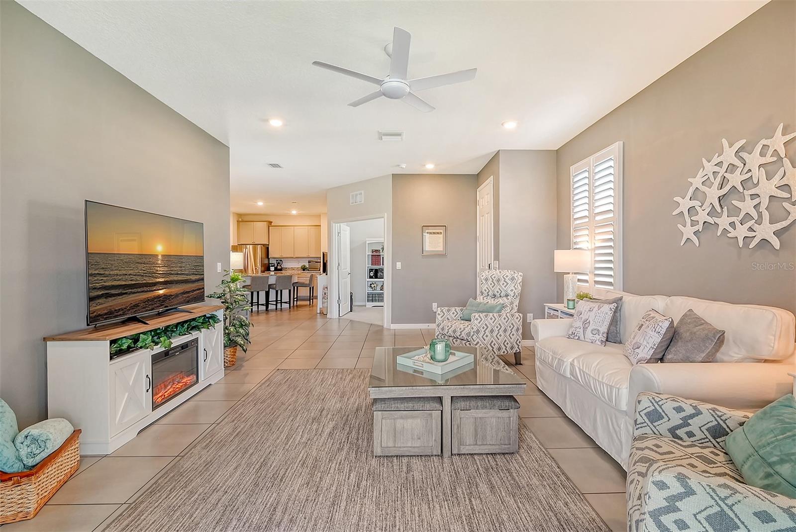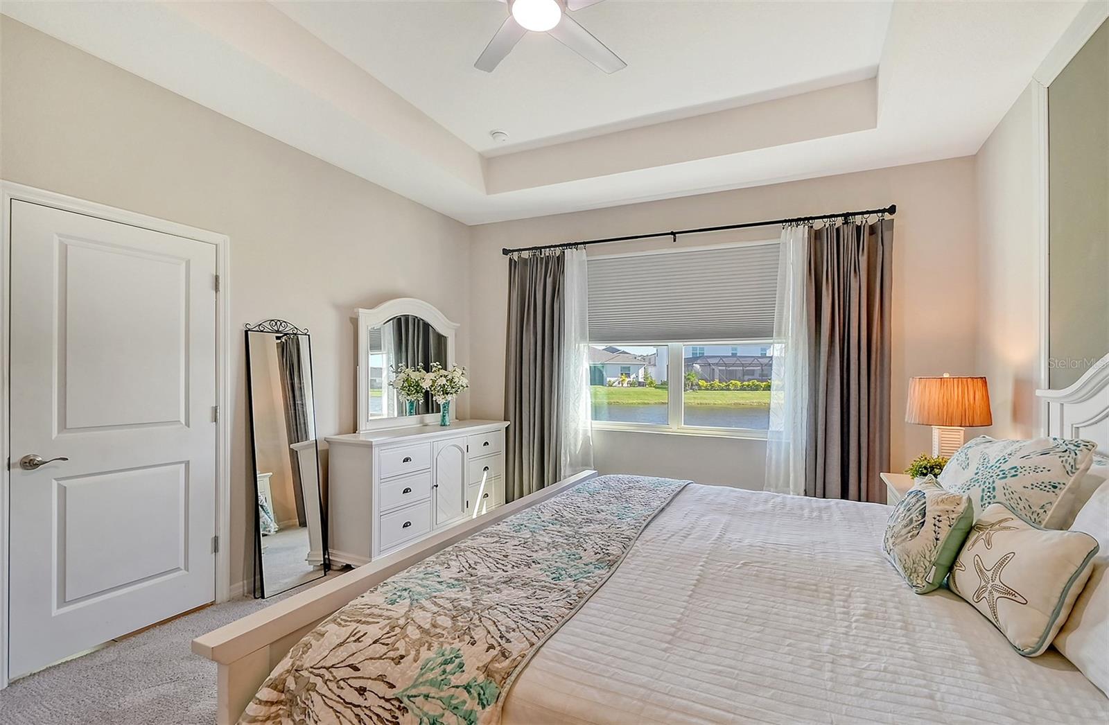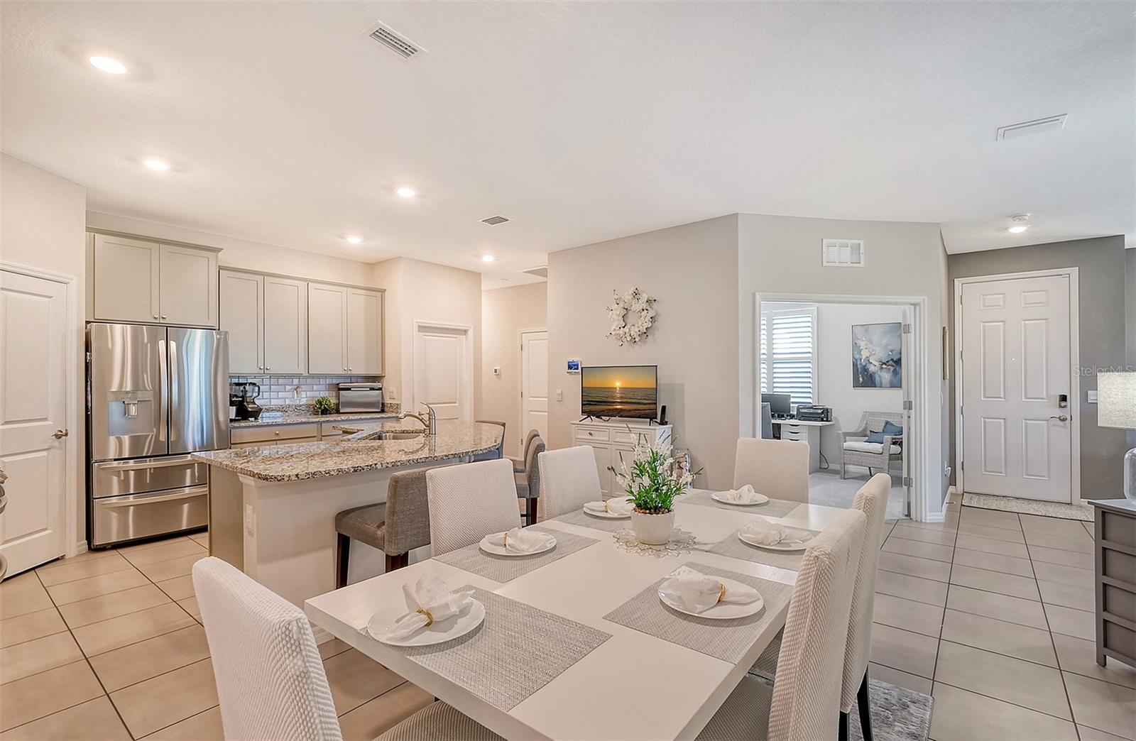 This beautifully detailed, waterfront villa is in the Coddington community, just north of Lakewood Ranch. Built in 2023, the villa offers three bedrooms, two full baths and approximately 1,565 square feet of living space. Some of the upgrades included in this home, features not found in newly constructed villas, are a mirror wall detail in the dining area, custom wall treatment in the primary suite, a screened-in lanai, epoxy flooring in the garage, a convection range with a double oven, plantation shutters and more. Smart home technology is also integrated throughout the home. As you enter, you are immediately captivated by the stunning water views, visible from the great room, screened lanai and primary suite. The lush nature preserve across the street can be viewed from the second bedroom. The living areas flow effortlessly, with large sliding doors that flood the home with natural light. The spacious open-concept floor plan and oversized kitchen make it easy to entertain guests. The chef’s kitchen features a large island and 36-inch designer shaker-style cabinetry in a neutral gray tone, complemented by granite countertops. A large stainless-steel, single-bowl drop-in sink with a chrome faucet and stainless steel appliances complete the modern look. The primary suite, just off the great room, includes a large picturesque window, a spacious walk-in closet, and an en-suite bath with gray-toned cabinetry, granite countertops and a walk-in tiled shower with a bench. Two additional bedrooms, one used as an office, offer ample space for guests. The villa also features a spacious secondary bath, a laundry closet and a two-car garage. You’ll also enjoy the community amenities, including a pool, cabana, flex lawn and playground. This community is ideally near many shopping centers and restaurants and is approximately 30 minutes from Florida’s beautiful Gulf Coast beaches. Furniture can also be purchased, so you can move in and enjoy this home in the new year.
