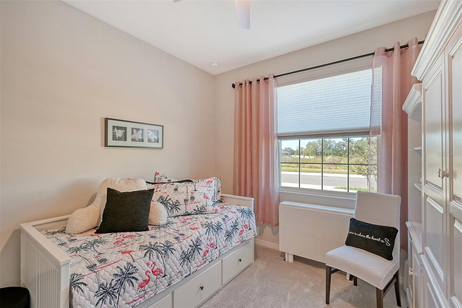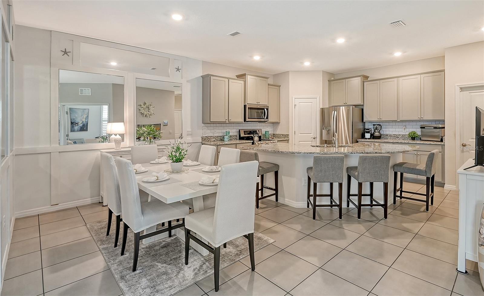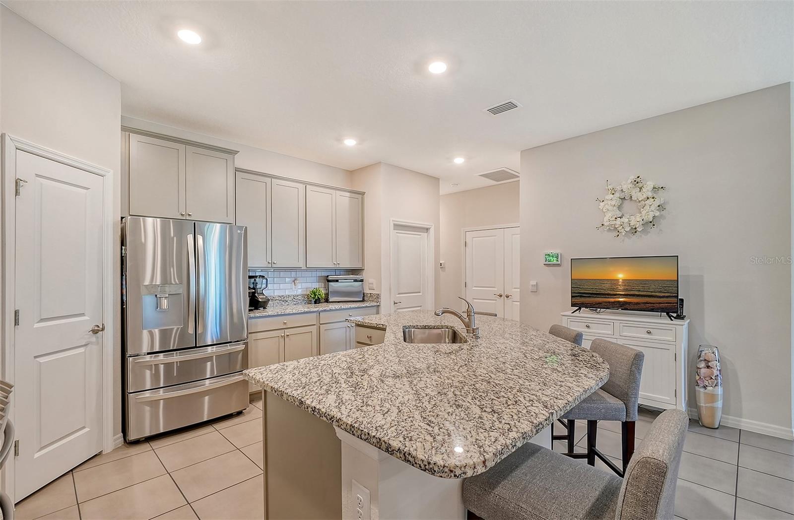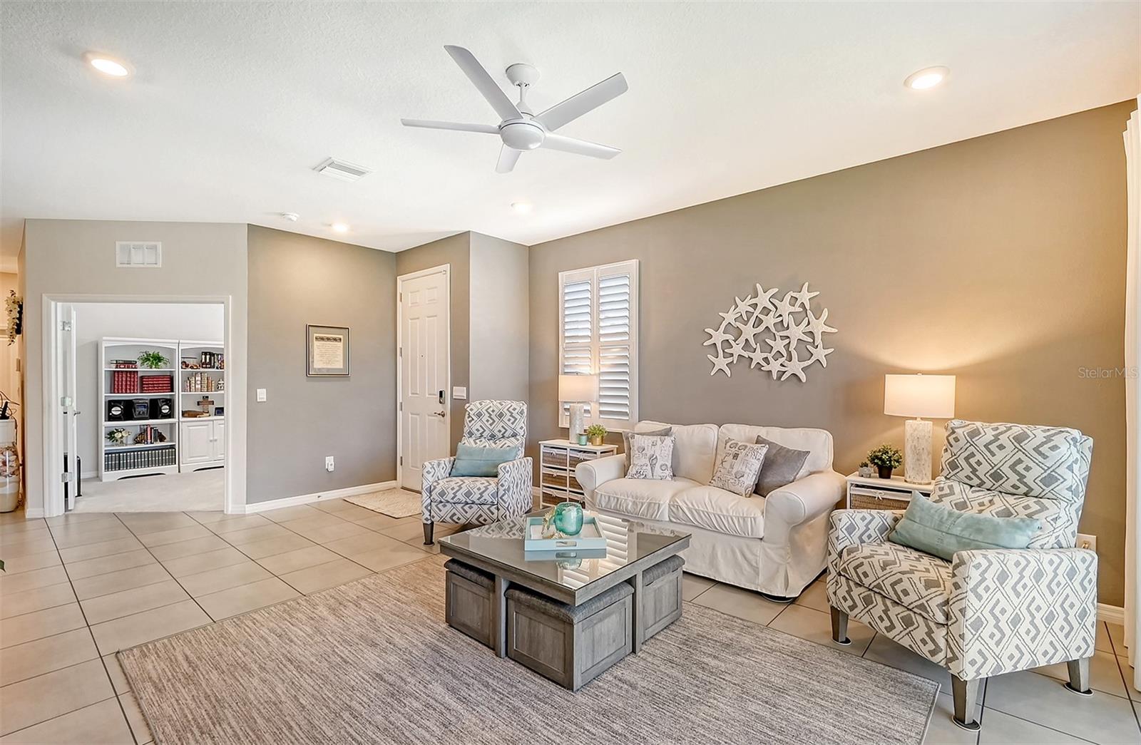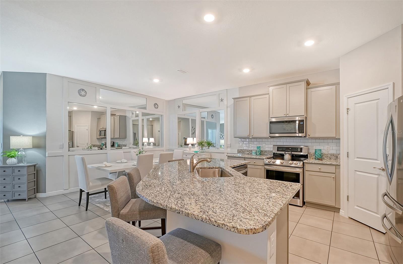 This beautifully detailed, waterfront villa is in the Coddington community, just north of Lakewood Ranch. Built in 2023, the villa offers three bedrooms, two full baths and approximately 1,565 square feet of living space. Some of the upgrades included in this home, features not found in newly constructed villas, are a mirror wall detail in the dining area, custom wall treatment in the primary suite, a screened-in lanai, epoxy flooring in the garage, a convection range with a double oven, plantation shutters and more. Smart home technology is also integrated throughout the home. As you enter, you are immediately captivated by the stunning water views, visible from the great room, screened lanai and primary suite. The lush nature preserve across the street can be viewed from the second bedroom. The living areas flow effortlessly, with large sliding doors that flood the home with natural light. The spacious open-concept floor plan and oversized kitchen make it easy to entertain guests. The chef’s kitchen features a large island and 36-inch designer shaker-style cabinetry in a neutral gray tone, complemented by granite countertops. A large stainless-steel, single-bowl drop-in sink with a chrome faucet and stainless steel appliances complete the modern look. The primary suite, just off the great room, includes a large picturesque window, a spacious walk-in closet, and an en-suite bath with gray-toned cabinetry, granite countertops and a walk-in tiled shower with a bench. Two additional bedrooms, one used as an office, offer ample space for guests. The villa also features a spacious secondary bath, a laundry closet and a two-car garage. You’ll also enjoy the community amenities, including a pool, cabana, flex lawn and playground. This community is ideally near many shopping centers and restaurants and is approximately 30 minutes from Florida’s beautiful Gulf Coast beaches. Furniture can also be purchased, so you can move in and enjoy this home in the new year.