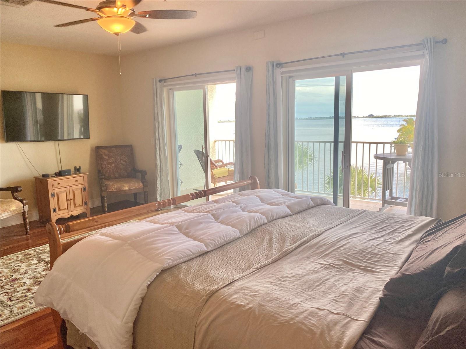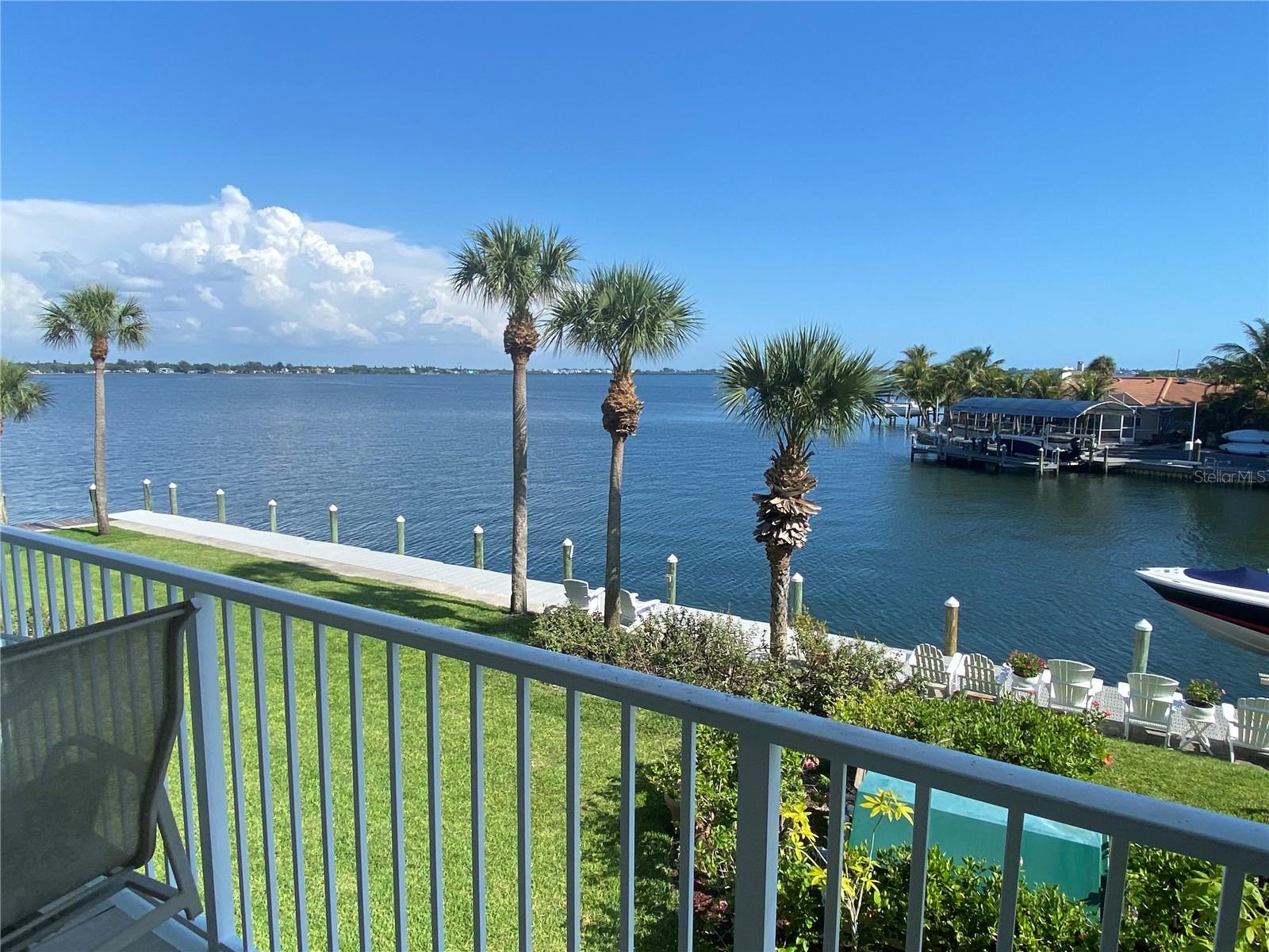 Huge price reduction! Over 150K less than unit that sold last summer with similar views. Rare opportunity to live on the water with wide open vistas of Palma Sola Bay in a townhouse with spaciousness that feels like a house. Southern exposure with deeded deep water boat slip. Remodeled giant chef's kitchen, wood cabinets to the ceiling, stone undercounter lighted countertops, marble and wood floors. Large shower, and jacuzzi tub. It boasts an airconditioned bonus first floor den and cedar closet and extra storage/utility area not counted in the square feet living area. Lots of closet space with walk-in. Private elevator. Tandem 2 car garage. Balconies on 2 floors off the family room and master bedroom to watch the dolphins and manatees play. Ideal location with boatable water, close to Bradenton's restaurants and shopping while only minutes from the Anna Maria Island beautiful sandy beaches. Palms at Palma Sola is a hidden gem. Live the island waterfront lifestyle with the convenience of the mainland.