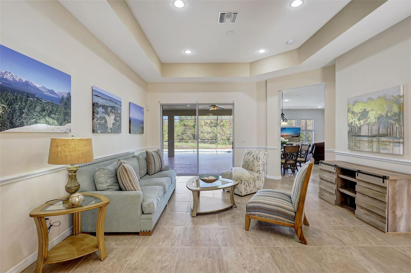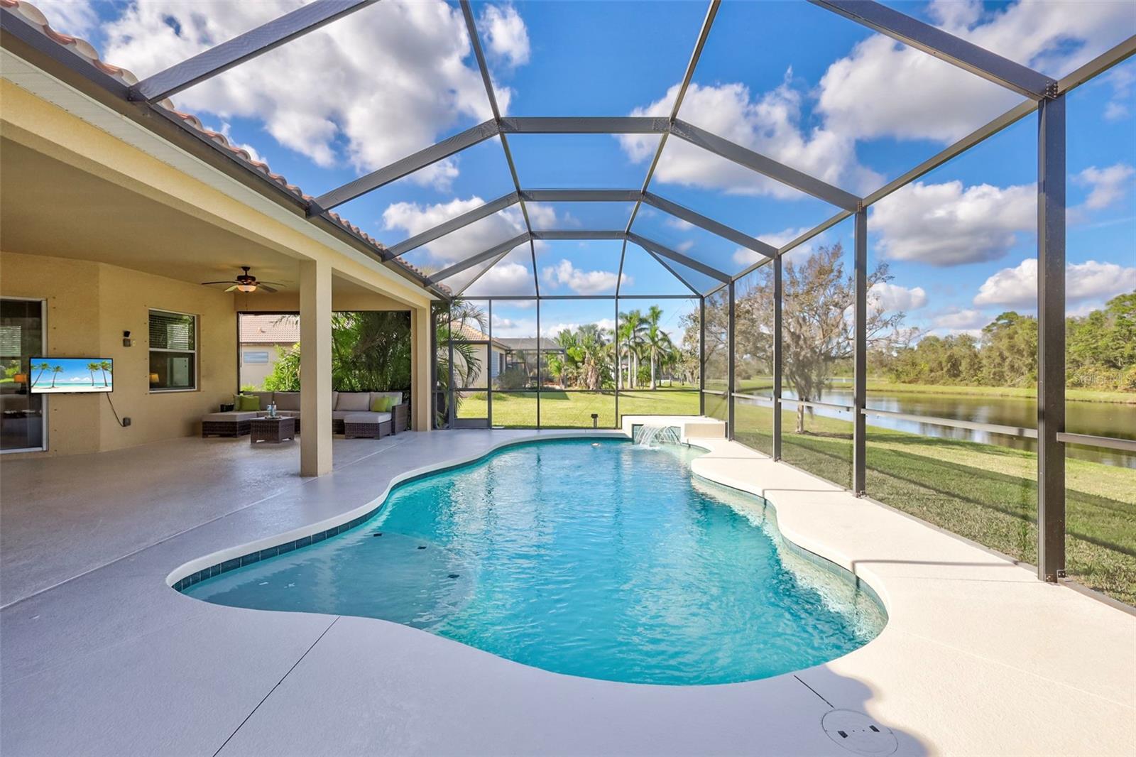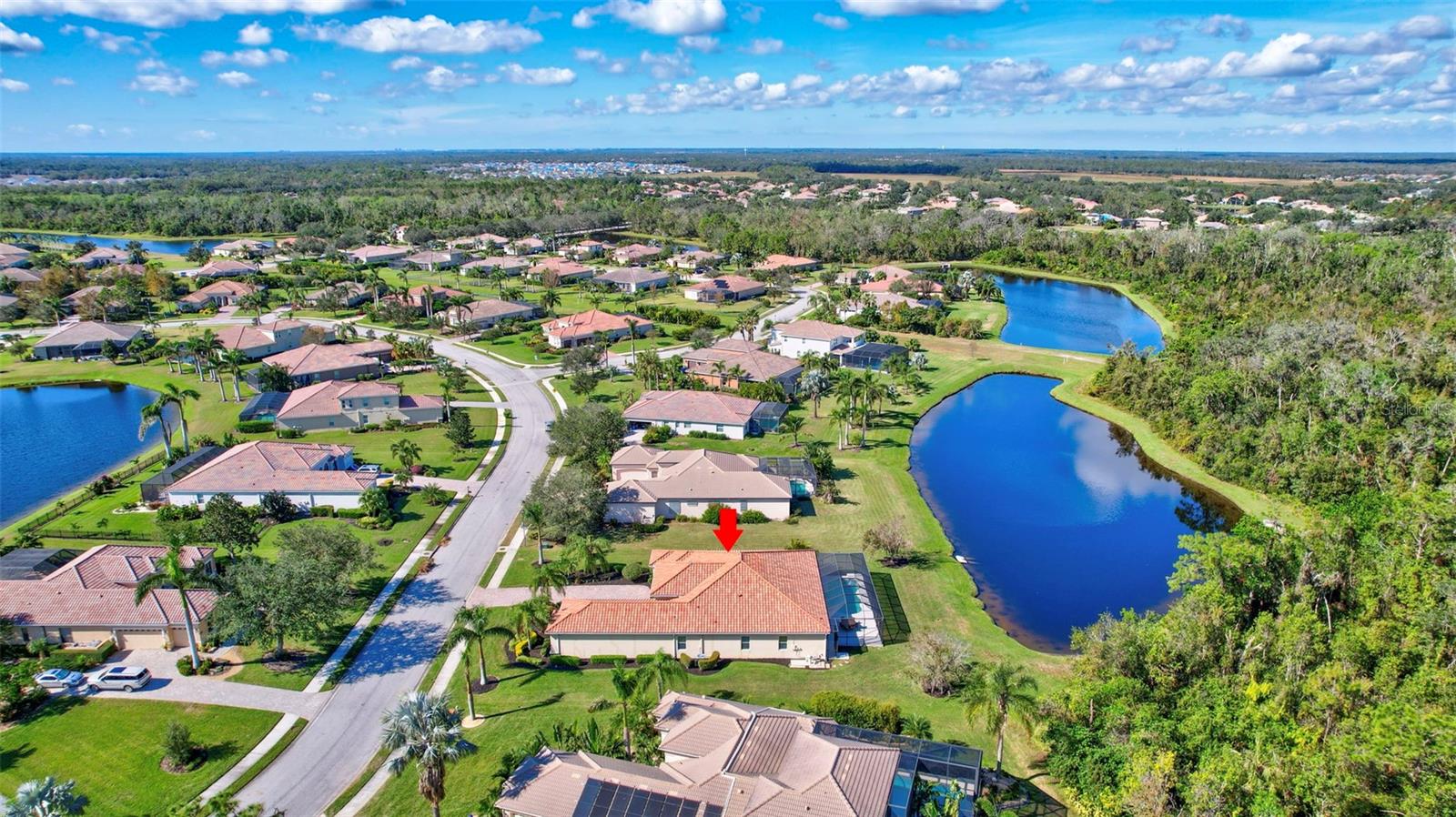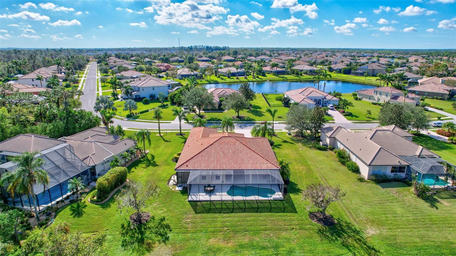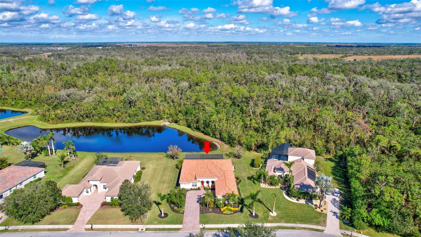 BACK ON THE MARKET WITH BREATHTAKING POND VIEWS. The proof is in the pudding in this half acre and sought after Rye Wilderness Neighborhood pond and preserve view estate home. With breathtaking views of the long double pond views, larger lanai, pristine pool, and federal preserve Rye Wilderness Park. NO CDD's, LOW HOA fees and top-rated schools. Gorgeous Osprey model having high ceilings and a flowing floor plan, tile roof, side load entry three car garage, and paver driveway. A lovely four-bedroom, three bath, + office home that shows like a model! The gourmet kitchen features granite counters, solid wood cabinetry, vented outside, island, Stainless Steel appliances and a breakfast bar, opening to the large family room with surround speaker system bringing this space as a theatre, musical session space and perfect for entertaining. The separate living, and dining areas feature volume trey ceilings with warm neutral tones, eight-foot doors, natural light from forward and back in these rooms and of course tile floors thru out the entire home. Large sliding doors bring the splendid pool with pond view together with the living area as well as the largest lanai of any other model in this neighborhood. The master suite is spacious with his and her closets along with a luxurious bathroom that includes a separate shower, dual sinks and a garden tub to relax the evening. The spacious laundry/mud room can be used for additional storage or multi-use. In addition to all of this, this home has a sizeable paver drive area. Rye Wilderness is well placed and just minutes to the interstate, with Lakewood Ranch to the south, equally to Sarasota downtown and St Pete downtown, Anna Maria Island/Holmes your direct beach, but local to several other world-famous beaches, near UTC mall, Costco, Restaurants and shopping. An hour to Tampa for your bigger city needs. Come to find this rare gem in this amazing area to make your forever home.