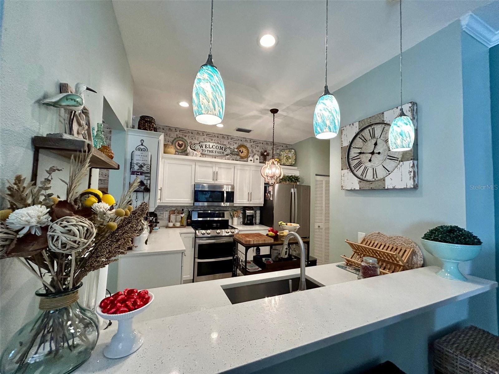 Wow factor beautiful home in the heart of Bradenton. This stunning and tastefully updated villa offers you the perfect place to savor the much sought-after Florida lifestyle. Step inside a magical world of luxury vinyl flooring, high ceilings with elegant crown molding in an open space floor plan and gorgeous light fixtures. Enjoy peace of mind knowing that you have all impact windows installed throughout the home. Always stay cool with a brand-new HVAC system installed February 2025. The contemporary kitchen features quartz countertops, stainless steel appliances, a double oven range and generous cabinet space for you to show off your culinary skills. The cozy living room flows seamlessly into a sunlit Florida sunroom. The extra-large primary bedroom has an ensuite bathroom and a spacious walk-in closet. The heated community pool is the perfect spot to enjoy happy hours with the neighbors and make new friends. You will love its convenient central location that's just minutes to the crystal beaches of Anna Maria Island, world famous gourmet restaurants, Downtown Bradenton and Sarasota, Sarasota-Bradenton Airport, grocery stores, the State College of Florida, IMG Academy, golf courses, and more. Hurry up and make this sweetheart your own home sweet home.