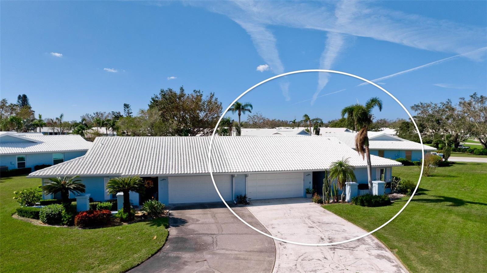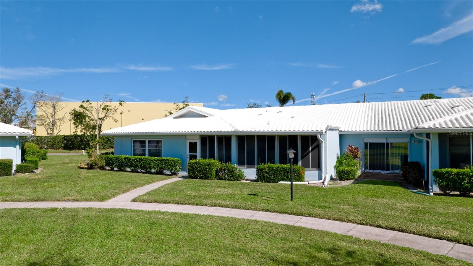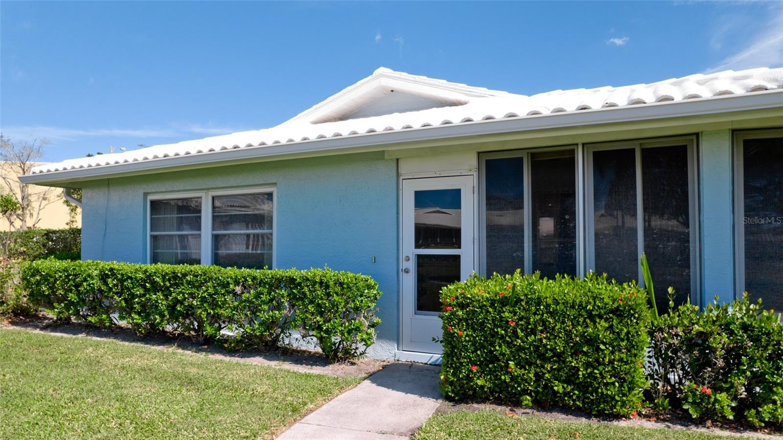 New Carpet installed!!!! Private and protected Villa in Village Green with extra long driveway for plenty of parking for your guests. Newer windows and interior paint. Stainless steel appliances and Granite countertops in kitchen. Granite countertops in both bathrooms. Extra bonus is the inside laundry (not in garage). There are two additional rooms for your office, hobbies. Step out of your Florida room to beautifully landscaped rear yard and sidewalk to the pool! Maintenance-free 55+ plus living. Nearest airports are SRQ, TPA, PIE. LOW MAINTENANCE FEES OF $580 A MONTH! Close to shopping, restaurants and beaches!