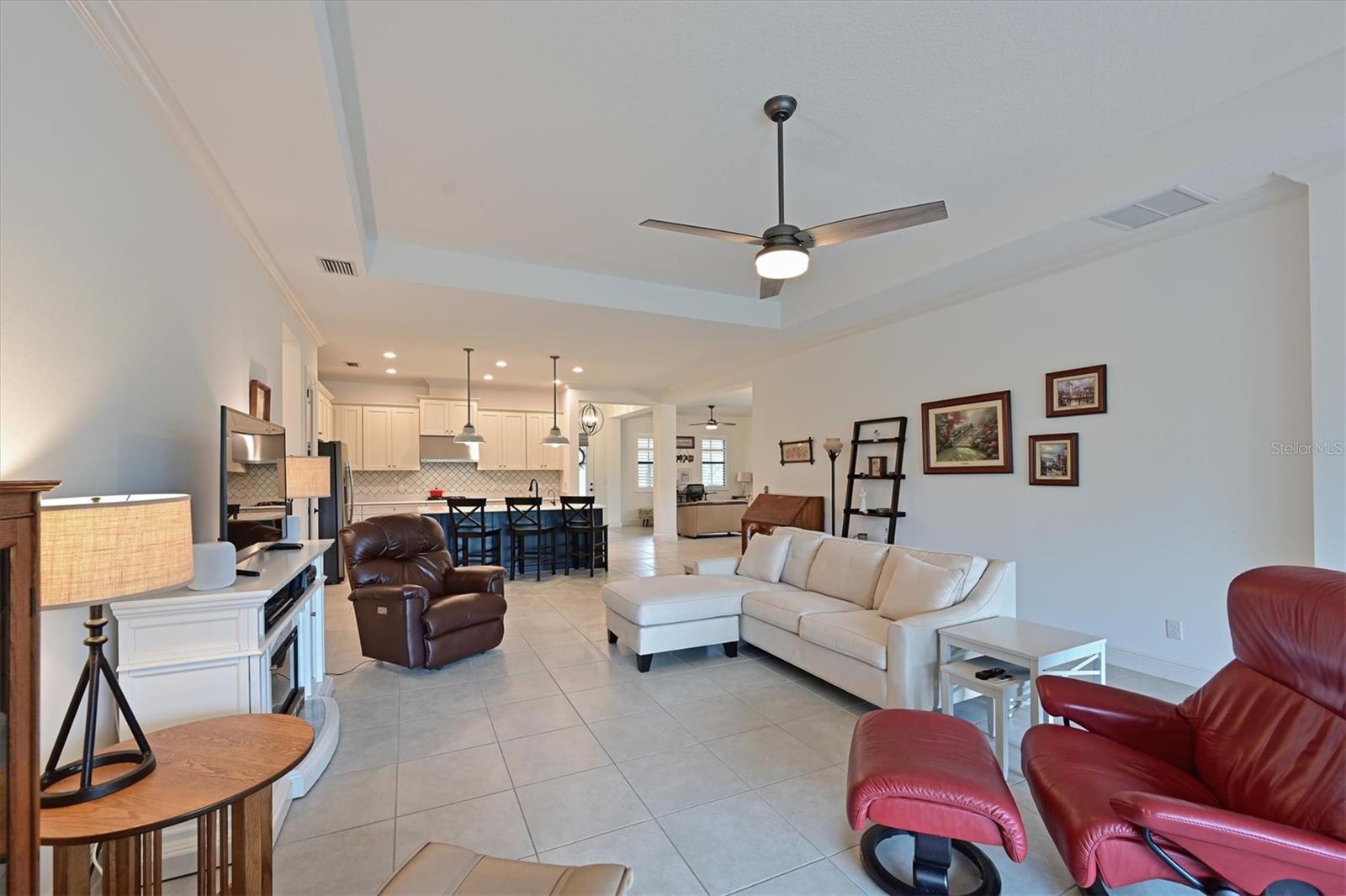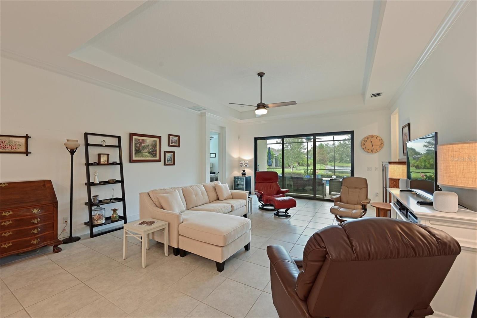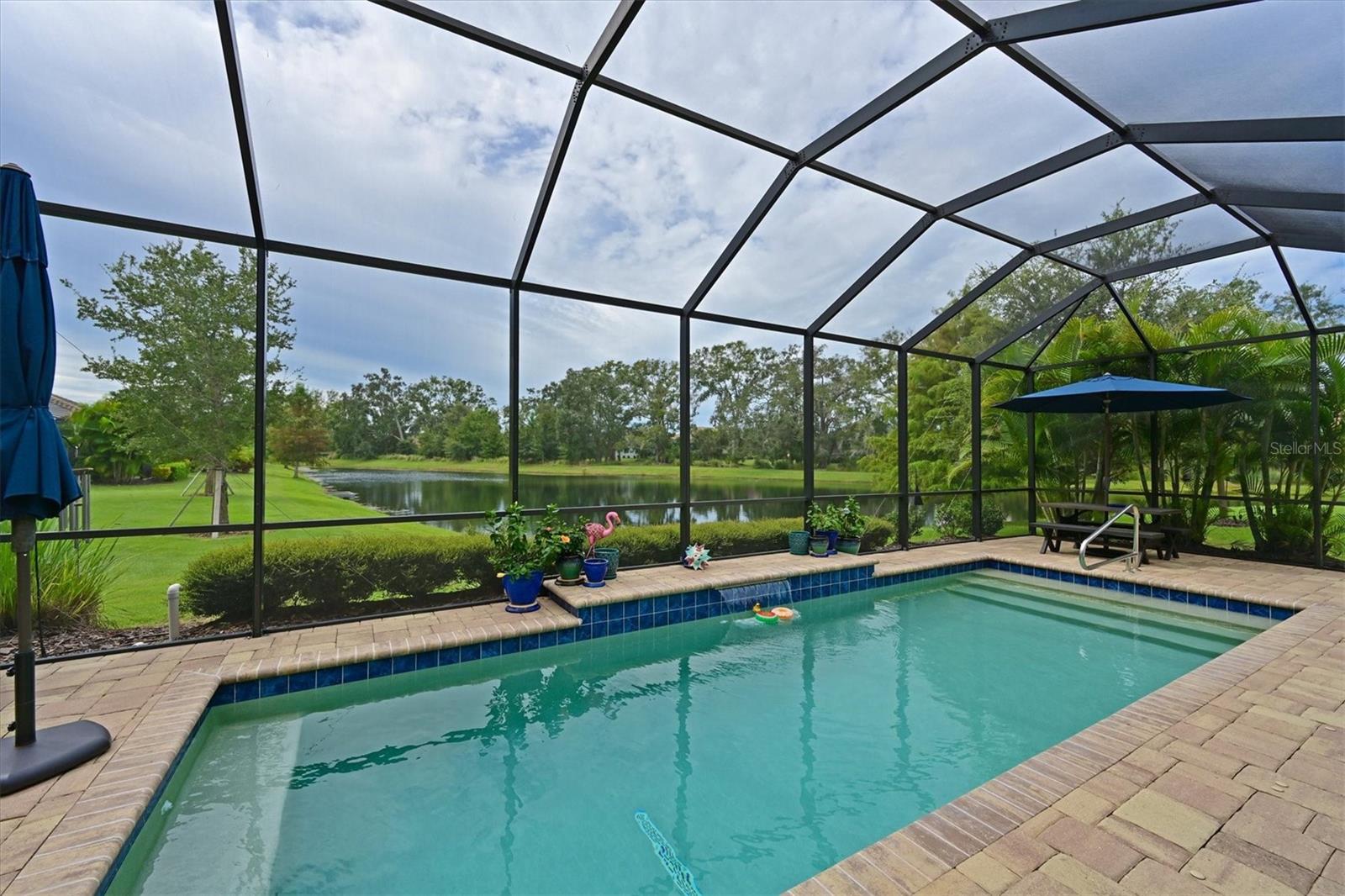 One or more photo(s) has been virtually staged. Exceptional Pool Home in Indigo, Lakewood Ranch! Peace of mind meets luxury living with impact-resistant windows and doors throughout this stunning 2018 Neal Communities "Daybreak" floor plan. Designed for both comfort and durability, this home also offers a 3-car garage extended by four feet, complete with insulated doors and prewiring for an electric car charger, providing ample storage and modern convenience. Located in the heart of Lakewood Ranch’s sought-after Indigo community, this home spans over 2,400 sq. ft. of thoughtfully designed living space on a premium lake/preserve lot. Featuring 4 bedrooms, 3 full bathrooms, and an oversized garage, it combines elegance, functionality, and peace of mind. The Spanish Revival elevation with designer colors, barrel tile roof, and paver driveway creates an inviting curb appeal. Step inside to discover an open floor plan with a great room, dining room, and living room, ideal for hosting gatherings. The interior features neutral tones and no carpet, with 18” x 18” tile throughout for a clean, modern look. The gourmet kitchen is a chef’s dream, offering quartz countertops, a designer backsplash, GE Profile appliances including a gas cooktop, 42” upper cabinets, lower cabinet drawers, roll-out shelving, and a walk-in pantry. A whole-house Culligan reverse osmosis filtration system ensures pristine water, connected to both the sink and refrigerator. The screened lanai is your private retreat, overlooking the tranquil lake and preserve. A heated saltwater pool adds to the Florida lifestyle, while a gas stub on the lanai allows for seamless outdoor grilling. Additional features include plantation shutters, crown molding, coffered ceilings in the great room and master suite, and a Trane 17 SEER HVAC system with a whole-house media air cleaner. The home’s neutral palette is a perfect canvas for your personal touch. With its exceptional design, premium upgrades, and unbeatable location, this home offers the perfect blend of luxury and lifestyle. Schedule your showing today and experience the best of Indigo, one of Lakewood Ranch’s most desirable communities!