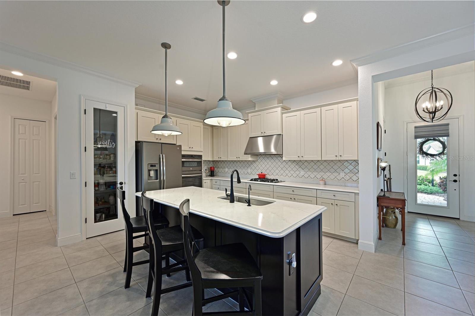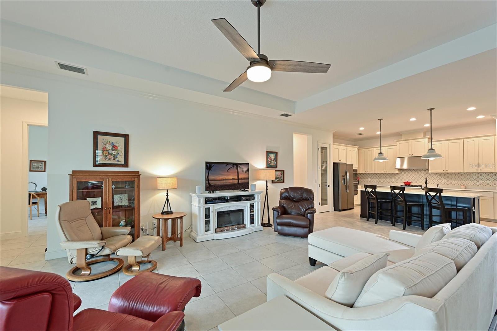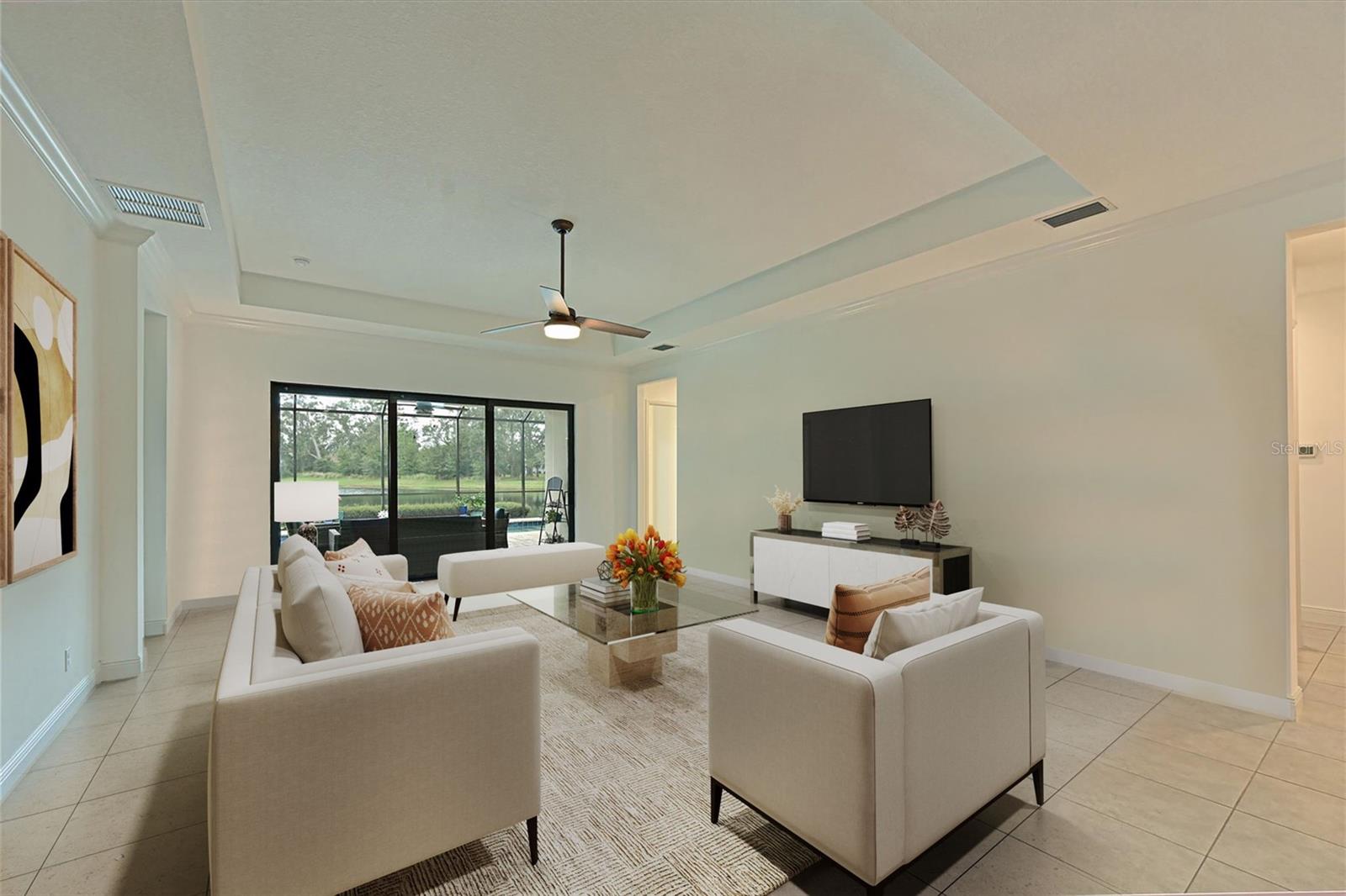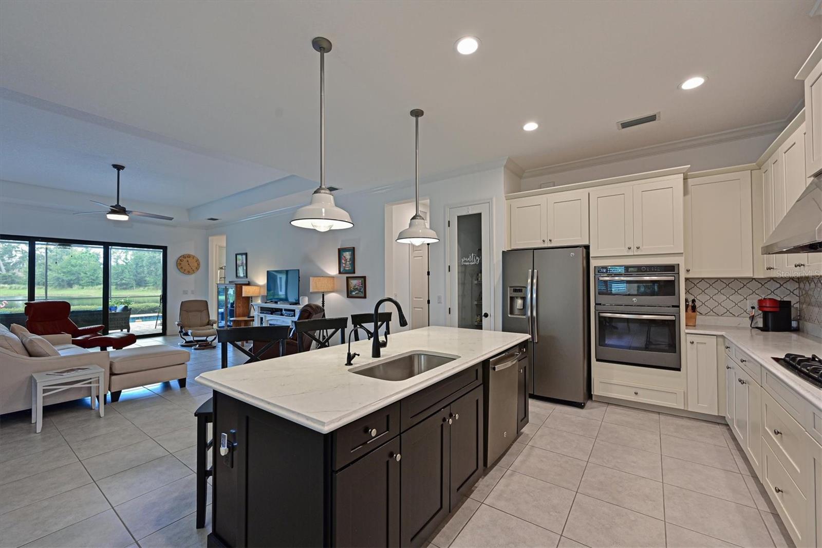 One or more photo(s) has been virtually staged. Exceptional Pool Home in Indigo, Lakewood Ranch! Peace of mind meets luxury living with impact-resistant windows and doors throughout this stunning 2018 Neal Communities "Daybreak" floor plan. Designed for both comfort and durability, this home also offers a 3-car garage extended by four feet, complete with insulated doors and prewiring for an electric car charger, providing ample storage and modern convenience. Located in the heart of Lakewood Ranch’s sought-after Indigo community, this home spans over 2,400 sq. ft. of thoughtfully designed living space on a premium lake/preserve lot. Featuring 4 bedrooms, 3 full bathrooms, and an oversized garage, it combines elegance, functionality, and peace of mind. The Spanish Revival elevation with designer colors, barrel tile roof, and paver driveway creates an inviting curb appeal. Step inside to discover an open floor plan with a great room, dining room, and living room, ideal for hosting gatherings. The interior features neutral tones and no carpet, with 18” x 18” tile throughout for a clean, modern look. The gourmet kitchen is a chef’s dream, offering quartz countertops, a designer backsplash, GE Profile appliances including a gas cooktop, 42” upper cabinets, lower cabinet drawers, roll-out shelving, and a walk-in pantry. A whole-house Culligan reverse osmosis filtration system ensures pristine water, connected to both the sink and refrigerator. The screened lanai is your private retreat, overlooking the tranquil lake and preserve. A heated saltwater pool adds to the Florida lifestyle, while a gas stub on the lanai allows for seamless outdoor grilling. Additional features include plantation shutters, crown molding, coffered ceilings in the great room and master suite, and a Trane 17 SEER HVAC system with a whole-house media air cleaner. The home’s neutral palette is a perfect canvas for your personal touch. With its exceptional design, premium upgrades, and unbeatable location, this home offers the perfect blend of luxury and lifestyle. Schedule your showing today and experience the best of Indigo, one of Lakewood Ranch’s most desirable communities!