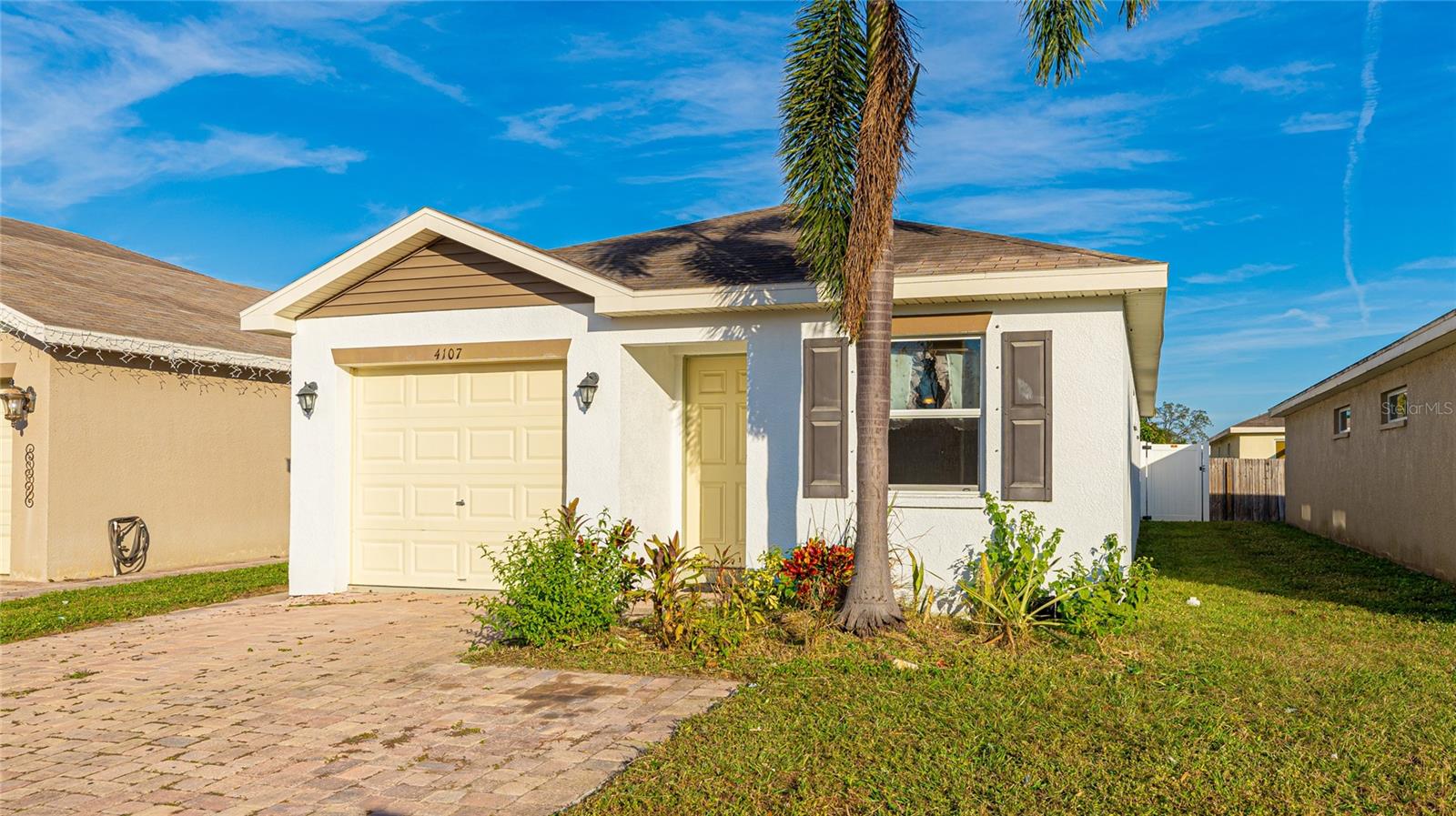 **THIS PROPERTY QUALIFIES FOR A 1% LENDER INCENTIVE IF USING PREFERRED LENDER. INQUIRE FOR MORE DETAILS.** Discover the perfect blend of comfort and practicality with this inviting 3-bedroom, 2-bathroom home in Cortez Landings. Known for its charming brick paver driveways and prime location, this neighborhood offers the perfect backdrop for your next chapter. Step inside to a thoughtfully designed open floor plan that makes daily living and entertaining a breeze. The kitchen, complete with a breakfast bar and pantry, overlooks the dining and living areas, creating a seamless flow for family gatherings or quiet evenings at home. High ceilings enhance the welcoming atmosphere, making the space feel open and airy. The primary suite, tucked off the living room, provides a private retreat, while the two additional bedrooms and hall bath are located toward the back of the home, ensuring privacy and versatility. The attached 1-car garage adds valuable storage and functionality. Ideally situated near the improved 44th Avenue Connector, this home places schools, shopping, dining, and entertainment just minutes away, offering unparalleled convenience for your everyday needs.