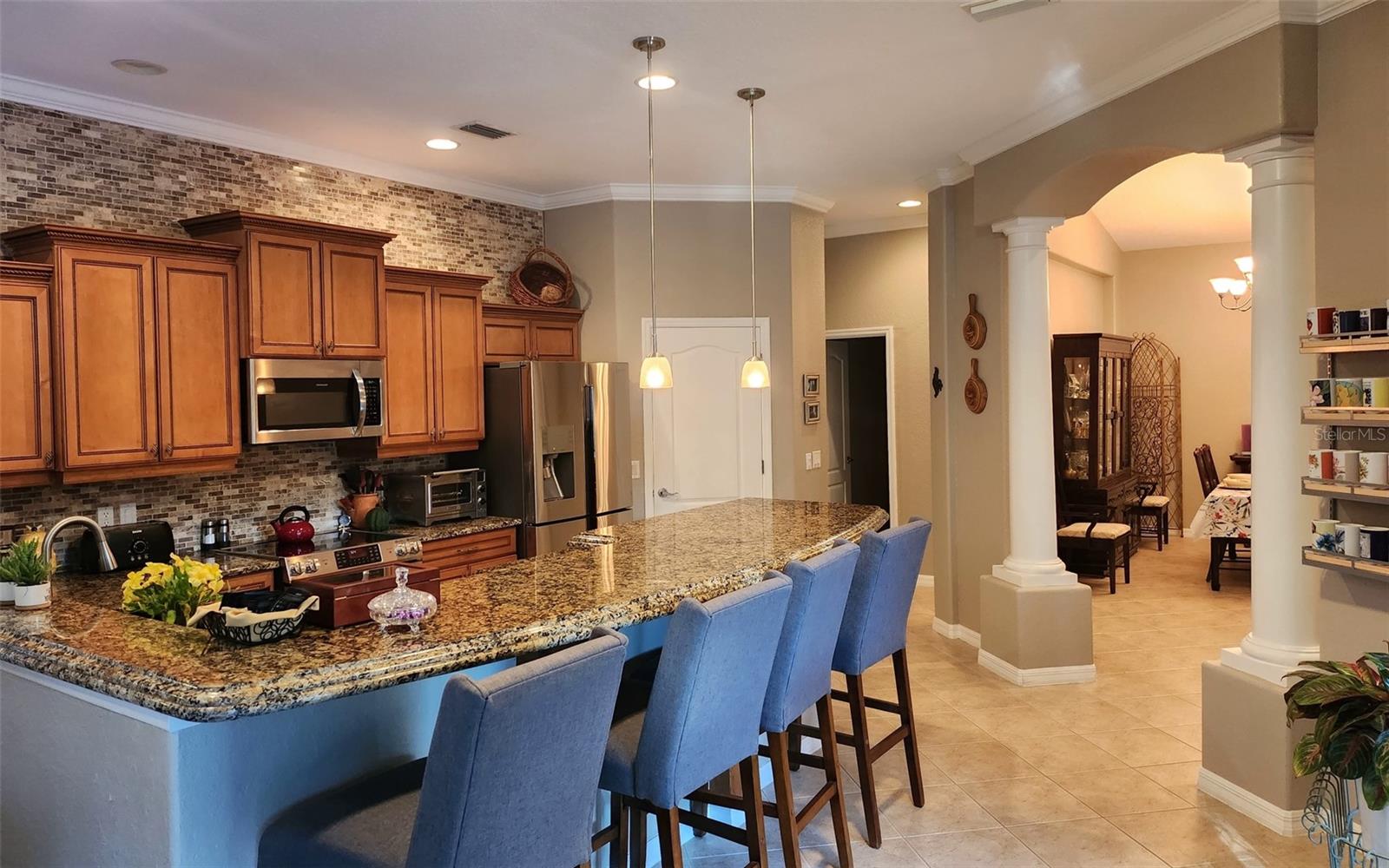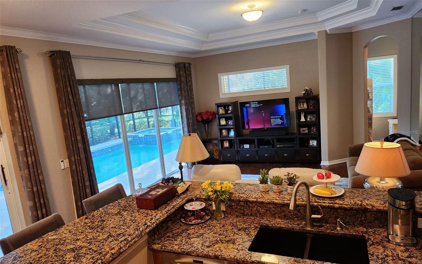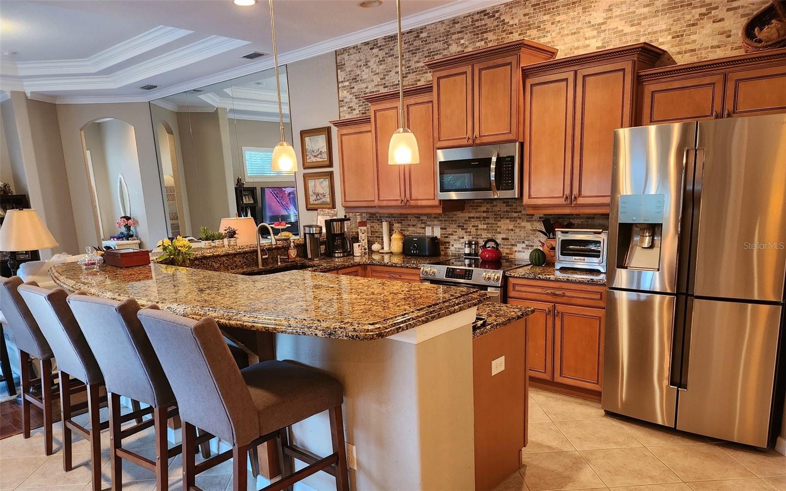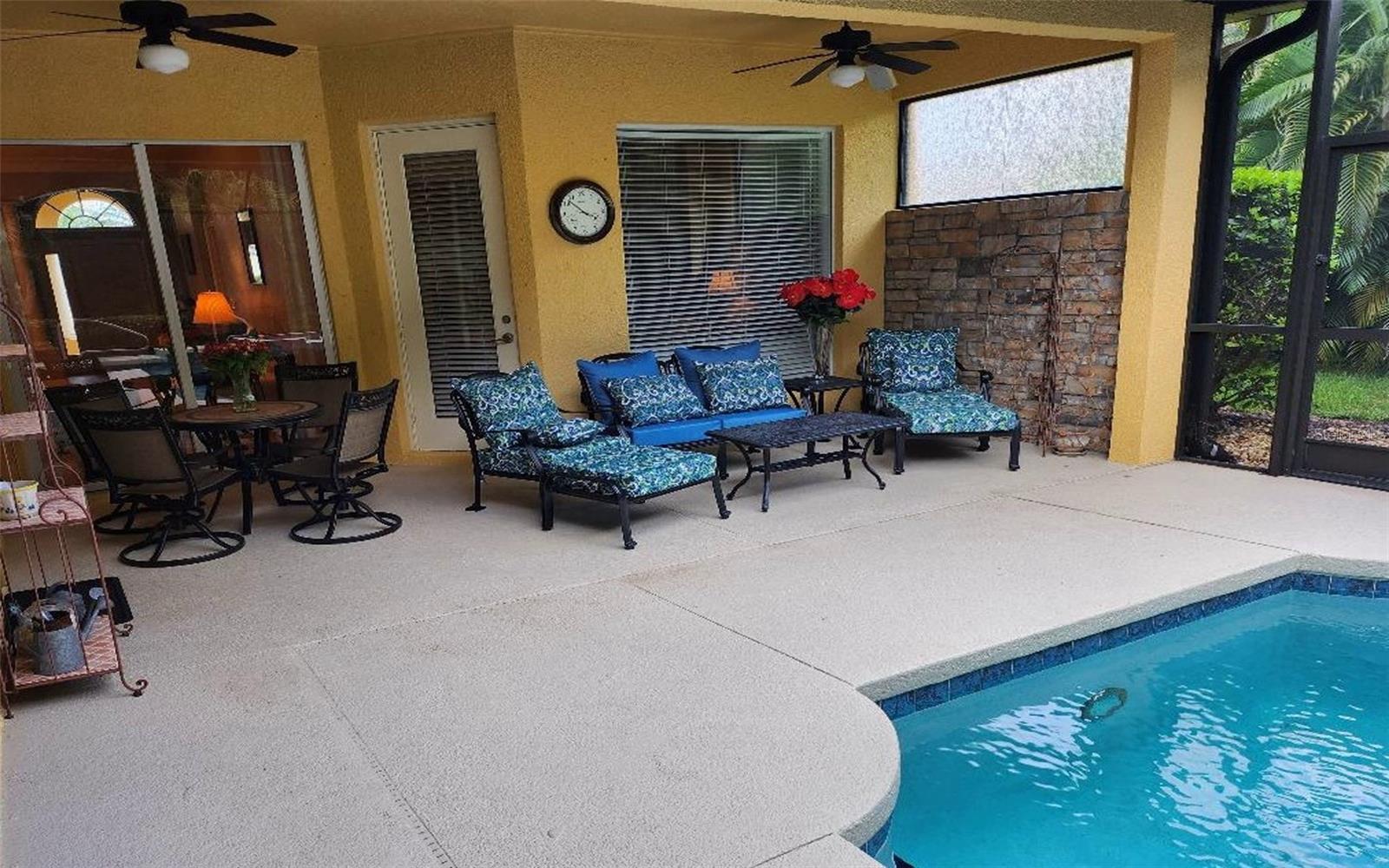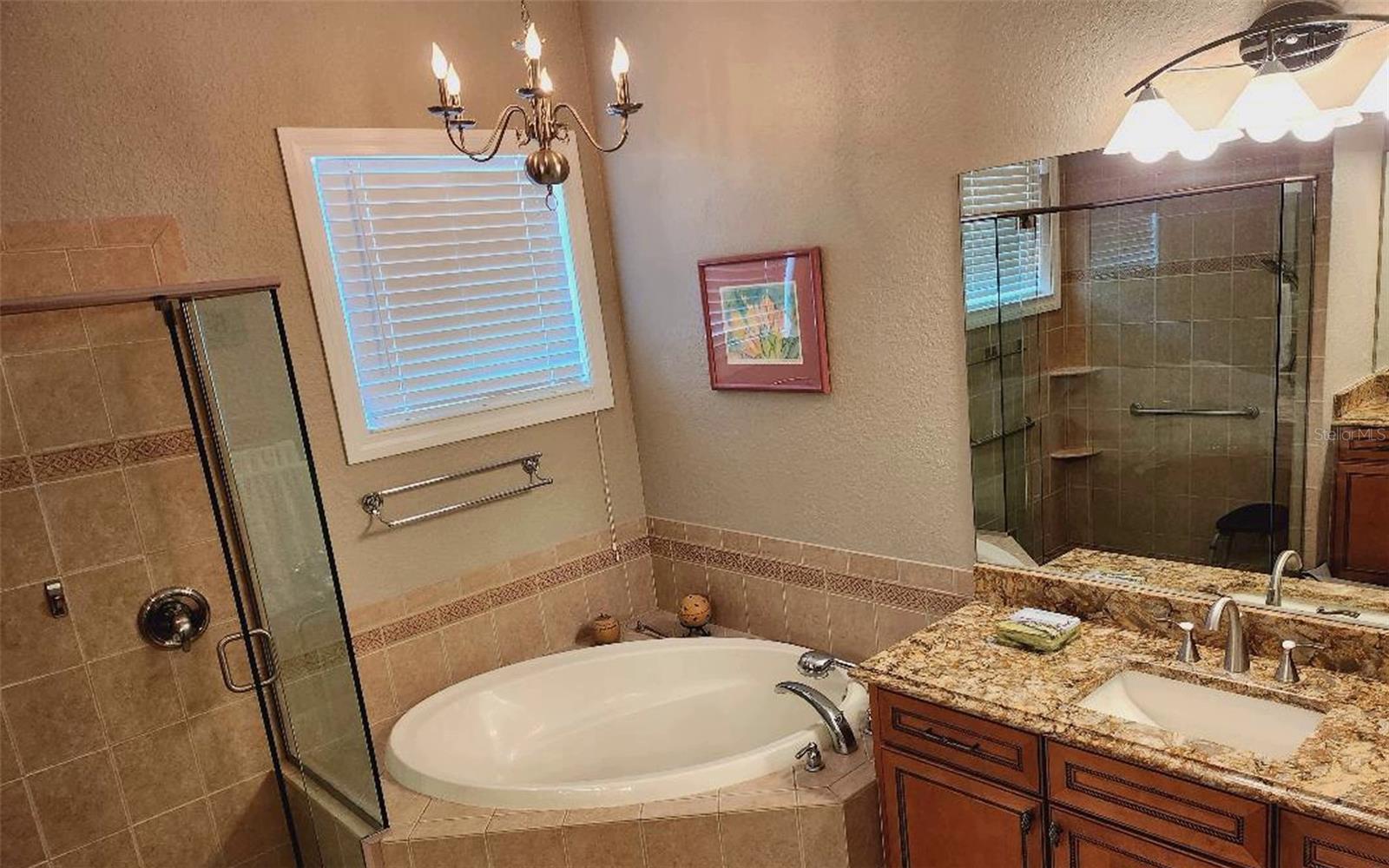 Privacy in Your Heated Saltwater Pool, Spa, and Lanai Paradise on Secluded Preserve Lot in Stoneybrook at Heritage Harbour. 4 bedroom - 3 bathroom with 3 car garage single story home in a gated golf course community. Updated kitchen featuring a 12-foot granite bar and Stainless-steel appliances. The primary suite, family room, living room, and dining room all overlook the pool lanai and wooded preserve. Tray ceiling in your primary bedroom with walk-in custom-built closet systems. Double tray ceiling in the family room with architectural accents throughout including crown molding, arches, and columns. Pool and landscape lighting. Easy maintenance with tile, engineered hardwood, and carpet floors. The 3-car garage offers lots of storage with a new durable upgraded polyaspartic floor. Ready to close fast with a four-point inspection done. A roof inspection after Hurricane Milton shows no damage. Stoneybrook at Heritage Harbour is an active lifestyle community with an OPTIONAL GOLF MEMBERSHIP and LOW HOA DUES. Stoneybrook offers a resort-style junior Olympic pool, a large spa, pickle ball and tennis courts, volleyball, basketball, 24/7 fitness center. Plus, there is a dog park and playground. Convenient access to I-75 and Lakewood Ranch Blvd. close to medical facilities, doctors, and hospitals. Easy shopping at Costco, Walmart, Publix, Fresh Market, and Aldi. The Marketplace at Heritage Harbour will feature Target and Whole Foods and casual eateries like Cheddar’s and Longhorn Steakhouse. Luxury shopping at University Town Center. Plus, shops, bistros, restaurants, and art galleries in downtown Sarasota. All within minutes. Relax, rewind, and reward yourself anytime, only steps away from your family room, kitchen, primary suite, and guest suite in Southwest Florida, Bradenton-Sarasota.