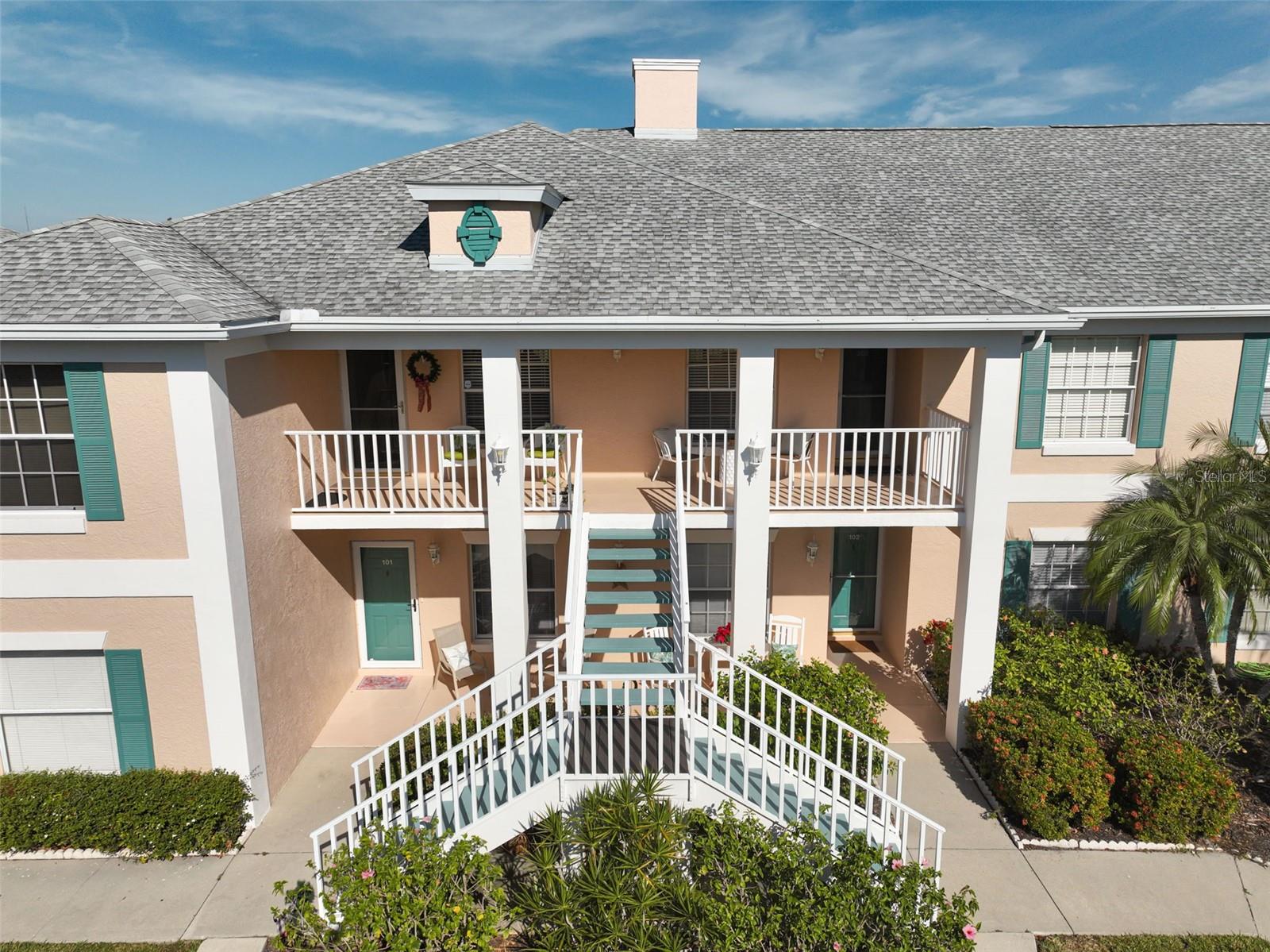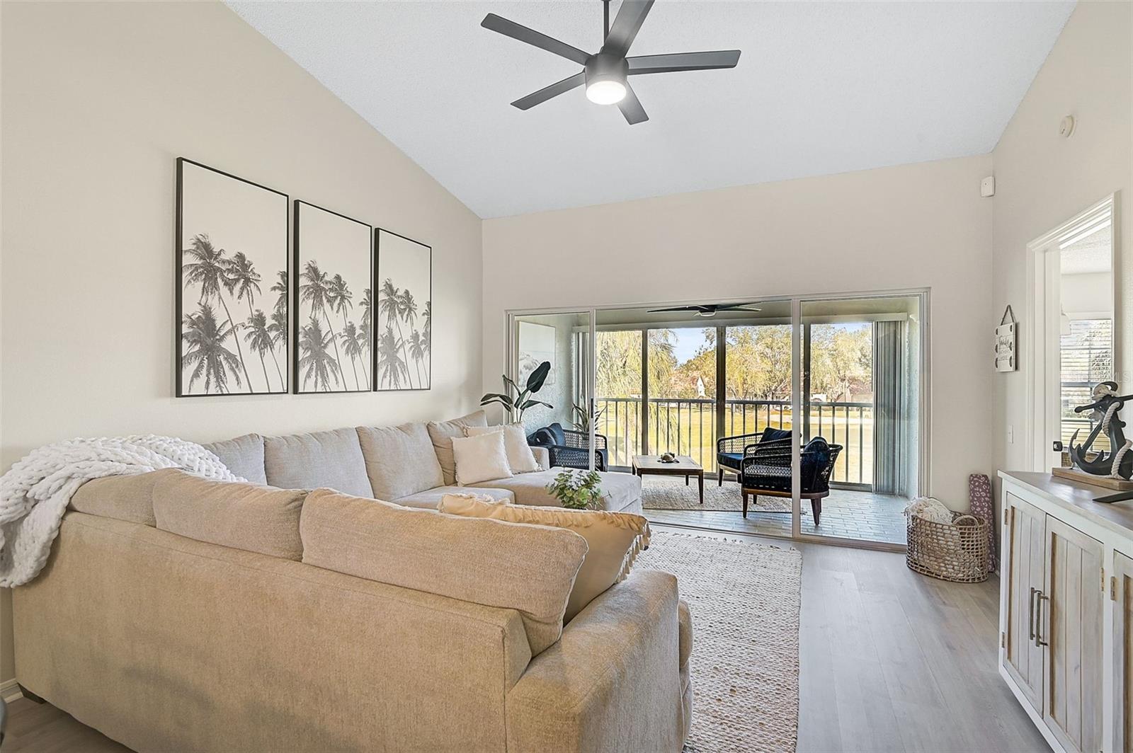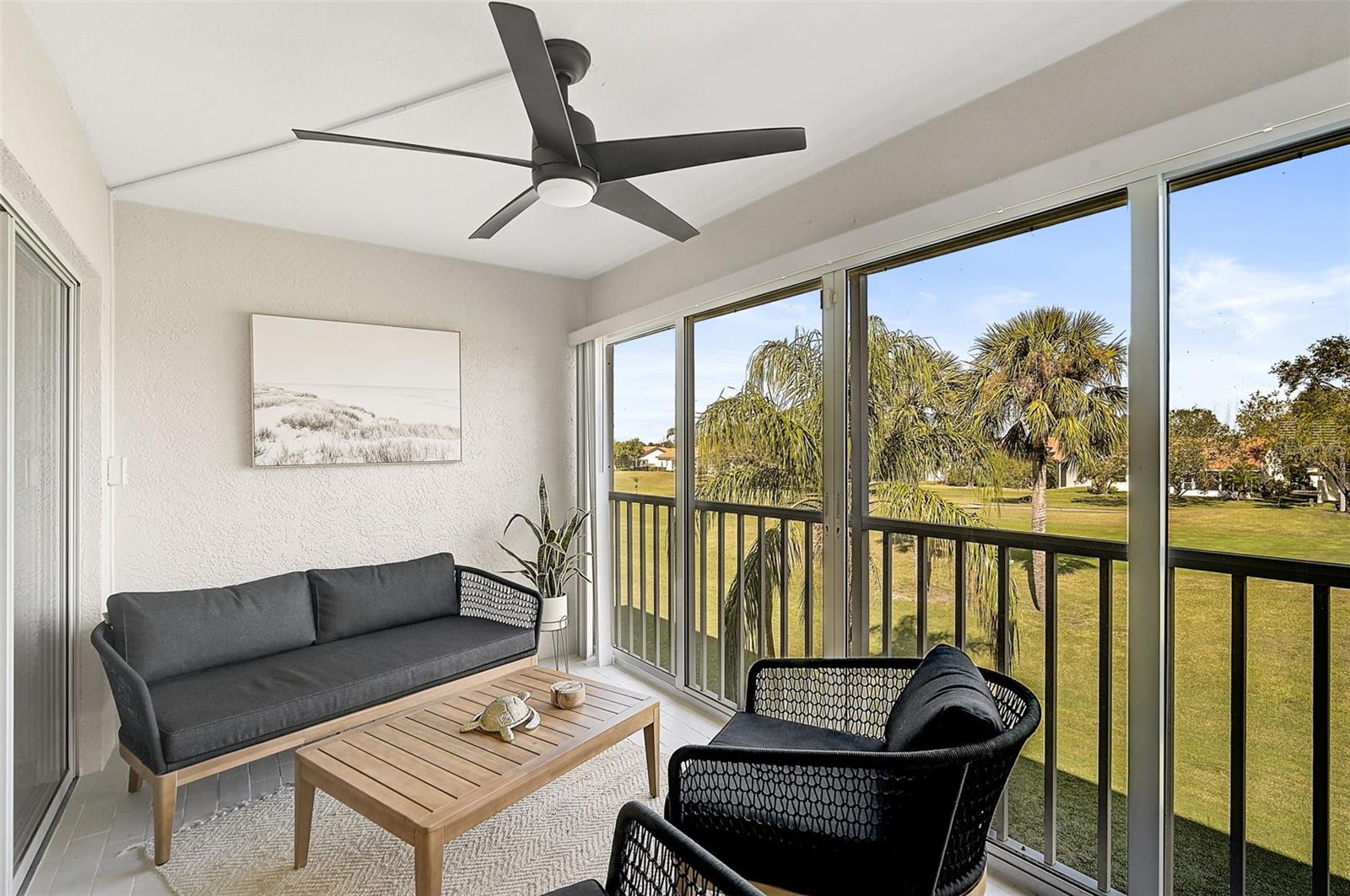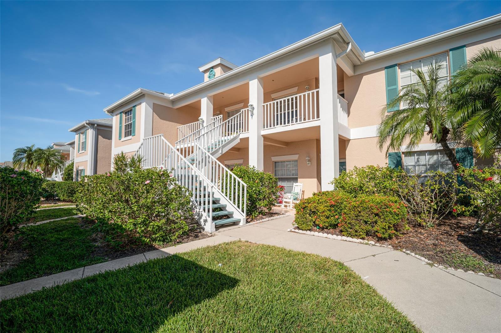 Discover this STUNNING 2-bedroom, 2-bathroom Second-floor condo, offering a perfect blend of comfort and style with a view of the golf course from the enclosed lanai and a serene lake from the front porch. Freshly painted throughout, the interior offers a bright and modern feel complemented by stylish updates, including luxury vinyl plank flooring, new fans, new faucets, elegant light fixtures, and an updated kitchen. The thoughtfully designed living spaces are perfect for entertaining, with plenty of seating for friends and family. Enjoy gatherings in the eat-in kitchen area, at the bar stools along the counter, or around the beautiful dining table. Thoughtfully FURNISHED and designed for ease, this condo is ideal for seasonal or year-round living. This home is a true retreat! Just unpack and start enjoying your perfect home in paradise. Located in Peridia Golf & Country Club, residents can enjoy a vibrant community with an executive 18-hole golf course, a sparkling swimming pool, Tiki Bar, tennis courts, pickleball, and water aerobics. Social activities abound, including bar poker, Mahjong, book clubs, and more. Participate in exclusive member-only events, Friday night dances at the clubhouse, or the monthly Saturday night Supper Club. Fairway Trace residents also have access to a private second pool, adding to the resort-style living experience. Whether you’re looking to be highly involved in the community or simply relax, this home offers the best of both worlds. Don’t miss this opportunity—schedule your private showing today!
