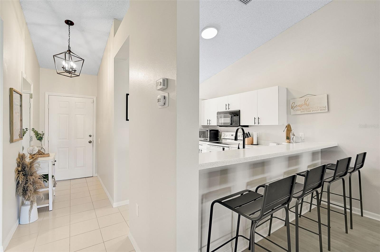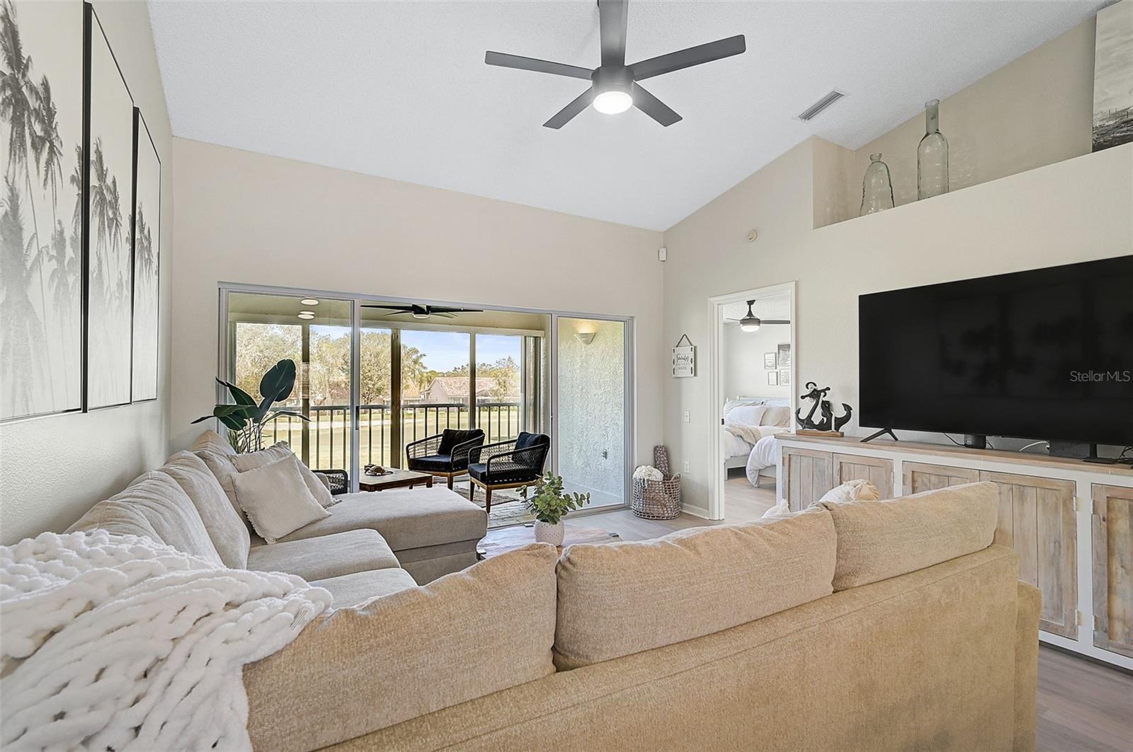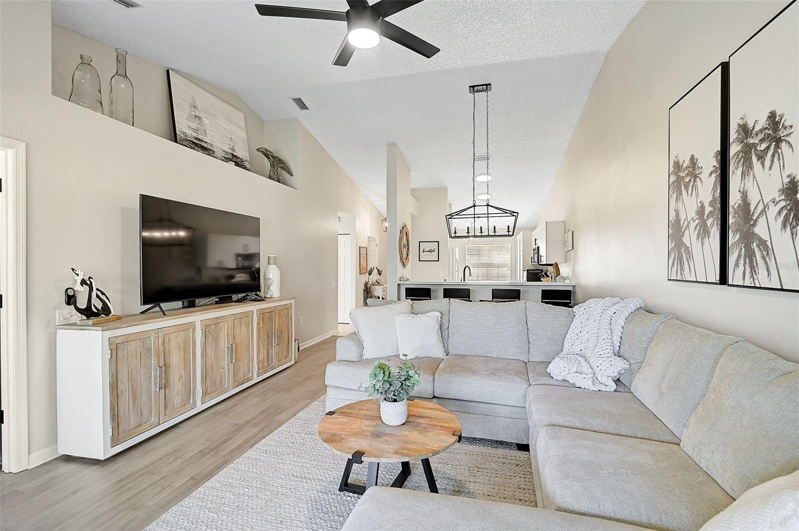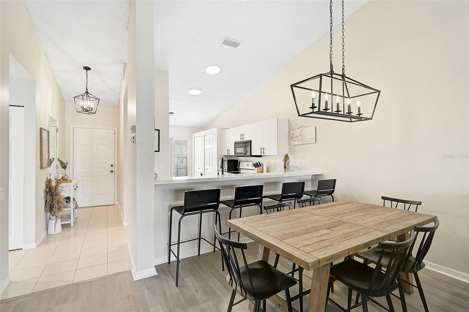 Discover this STUNNING 2-bedroom, 2-bathroom Second-floor condo, offering a perfect blend of comfort and style with a view of the golf course from the enclosed lanai and a serene lake from the front porch. Freshly painted throughout, the interior offers a bright and modern feel complemented by stylish updates, including luxury vinyl plank flooring, new fans, new faucets, elegant light fixtures, and an updated kitchen. The thoughtfully designed living spaces are perfect for entertaining, with plenty of seating for friends and family. Enjoy gatherings in the eat-in kitchen area, at the bar stools along the counter, or around the beautiful dining table. Thoughtfully FURNISHED and designed for ease, this condo is ideal for seasonal or year-round living. This home is a true retreat! Just unpack and start enjoying your perfect home in paradise. Located in Peridia Golf & Country Club, residents can enjoy a vibrant community with an executive 18-hole golf course, a sparkling swimming pool, Tiki Bar, tennis courts, pickleball, and water aerobics. Social activities abound, including bar poker, Mahjong, book clubs, and more. Participate in exclusive member-only events, Friday night dances at the clubhouse, or the monthly Saturday night Supper Club. Fairway Trace residents also have access to a private second pool, adding to the resort-style living experience. Whether you’re looking to be highly involved in the community or simply relax, this home offers the best of both worlds. Don’t miss this opportunity—schedule your private showing today!