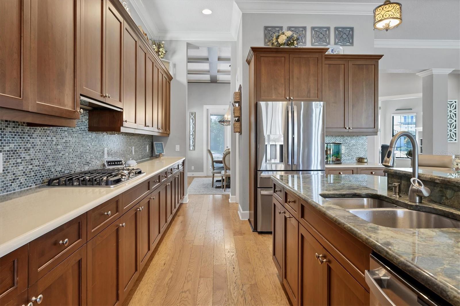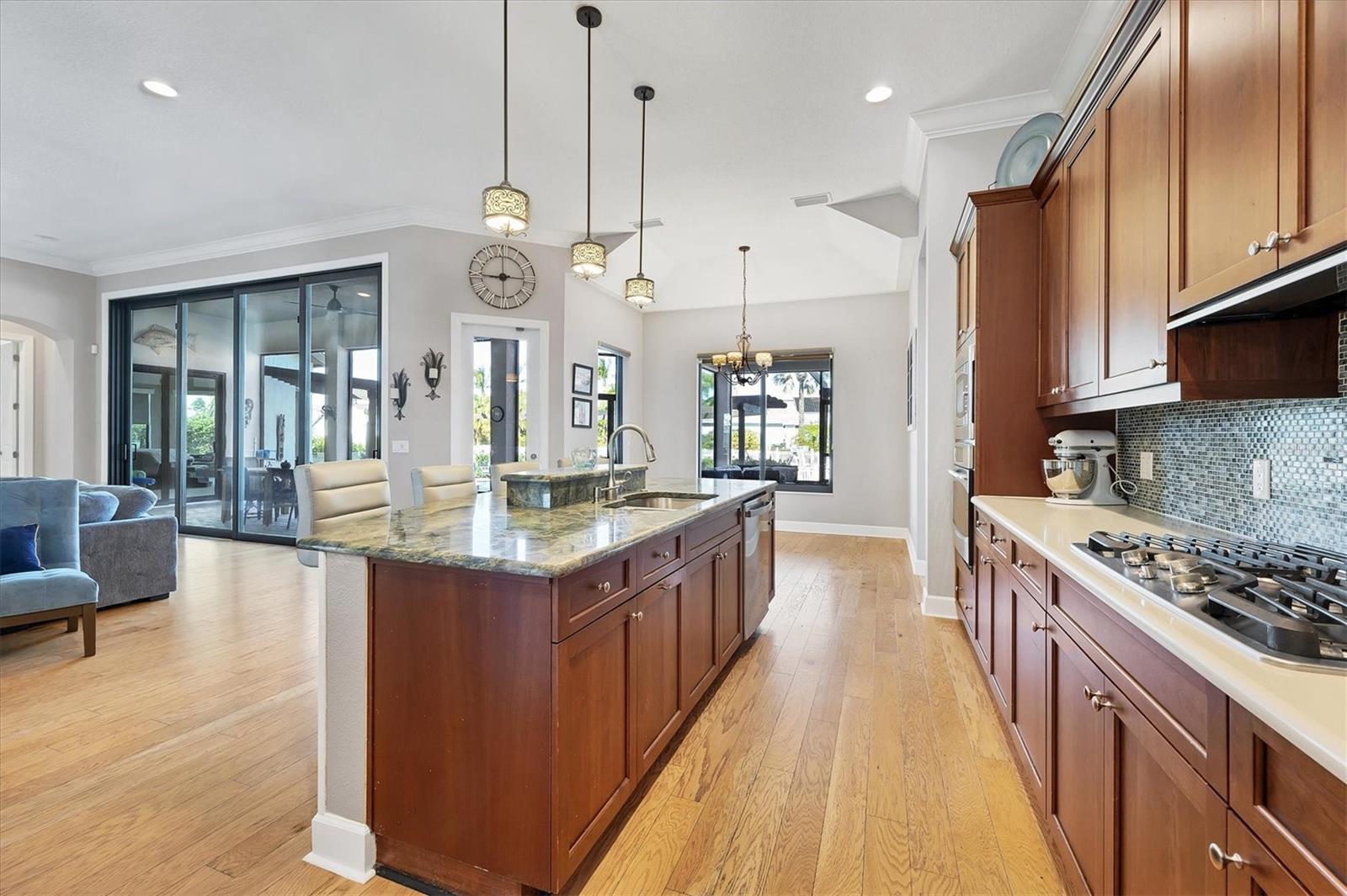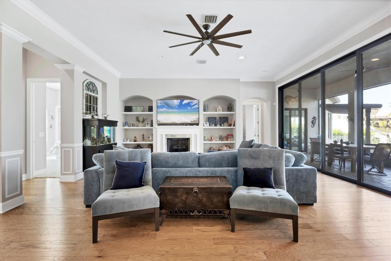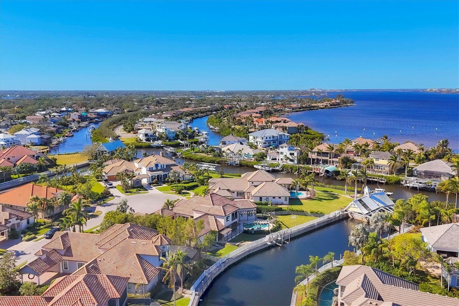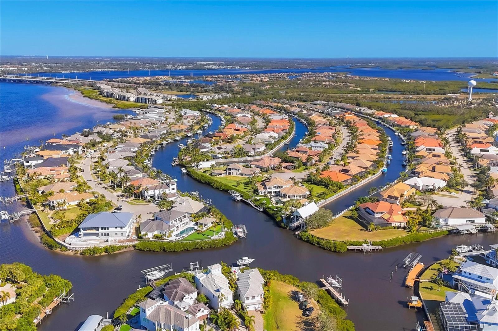 STOP!!! with that curb appeal! This beautiful custom built home situated on a double lot, boasts top craftsmanship and high standards with an impressive 180' sea wall frontage and 12' elevation can accommodate a large vessel. This property is located along the banks of the Manatee River and minutes to the Gulf beaches. This estate is on a half acre on a private cul-de-sac. The Mediterranean elevations and stately columns provide curb appeal that keeps your gaze prolonged. Stepping into this 3,763 sf of luxury living, starting with the 16' ceiling foyer, to the 12' coffered tray ceilings throughout the main living area. This well equipped epicurean kitchen with a 5-burner gas cooktop with all stainless steel appliances. With 5 bedrooms and 4 baths, plenty of space for family or friends. Second floor hosts a small retreat for one of your guests with a private balcony to enjoy the sunset. Out your back door and into a private oasis pool, spa, and private 14,000 lb boat lift. After a day of fishing, come home to a private fish cleaning area and outdoor shower and an equipped outdoor kitchen area. This property was furnished with all impact windows and doors and an oversized generator which will run the entire home and its functions. From lush tropical landscaping to fully fenced yard for any furry friends as well. This home is someone's waterfront dream. Let's make it your reality.