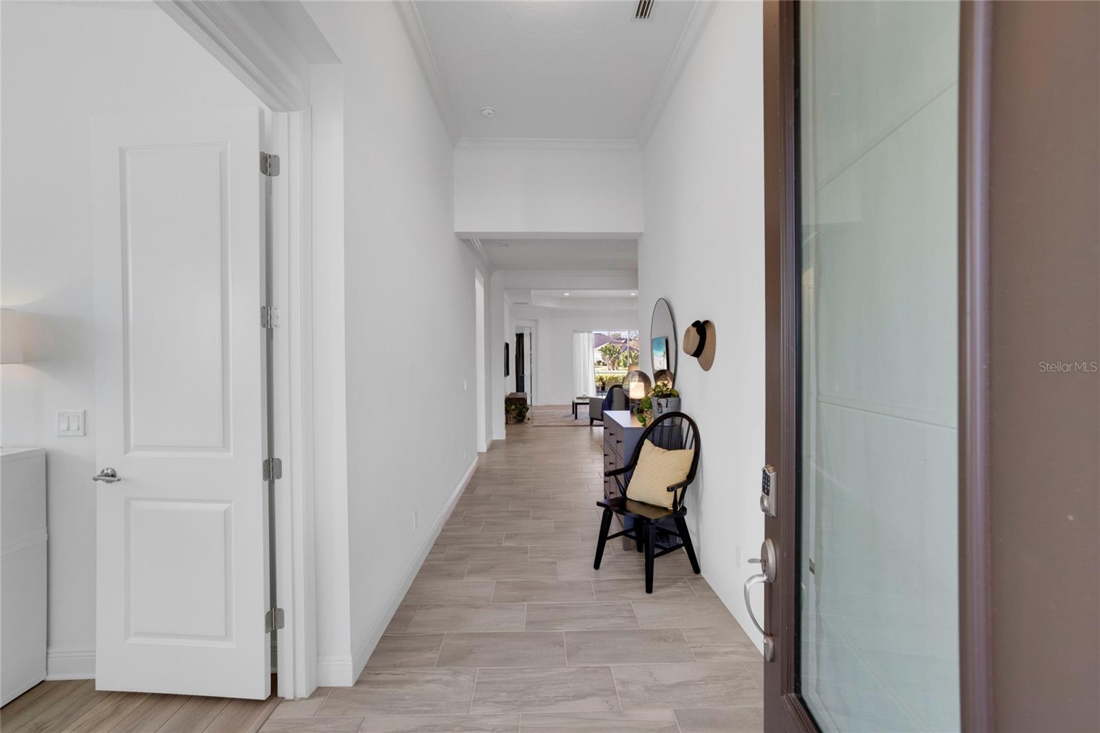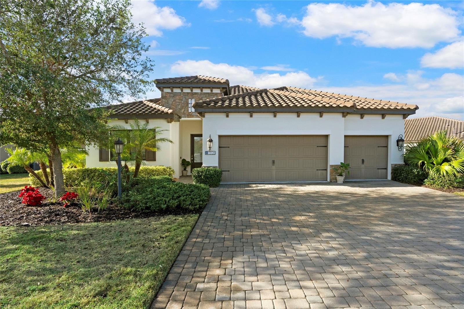 Welcome to your dream home at Indigo by Neal Communities. This furnished WINDSTAR floor plan sits on an oversize homesite with a long water view, offering nearly 2,900 square feet of living space. This thoughtfully crafted home features 4 bedrooms, 3.5 bathrooms and a versatile den/study. Upon entering, you'll be captivated by the expansive open layout, enhanced by breathtaking views of the pool and peaceful lake beyond. Enjoy picturesque sunsets every evening with the coveted southwest exposure. The elegant living room showcases coffered ceilings, double crown molding & recessed lighting. The kitchen in your new home is a chef's paradise! Featuring premium GE Profile stainless steel appliances, 42" upper cabinets, stunning stone countertops, and an exceptionally spacious walk-in pantry, a large island and a spacious kitchen-dining room combination. The master suite bathroom is a true retreat, offering two walk-in closets, a large soaking tub, 2 generously sized individual vanities, a convenient water closet with a spacious walk-in shower. The stylish laundry room includes a cabinet base wash tub and a matching GE Energy Star washer and dryer. Step outside to your private lanai, where a full-width pool deck invites you to relax. Take a dip in your heated salt water pool that is surrounded by lush palm trees, beautiful landscaping and a water view that creates your very own oasis. This 5-year-old home is equipped with natural gas for the pool heater, cooktop, dryer, and hot water heater. Your 3-car garage showcases quality features, including the builder's upgraded epoxy flooring and practical overhead storage racks. Enjoy peace of mind with Hurricane-Rated Impact Glass Windows and Sliders, designed to withstand storms while contributing to lower insurance rates and enhanced energy efficiency. Additionally, energy efficiency is further optimized with foam-injected concrete block walls and radiant barrier panels in the attic, complete with attic space flooring. Embrace a true maintenance included lifestyle in the sought-after neighborhood of Indigo. Here, residents have access to an impressive array of top-notch amenities. Our Amenity Center features a luxurious Clubhouse with a catering kitchen, a heated resort-style pool with cabanas, a Spa, a 24/7 fitness center, pickleball courts, bocce ball and a playground. The best part? All these amenities are expertly overseen by a dedicated full-time activity's director, ensuring a lively calendar of events and services for our residents—all for an affordable HOA fee. Don't let this extraordinary opportunity pass you by—make Indigo your home, where luxury, comfort, and convenience come together to elevate your everyday living!